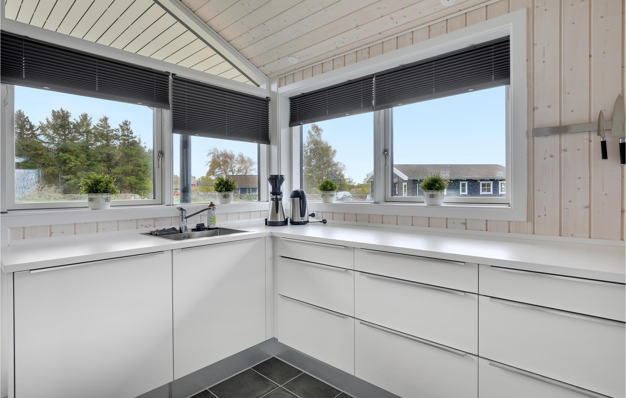 Dieses Qualitätsferienhaus bietet viel Komfort und eine gut ausgestattete offene Küche mit allen modernen Annehmlichkeiten, in der die Zubereitung der Mahlzeiten einfach und gemütlich ist. Schönes kombiniertes Ess- und Wohnzimmer mit gutem Platzangebot und wunderschön eingerichtet mit bequemen Möbeln, großem Flachbildschirm, Wärmepumpe, kostenlosem Internet und einem schönen Lichteinfall aus den großen Fensterbereichen nach Süden.