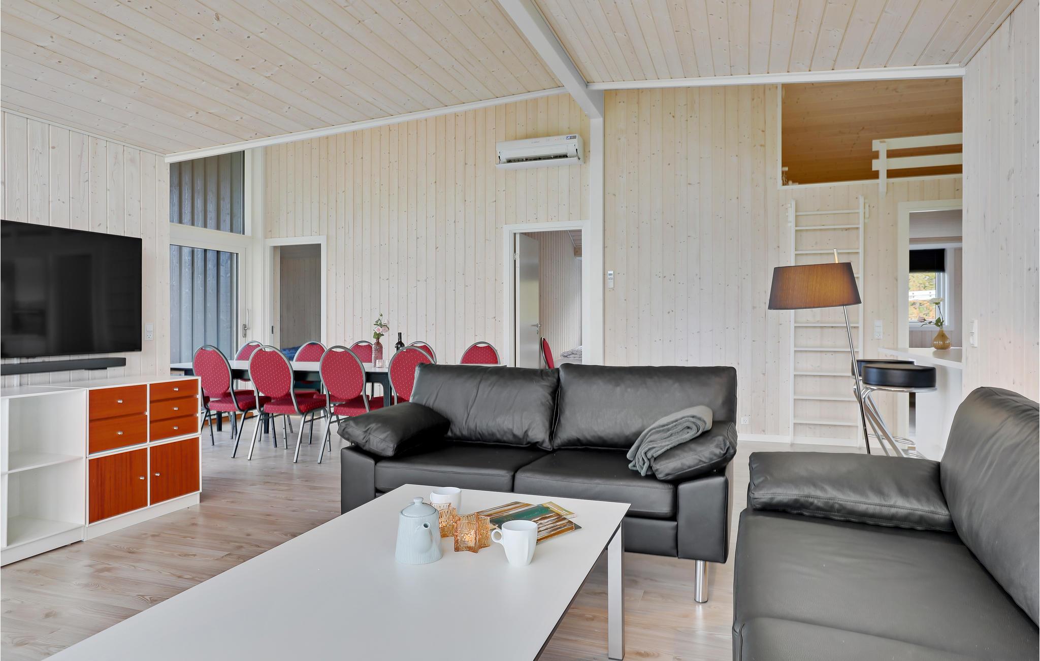 Modernes Luxusferienhaus mit Meerblick, großer Terrasse und hochwertiger Ausstattung in Vang, Dänemark.