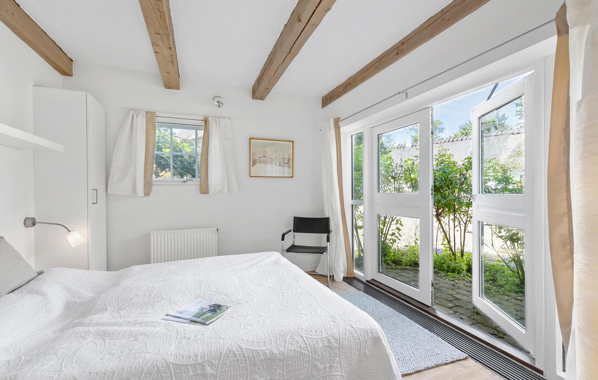 Genießen Sie die Ruhe dieses charmanten Hauses, das eingebettet zwischen alten Bäumen und gepflegten Gärten liegt. Hier in der malerischen Landschaft an der Apenrader Förde verbringen Sie eine erholsame Auszeit in naturnaher Umgebung. Machen Sie es sich im hellen Wohnbereich gemütlich. Freuen Sie sich auf die harmonische Verbindung von traditionellen Balken, hellen Wänden und stilvollem Mobiliar. Entspannen Sie auf dem bequemen Sofa oder öffnen Sie die Terrassentüren und lassen Sie frische Luft herein. Kochen Sie in der gemütlichen Küche und genießen Sie Ihre Mahlzeiten am Esstisch, an dem alle Platz finden. Am Kaminofen lassen Sie den Tag wohlig ausklingen.