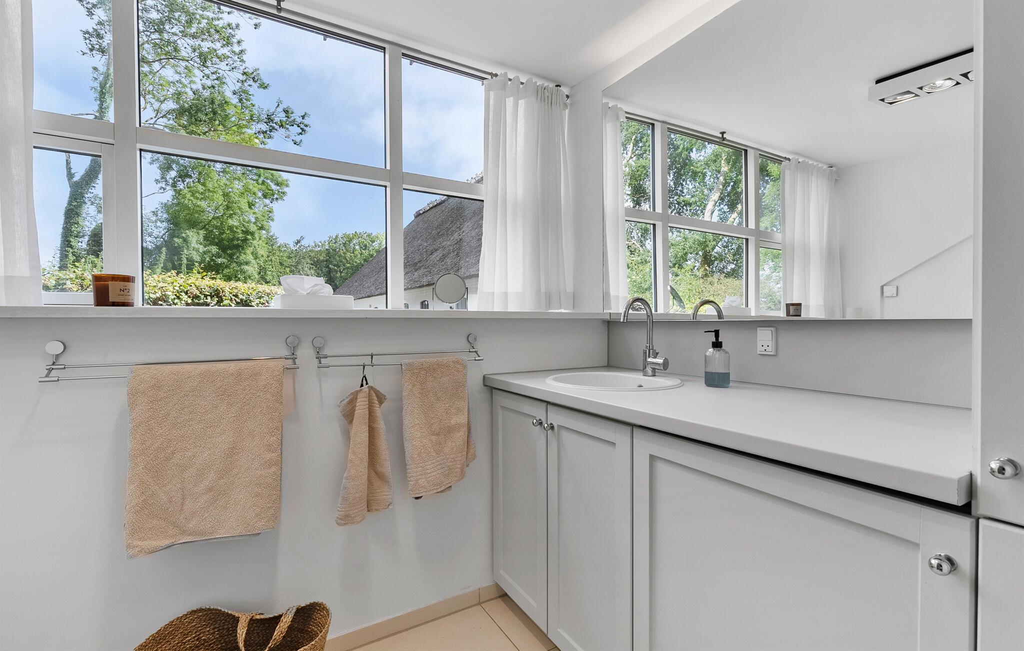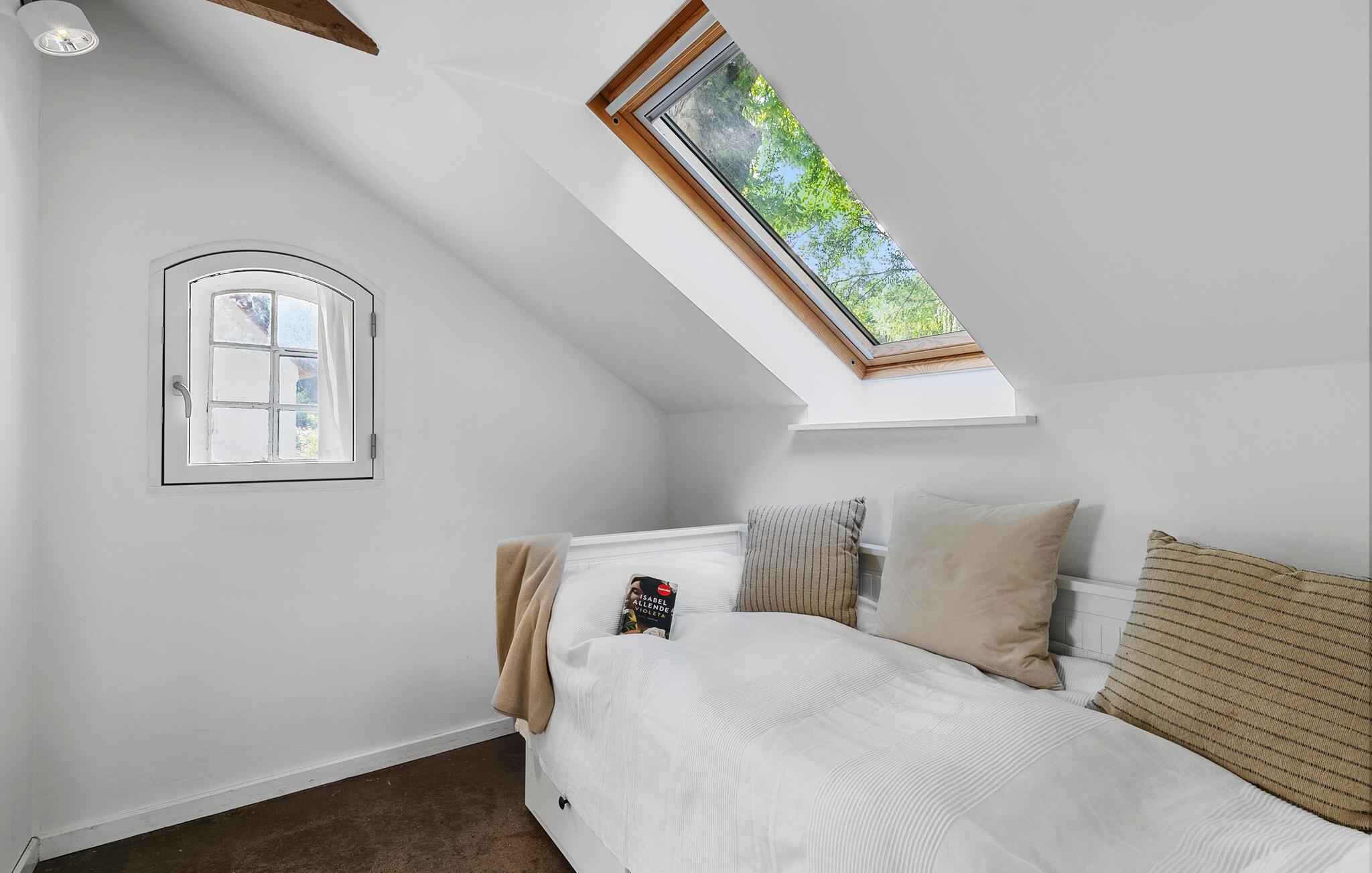 Lassen Sie den Alltag hinter sich und genießen Sie Ihre Auszeit in diesem stilvollen Ferienhaus, das eingebettet zwischen alten Bäumen und liebevoll angelegten Gärten liegt. In der ruhigen, grünen Landschaft an der Apenrader Förde erwartet Sie ein Ort der Entschleunigung. Lehnen Sie sich im lichtdurchfluteten Wohnzimmer zurück. Die Kombination aus freiliegenden Holzbalken, hellen Flächen und ausgewählter Einrichtung schafft eine warme, einladende Atmosphäre. Öffnen Sie die Terrassentüren, lassen Sie die Natur herein und verbringen Sie entspannte Stunden auf dem Sofa. Bereiten Sie in der charmanten Küche gemeinsam Mahlzeiten zu und versammeln Sie sich am Esstisch für lange, gesellige Abende. An kühleren Tagen sorgt der Kaminofen für wohlige Wärme.