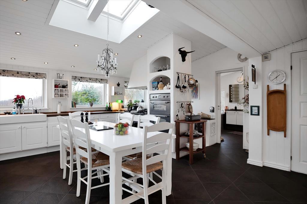 Das zweigeschossige Urlaubsdomizil wurde aus hochwertigen Materialien errichtet. Es beinhaltet eine tolle offene Küche mit einem guten Essplatz. Die Küche bietet Ihnen alles, was Sie für die Zubereitung Ihrer Mahlzeiten benötigen. Hierzu zählen unter anderem ein großer Gasherd, zwei Backöfen und ein Geschirrspüler. An die Küche schließt der wunderbare Wohnraum, dessen reizvollen Lichteinfall und prachtvolle Aussicht Sie begeistern wird. Die Schlafplätze verteilen sich auf einen großen Masterbedroom mit einem Doppelbett und auf drei weitere Schlafzimmer. In einem der Schlafzimmer erwartet Sie ein Himmelbett für zwei Personen, das höhenverstellbar ist. Eines der beiden attraktiven Badezimmer verwöhnt mit einem Whirlpool. Unter freiem Himmel steht Ihnen eine fantastische Terrasse zur Verfügung. Diese unterteilt sich in mehrere Bereiche. Sie genießen einen Ausblick über das große, schöne Grundstück mit einem kleinen See. Der Ausblick wird durch das Meer und den Wald im Hintergrund untermalt. Sie werden mit viel Ruhe und Sonne verwöhnt und beobachten mit ein wenig Glück Rehe und andere Wildtiere. Nach einem langen Tag am Strand lädt der hauseigene Grill zu stimmungsvollen Abenden mit einem guten Essen im Abendlicht ein. Eine Außenküche und eine Außendusche sind vorhanden.