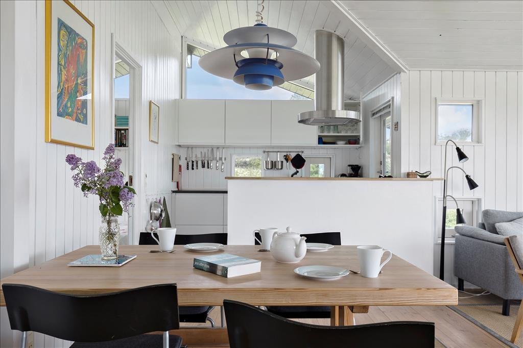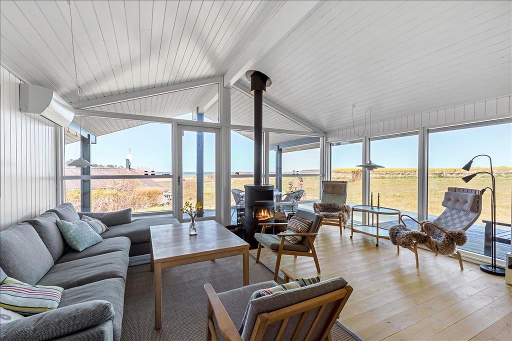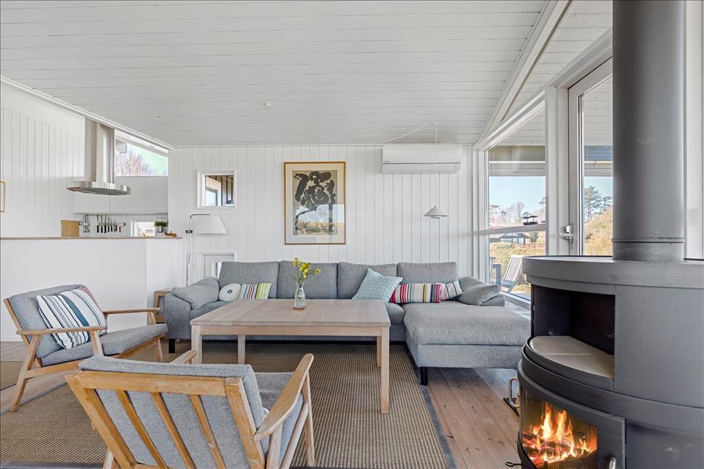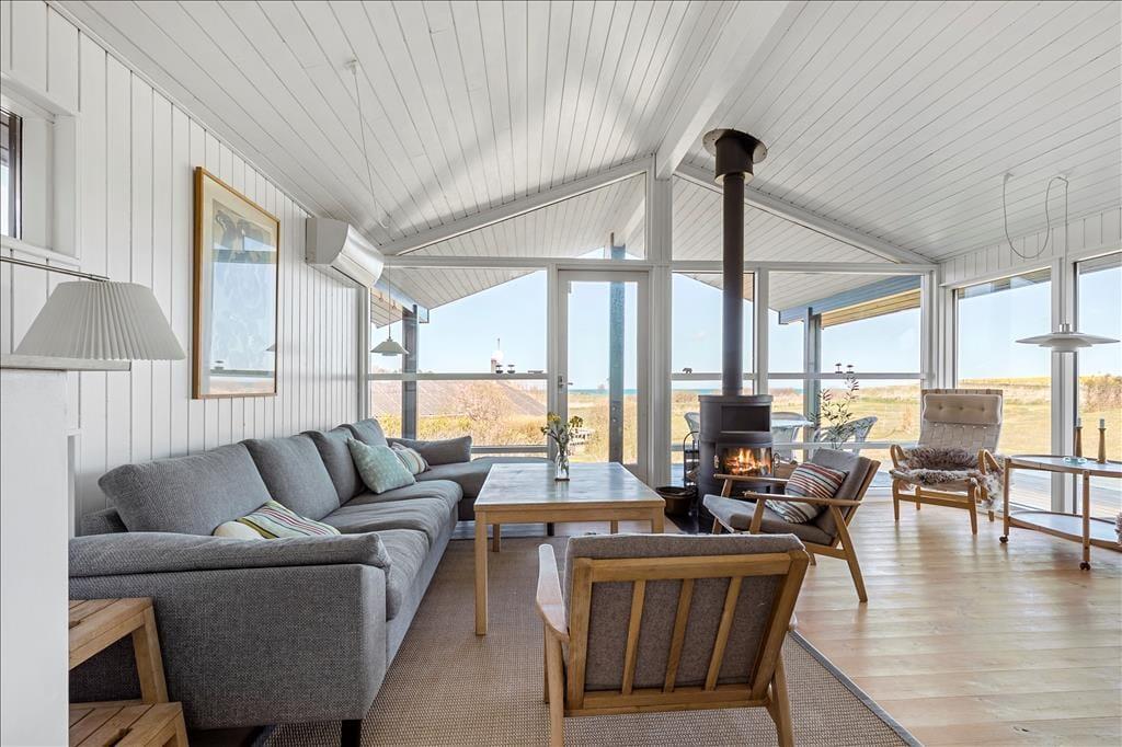 Das Haus verfügt über einem räumlichen und hellen Wohnzimmer mit Fernseher, Wärmepumpe, Holzofen und einem fantastischen Blick über Sejerø Bucht durch die großen Panoramafenster. Es gibt ein neues und schönes Badezimmer mit Dusche und 3 gute und schön dekorierte Schlafzimmer, davon 2 mit Doppelbetten (180x200Cm) und 1 mit Etagenbett. Das Kinderzimmer hat einen Schreibtisch unter dem Fenster, auch mit Blick von Sejerø Bucht, und man kann das sehr gut als Arbeitszimmer verwenden. Die Küche ist offen und ist mit Geschirrspüler ausgestattet. Im Flur haben Sie eine Waschmaschine, und im Ganzen ist das Haus sehr geschmackvoll eingerichtet mit Augen für die Details. Das Haus ist von einer prachtvollen Holzterrasse umgeben, wo man die Sonne und den fantastischen Meeresblick Tag und Nach genießen kann. Ein Teil der Terrasse ist gedeckt.