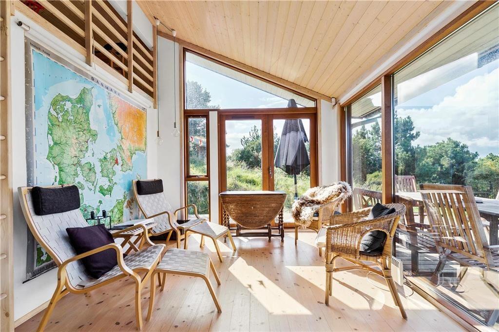 Mit der das Haus umgebenden Terrasse findest du im Sommer immer ein windgeschütztes oder sonniges Plätzchen, falls du draußen essen möchtest. Das große Naturgrundstück eignet sich gut für Kinder insbesondere beim Versteckspielen. Am Strand, nicht weit vom Haus, könnt ihr baden, Sandburgen bauen oder Meerforellen fangen - nach dem Badeausflug könnt ihr die hauseigene Außendusche verwenden, um den Sand abzuspülen. Es führen Treppen zum Haus hinauf - wenn du schlecht zu Fuß bist, ist das Haus für dich leider weniger geeignet.