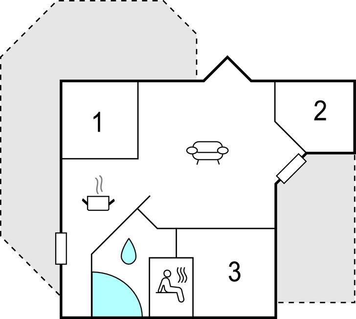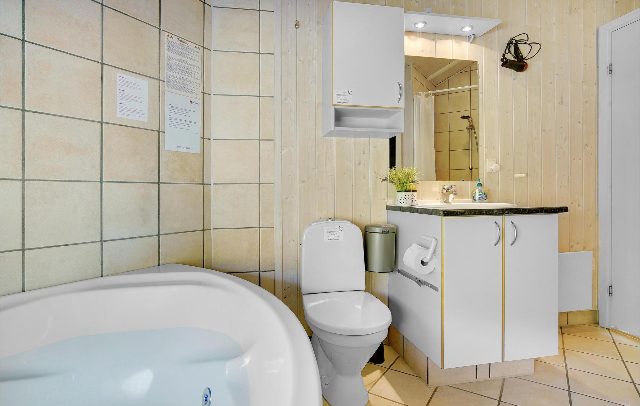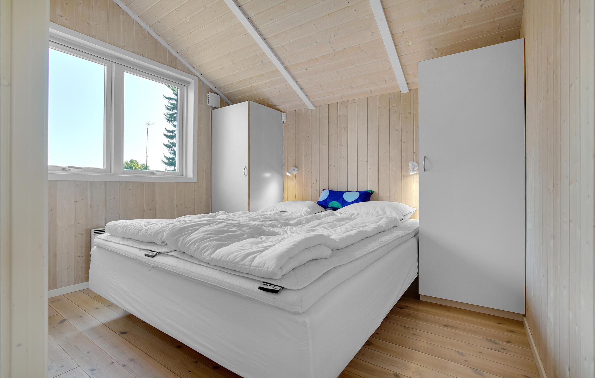 Schön helles Ferienhaus mit offener Küche und gemütlichem Wohnraum mit Ofen. Das Badezimmer hat eine Sauna und eine Whirlwanne und es gibt insgesamt drei Schlafzimmer. Auf der überdachten Terrasse lässt es sich gut grillen.