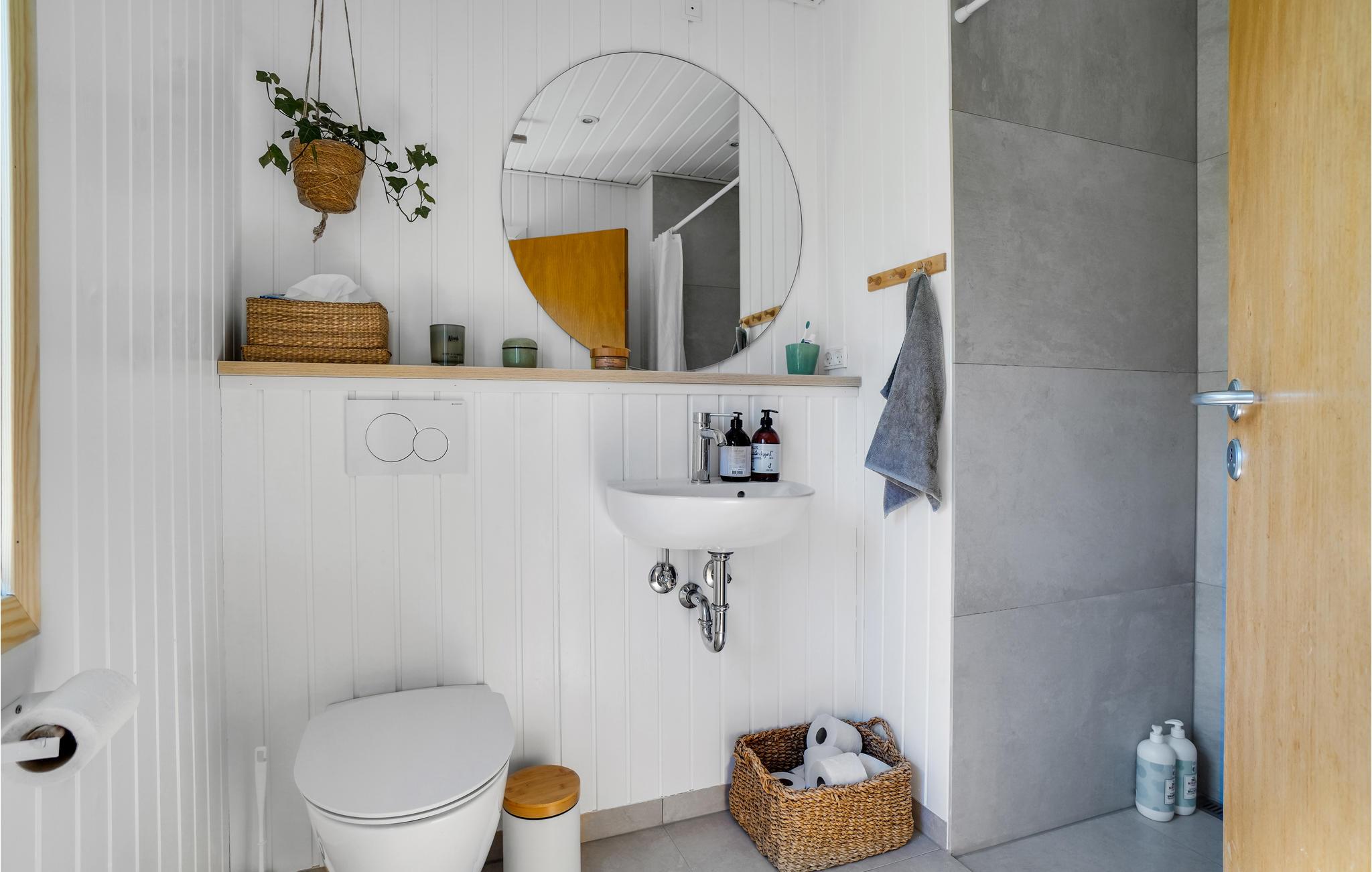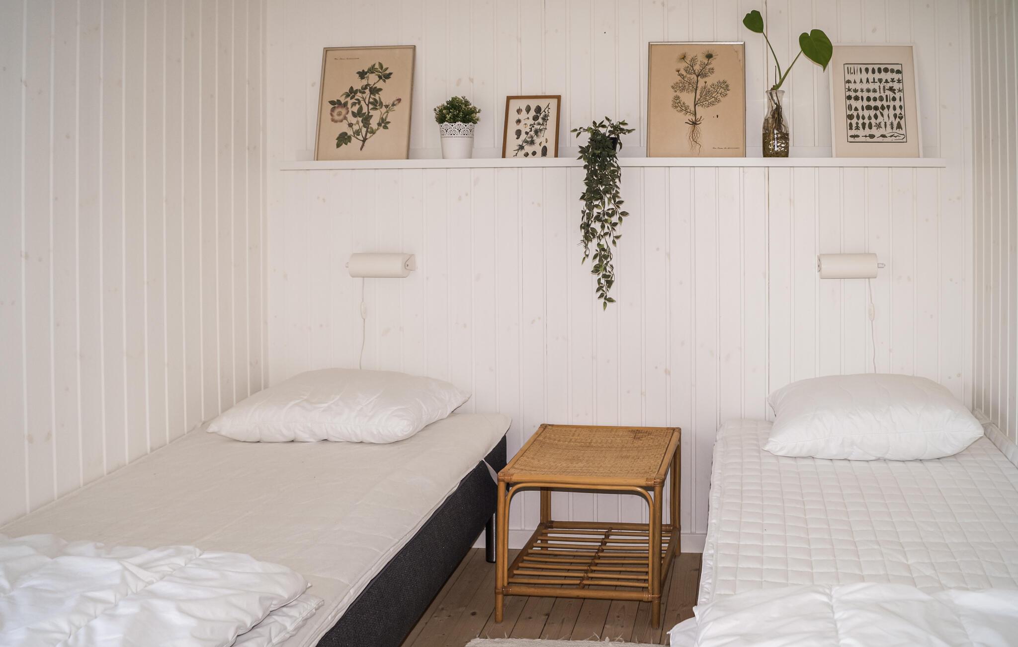 Freuen Sie sich auf einen ständigen Panoramablick über die Bucht von diesem einladenden Haus. Es empfängt Sie in umfassender, klassischer Ausstattung in schönen Farbkombinationen, und bietet Ihnen ein angenehmes Wohnerlebnis. Über die Baumwipfel hinweg blicken Sie hin zum Wasser, eine Szenerie zum Verlieben. Auf der erhöhten Terrasse sitzend lässt sich dieser Anblick am besten genießen, mit einem Glas Ihres Lieblingsgetränkes in der Hand. Genießen Sie auch Wellnessstunden in der Außensauna auf der Terrasse und genießen dabei das Fenster mit Aussicht. Die Außendusche am Nebengebäude bietet Ihnen anschließend die erwünschte Abkühlung. Lassen Sie die Abende mit gegrillten Speisen ausklingen und machen Pläne für Ihre nächsten Aktivitäten.