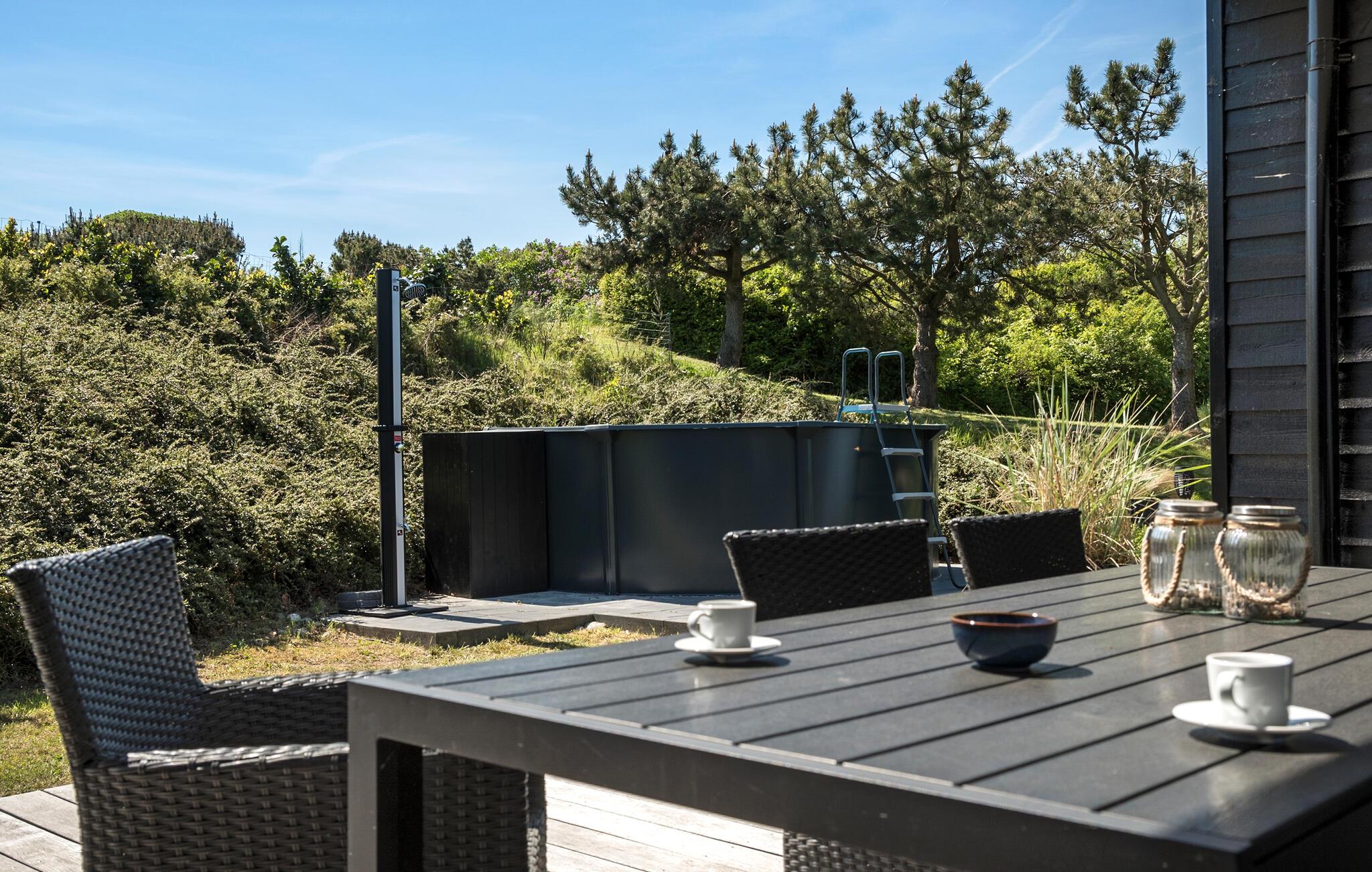 Auch draußen gibt es jede Menge zu erleben. Speisen Sie auf der schönen Terrasse oder machen Sie es sich mit einer guten Tasse Kaffee und einem spannenden Buch gemütlich. Das absolute Highlight ist der Pool im Außenbereich, der für Erfrischung und Wasserspaß sorgt. Machen Sie auch den kurzen Spaziergang zum Sandstrand an der Küste und gehen Sie baden.
