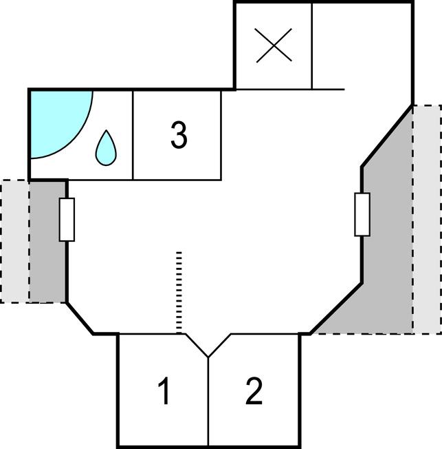 Badezimmer 7m2 (nr. 1) - WC. Warmes und kaltes Wasser. Dusche