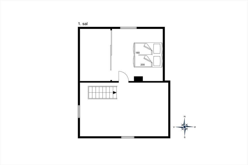 Vom Wohnraum führt dich eine Treppe hinauf ins Obergeschoss, in dem hohe, schräge Decken für eine luftige, helle Atmosphäre sorgen. Das Obergeschoss umfasst einen geräumigen Schlafraum und einen angrenzenden Wohnraum, der mit einem reizvollen Ausblick über die hügelige Dünenlandschaft zu verzaubern weiß.