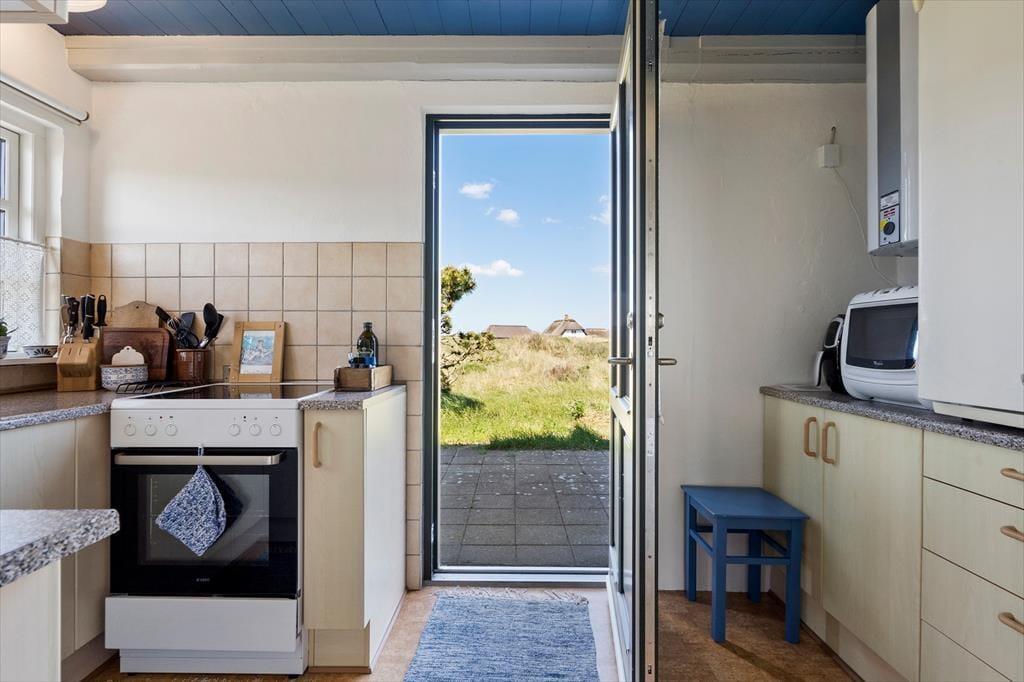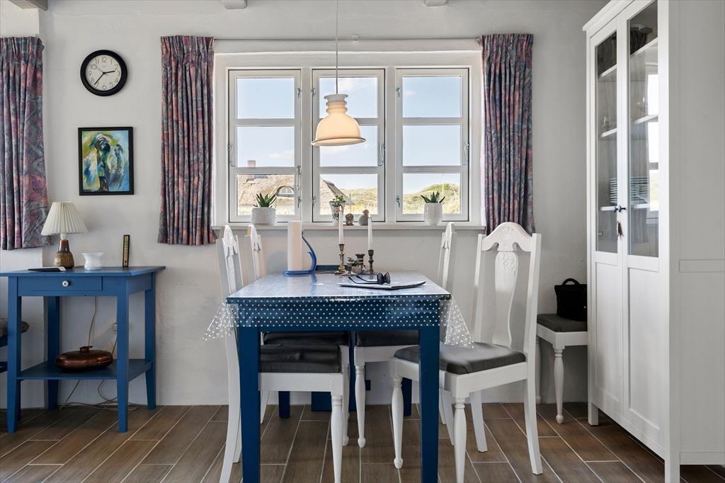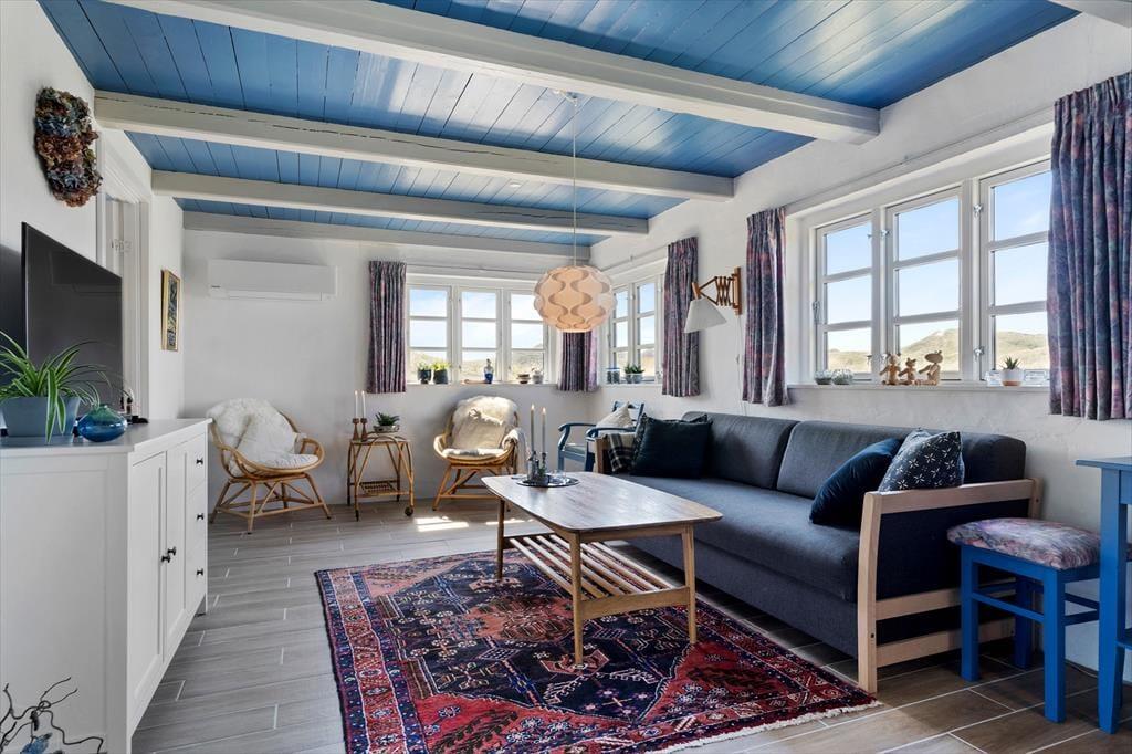 Du findest dieses schöne Ferienhaus in der fantastischen Gegend von Vedersø Klit, wo du die wilde Natur Westjütlands und die atemberaubende Tier- und Vogelwelt genießen kannst. Zieh deine Badesachen an und mach dich auf den kurzen Weg von nur 330 Metern, um mit den Füßen den warmen Sand zu fühlen und auf die atemberaubende Nordsee zu blicken. Hier kannst du auf deinem Handtuch die Sonne genießen, ein kühles Bad im klaren Wasser nehmen oder einen Spaziergang an der Küste entlang machen. Auch die Husby Klitplantage ist nicht weit von diesem schönen Ferienhaus entfernt, wo du den Schatten der Bäume und den frischen Duft des Waldes genießen kannst.