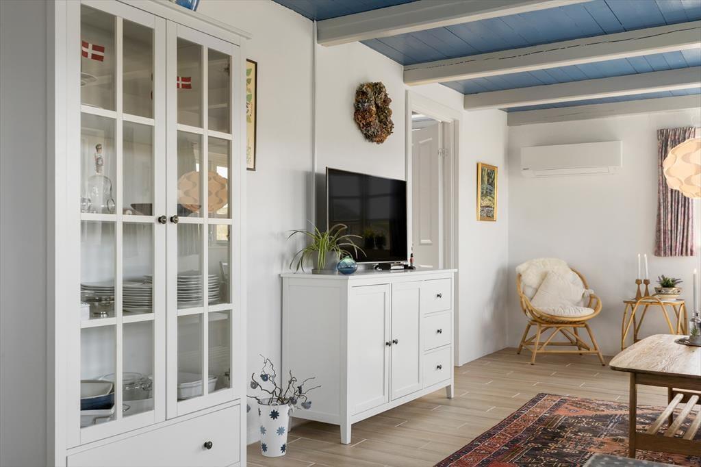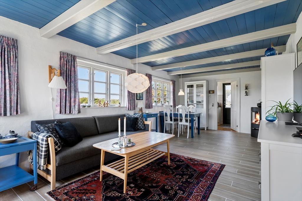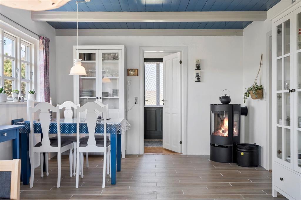 Nimm deine Liebsten mit in den Urlaub und genieße eine ruhige und gemütliche Zeit in diesem schönen Ferienhaus, in dem du entschleunigen und die Ruhe genießen kannst. Das Haus ist perfekt dafür, lange Vormittage am Esstisch mit einer guten Tasse Kaffee und einem leckeren Frühstück zu verbringen. Oder du setzt dich in die gemütlichen Sessel im Wohnzimmer und genießt einen ruhigen Moment, bevor du die Gegend erkundest. Wenn du die totale Entspannung brauchst, entzünde ein Feuer im gemütlichen Kaminofen und genieße die wohlige Wärme, die sich im ganzen Raum ausbreitet, und das angenehme Knistern, das für eine gemütliche Atmosphäre sorgt.