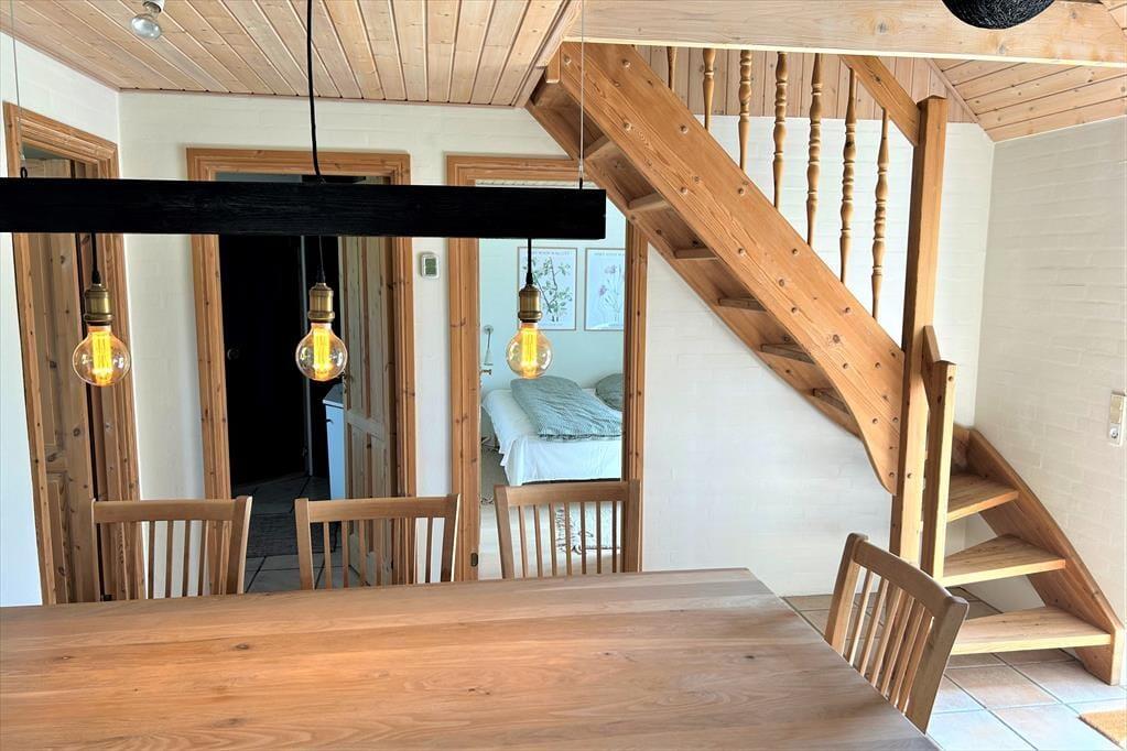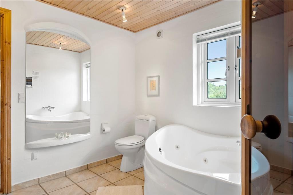 Dieses ausgesprochen schöne und gemütlich eingerichtete Reetdachferienhaus empfängt Sie mit einer wunderbar hellen, ansprechenden Einrichtung, die mit hochwertigen und komfortablen Möbeln besticht. Im Aufenthaltsraum sorgt ein behaglich knisternder Kaminofen für ein Maximum an Gemütlichkeit und lädt an kühlen Sommerabenden und während der kälteren Jahreszeit zu zahlreichen gemeinsamen Stunden mit bester Ferienhausstimmung ein. Die Wohnfläche beherbergt darüber hinaus auch eine schöne, gut ausgestattete Küche, die offen mit dem Wohnraum verbunden ist. Das wunderbar große, attraktive Badezimmer glänzt neben einem WC und einer Dusche auch mit einem Whirlpool und einer Sauna. Ein Gäste-WC mit einem Wäscheturm ist praktischerweise ebenfalls vorhanden. Im Erdgeschoss befinden sich 2 gute Schlafzimmer mit Doppelbetten und vom Esszimmer führt eine Treppe in den 1. Stock mit 2 Schlafzimmern mit jeweils 2 Einzelbetten.