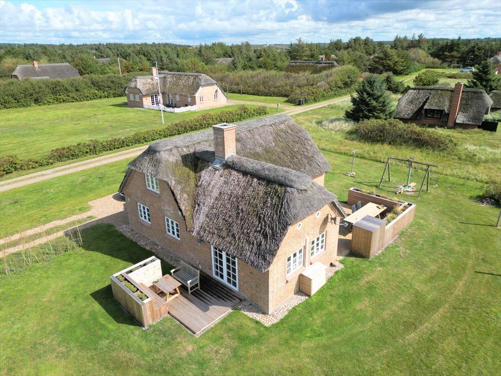 Das Urlaubsdomizil erwartet Sie auf einem großen, gepflegten Grundstück in Vedersø Klit, nur wenige Hundert Meter vom Nordseestrand entfernt. An die Südseite des Hauses schmiegt sich eine schöne Terrasse mit gutem Windschutz. Die gute Grasfläche bietet viel Platz zum Umhertollen und für Ballspiele. Dort befinden sich zudem drei Aufhängungen für Hängematten, in denen Sie es sich in der Sonne so richtig gemütlich machen können (die Hängematten liegen im Haus bereit). Ihren Pkw können Sie direkt am Ferienhaus abstellen.