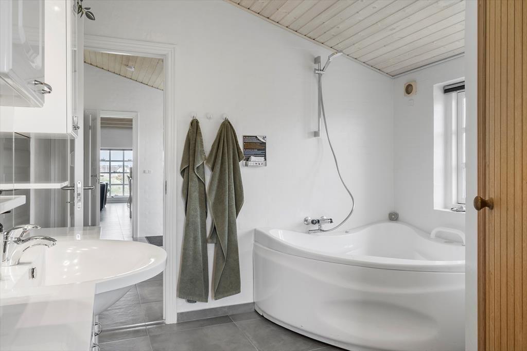 Dieses reizende Reetdachferienhaus lädt zu stimmungsvollen Urlaubstagen im Familienkreis ein. Vom Wohnraum aus blicken Sie über einen Großteil Vedersø Klits und haben Zugang zu zwei Terrassen, die gut abgeschirmt sind. Die Küche überzeugt mit einer angenehmen Größe und bietet alles, was Sie für das gemeinsame Zubereiten Ihrer Mahlzeiten benötigen. Eine Mikrowelle, ein Geschirrspüler und dergleichen sind vorhanden. Die Schlafplätze verteilen sich auf drei kleine aber gute Schlafzimmer. Zwei der Schlafzimmer beinhalten je ein Doppelbett. Im dritten Zimmer stehen zwei Einzelbetten bereit. Eines der beiden Badezimmer verwöhnt mit einem Whirlpool und einer Sauna. Das zweite Bad ist mit einer Dusche und einem WC versehen. Der im gemütlichen Wohnraum platzierte Fernseher empfängt dänische Sender und vier deutsche Programme. Der Wasserverbrauch ist nicht im Mietpreis inbegriffen.