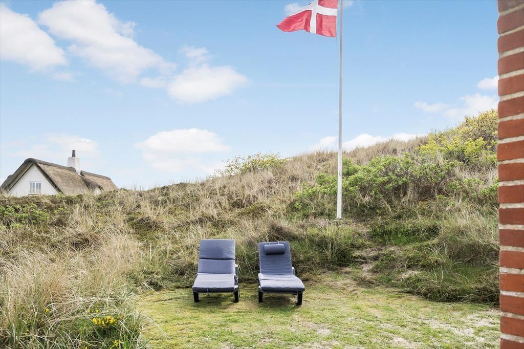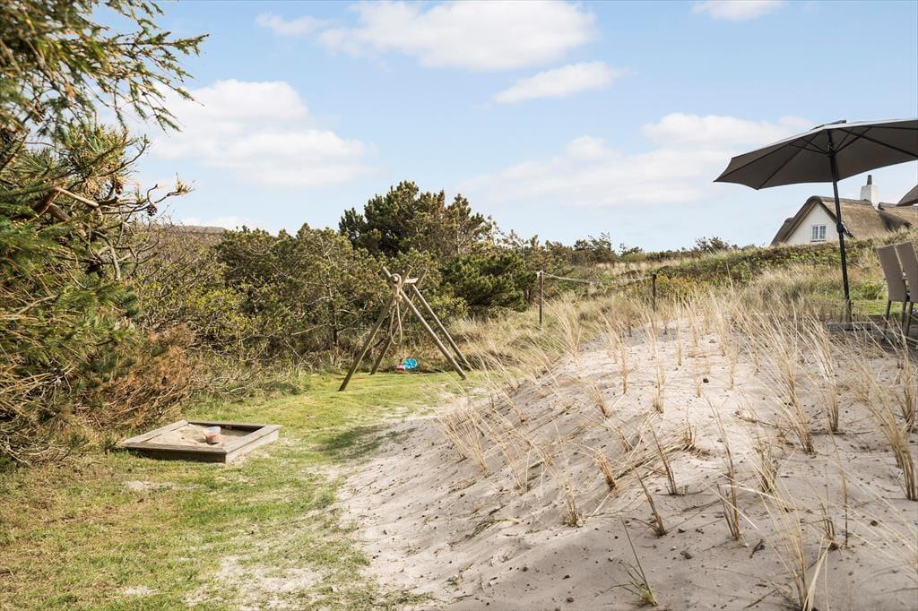 Sie wohnen in den Dünen Westjütlands. Auf dem hügeligen Naturgrundstück erwarten Sie mehrere kleine, gemütliche Eckchen. Die gute Terrasse besticht mit Aussicht über das Grundstück. Gartenmöbel und ein Grill laden zu erholsamen Momenten und entspannten Stunden an der frischen Seeluft ein. Ihre Kinder dürfen sich auf eine Schaukel und eine Sandkiste freuen.