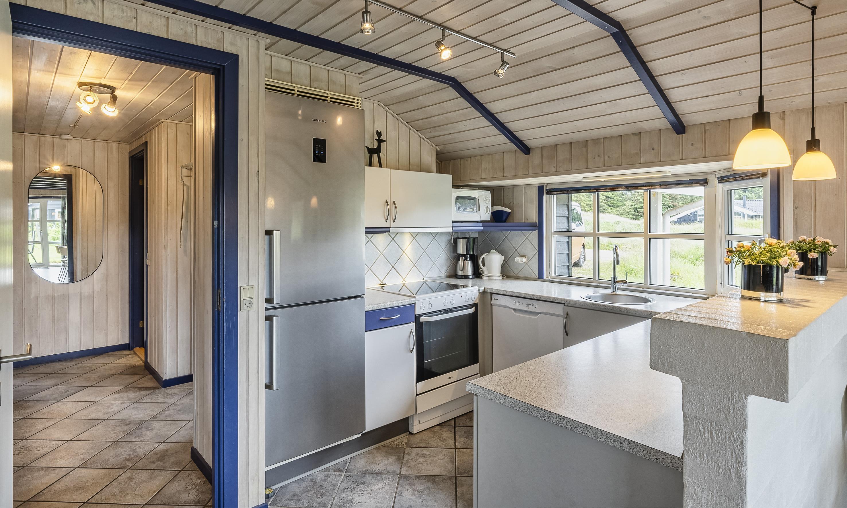 Dieses schöne Ferienhaus steht auf einem naturbelassenem Grundstück und ist für 8 Personen ausgestattet. Der Strand ist ca. 1 Km vom Ferienhaus entfernt. Von der gemütlichen Ledergarnitur, die im Wohnbereich aufgestellt ist, haben Sie einen direkten Blick auf den Kamin. Der Essbereich ist zum Wohnbereich offen und bietet genügend Platz für all seine Bewohner an. Das deutsche Fernsehprogramm empfangen Sie über eine Parabolantenne. Chromecast und Stofa-TV. Die Küche ist einfach aber bietet alles was Sie im Urlaub brauchen. Sie verfügt über einen Herd mit Kochplatten, einem Backofen, einer Geschirrspülmaschine, einer Mikrowelle und einer Kühl- und Gefrierkombination. Es stehen den Gästen zwei Badezimmer zur Verfügung. Das Gästebad verfügt über ein WC, ein Handwaschbecken und eine Dusche. Im dem großen Badezimmer befindet sich ein WC, ein Handwaschbecken, eine Dusche, eine Sauna und ein Whirlpool. Die Waschmaschine und der Trockner sind ebenfalls hier in dem großen Badezimmer untergebracht. Insgesamt stehen den Gästen vier Schlafzimmer zur Verfügung: DB + DB + DB + 2B. Drei davon sind mit je einem Doppelbett ausgestattet und das Letzte hat zwei Einzelbetten. Wärmepumpe. Fast rundum geht der Terrassenbereich. Ein kleiner Teil davon ist sogar überdacht, ebenso der Eingangsbereich. Das Ferienhaus verfügt über einen Internetanschluss (W-Lan). Schaukel und Sandkiste. Rauchen ist nicht erlaubt. Es sind keine Haustiere erlaubt, mit Ausnahme ein kleiner Hund mit max. Rückenhöhe von 30 cm. Das Ferienhaus wurde 1997 erbaut. Gratis Eintritt für Fitness in Vejers und Blåvand in 2026