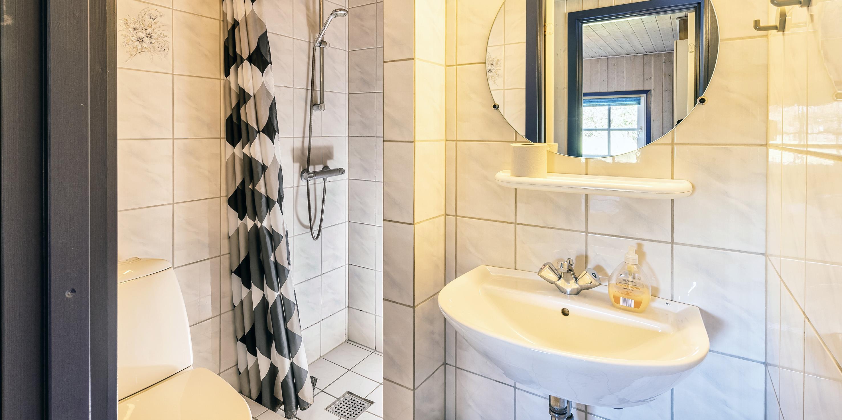 Badezimmer mit Toilette, Dusche und Waschbecken