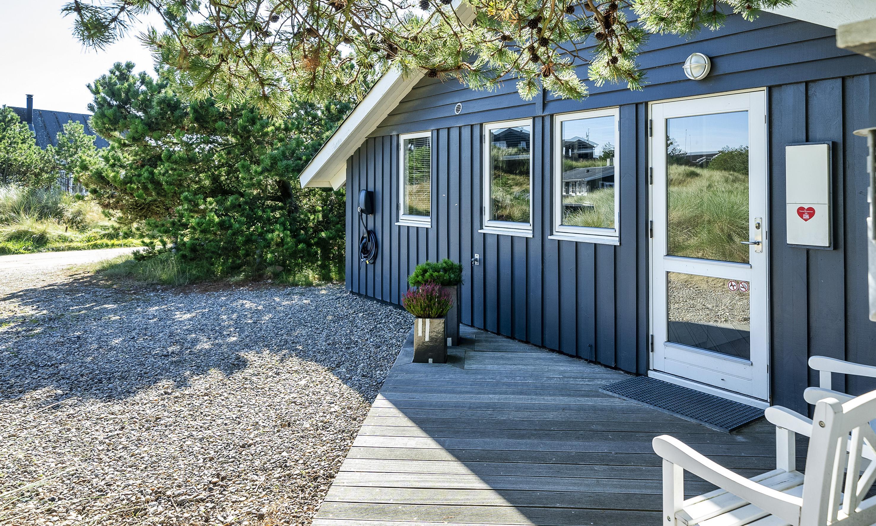 Hell und freundlich ausgestattetes Ferienhaus mit Namen ”Karen” in Mitten der Dünenlandschaft gelegen, umgeben von Büschen und Hagebutten. Das Ferienhaus ist für 4 Personen ausgestattet. Der Strand ist ca. 400 Meter vom Haus entfernt. Der Wohn-, Ess- und Kochbereich ist gefliest. Im Wohnbereich befindet sich ein Kamin und das Fernsehgerät. Wärmepumpe. Das deutsche Feinsehprogramm empfangen Sie über eine Parabolantenne sowie Stofa. Chromecast. Die offene Küche verfügt über einen Herd mit Cerankochfld, einem Backofen, einer Geschirrspülmaschine, einer Mikrowelle und einer Kühl- und Gefrierkombination. Es stehen den Gästen ein normales großes Badezimmer und ein Gästebad zur Verfügung. Das große Badezimmer ist mit einem WC, einem Handwaschbecken, einer Dusche, einer Sauna und einem Whirlpool ausgestattet. Das Gästebad verfügt über ein WC und ein Handwaschbecken. Hier im Gästebad ist die Waschmaschine und der Trockner ebenfalls untergebracht. Insgesamt stehen Ihnen drei Schlafzimmer zur Verfügung: DB + B + B. 1 Schlafzimmer sind mit einem Doppelbett ausgestattet. Zwei Schlaffzimmer mit je einem Einzelbett. Zwei schöne Terrassenbereiche stehen Ihnen zur Verfügung. Bei einer der Terrassen ist sogar ein Teil überdacht. Das Ferienhaus verfügt über einen Internetanschluss (W-Lan, 200/200 Mbit). Es sind keine Haustiere erlaubt. Rauchen ist nicht erlaubt im Haus. Schaukel. Zusätzlich befindet sich ein Anschluss am Ferienhaus für El-Fahrzeuge. Das Ferienhaus ist 1995 erbaut worden.