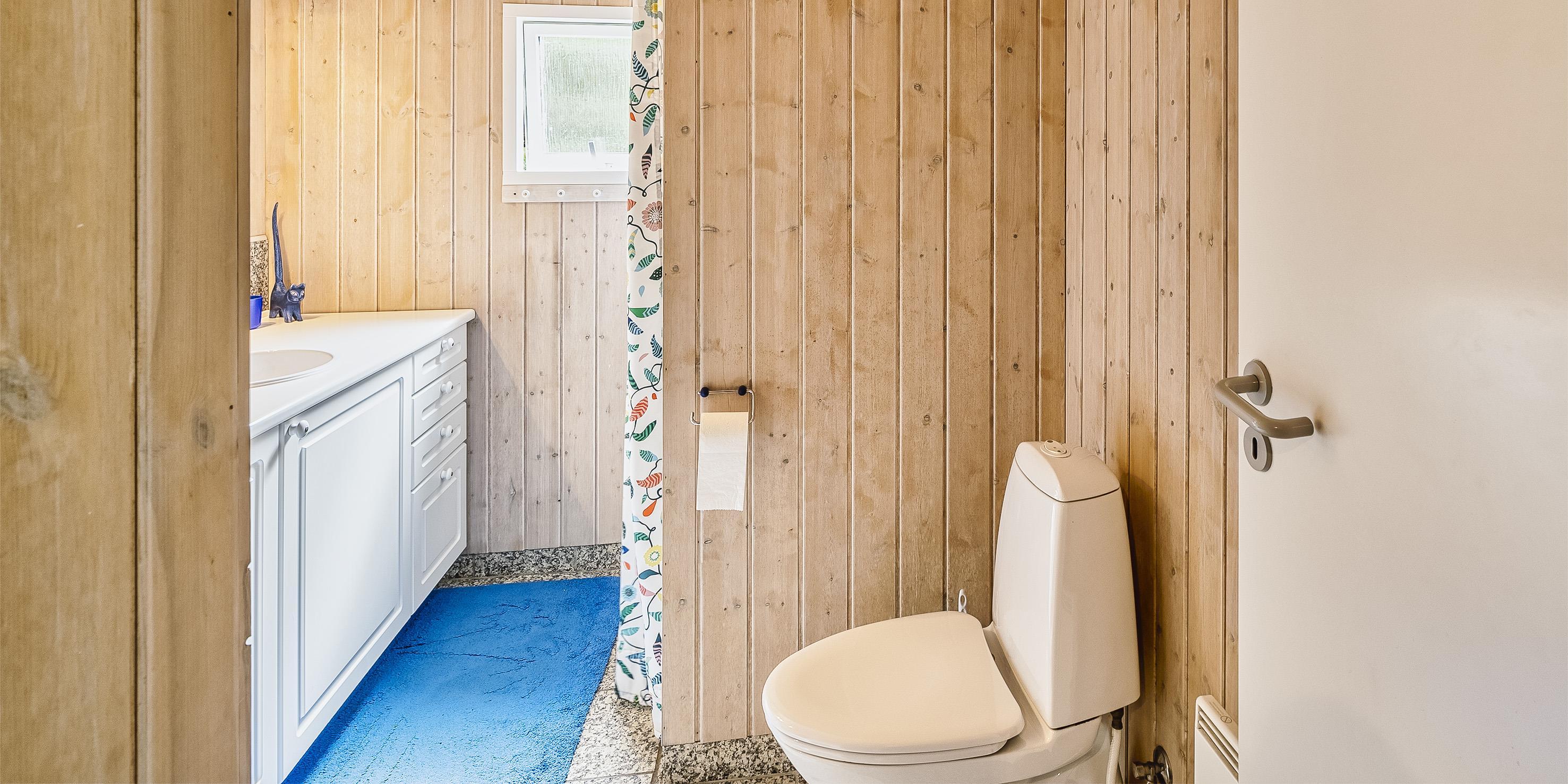 Badezimmer mit Toilette, Dusche und Waschbecken