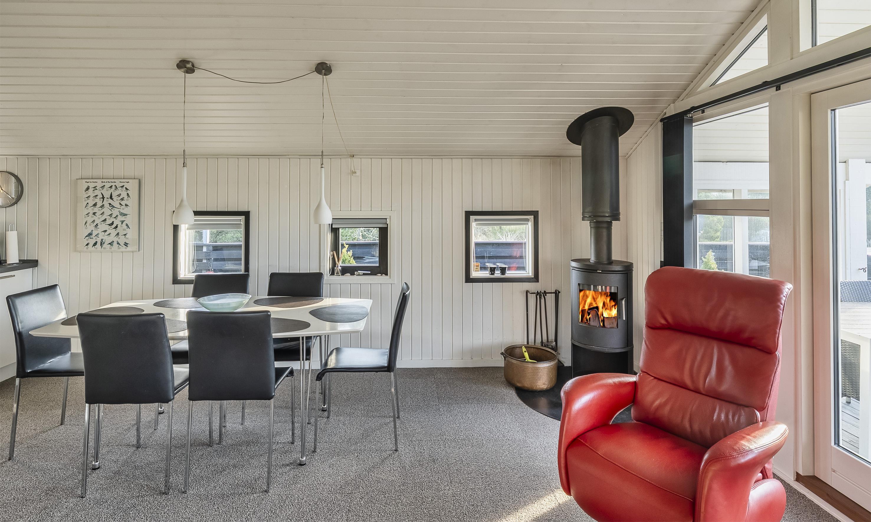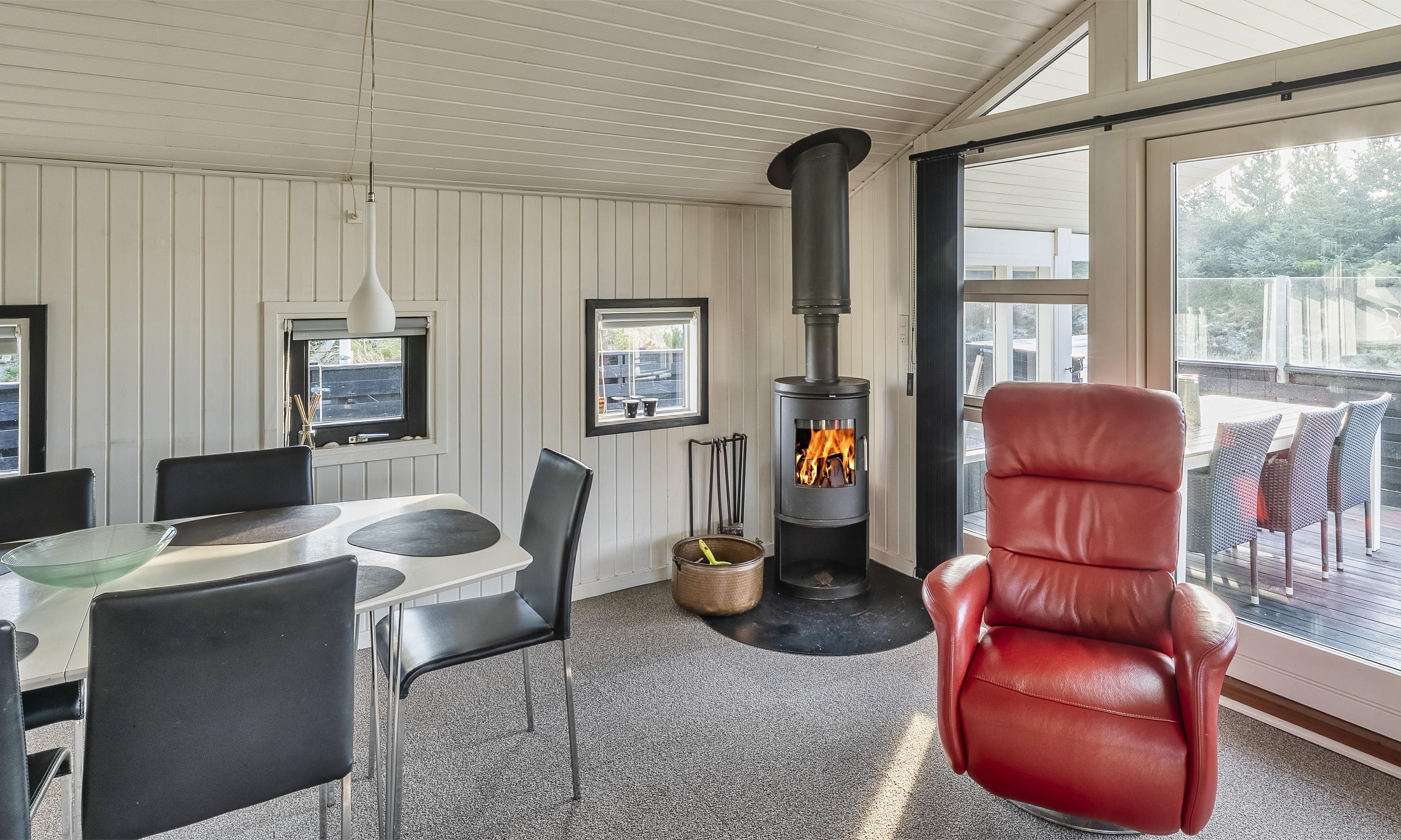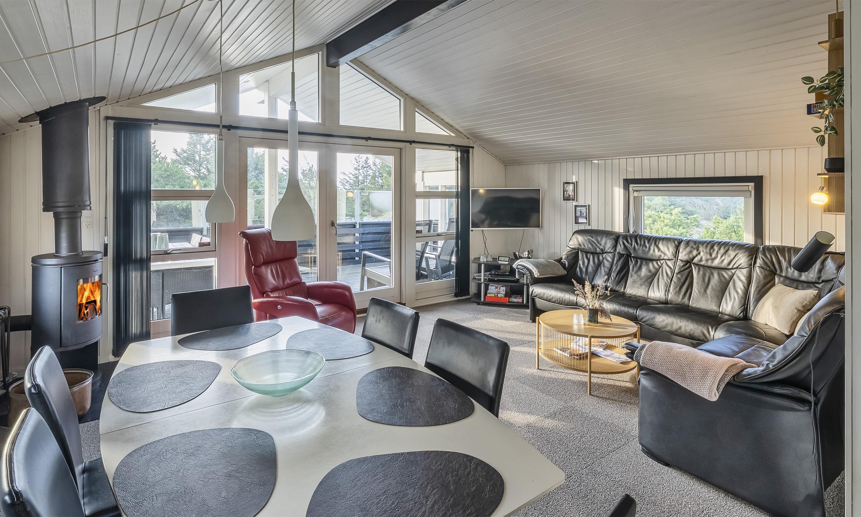 Das Ferienhaus ist ein Ort der Gemütlichkeit, Ruhe und des Beisammenseins. Treten Sie ein in das warme und einladende Wohnzimmer, in dem ein knisternder Kamin für gemütliche Abende sorgt, während große Fensterfronten das Tageslicht und die Natur ins Haus holen.