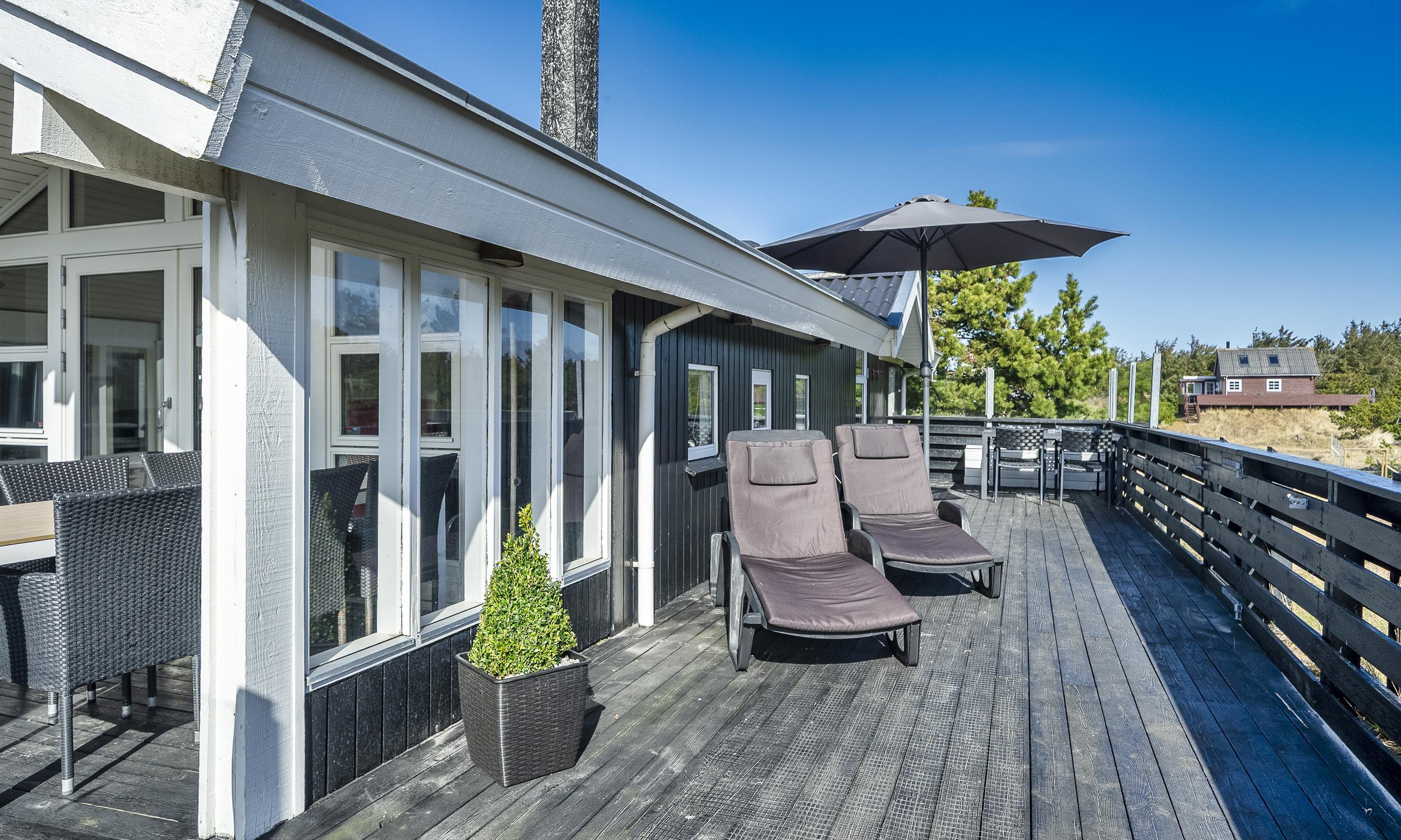 Mehrere schöne Terrassen rund um das Haus bieten jederzeit den perfekten Platz, um den Morgenkaffee in der Sonne oder ein Glas Wein in der Abenddämmerung zu genießen, während der Himmel seine Farben über die Dünen malt.