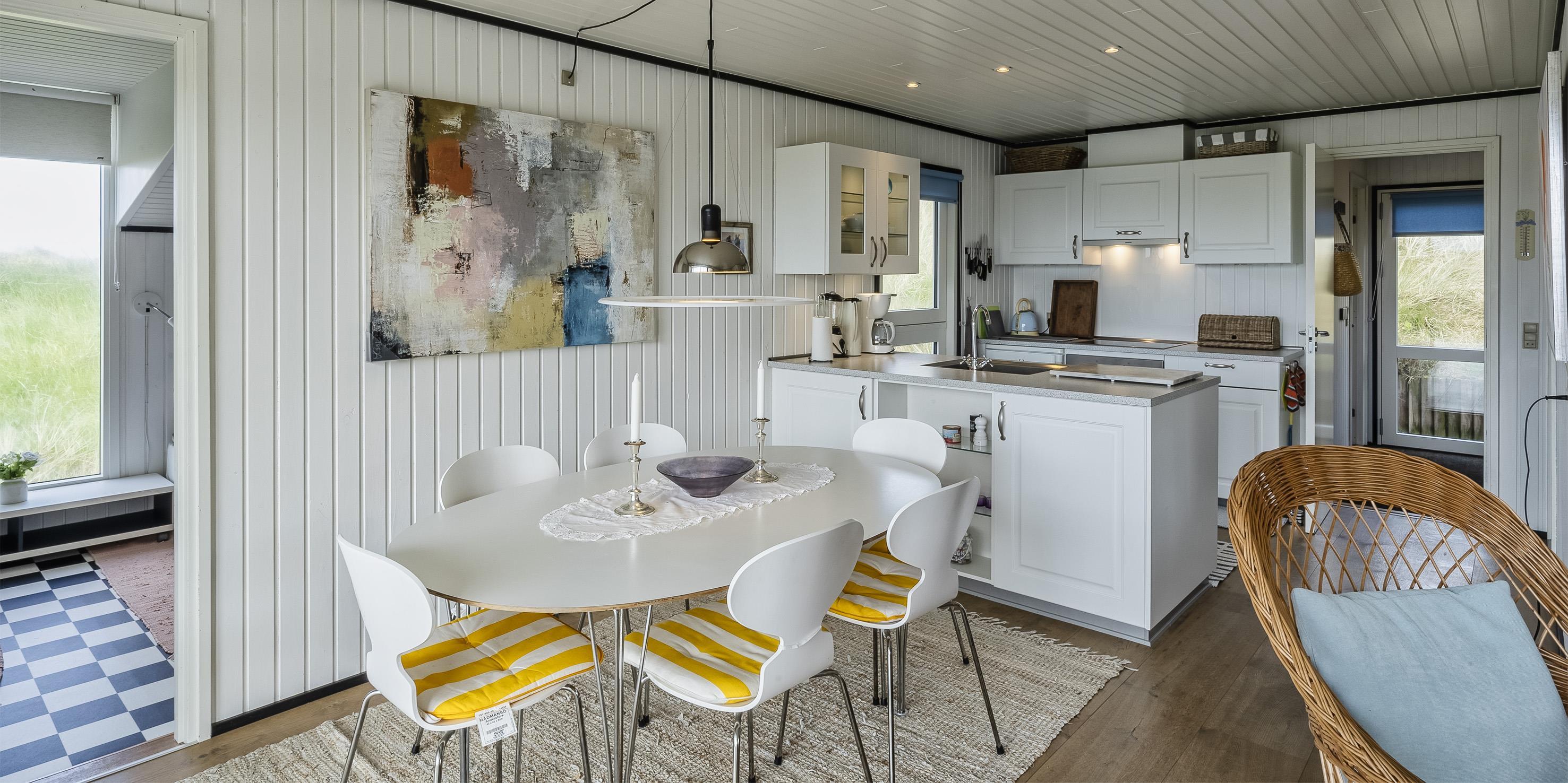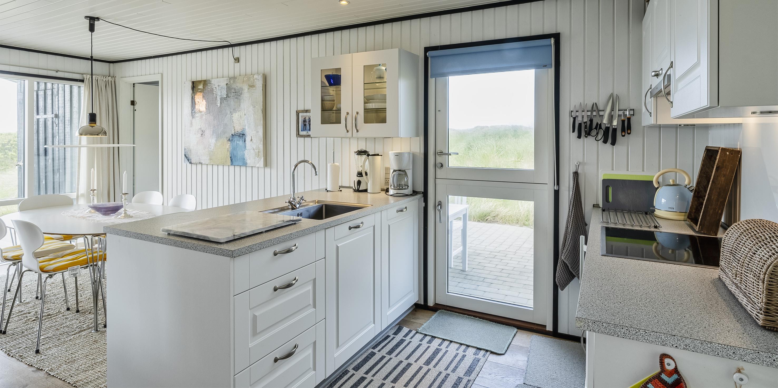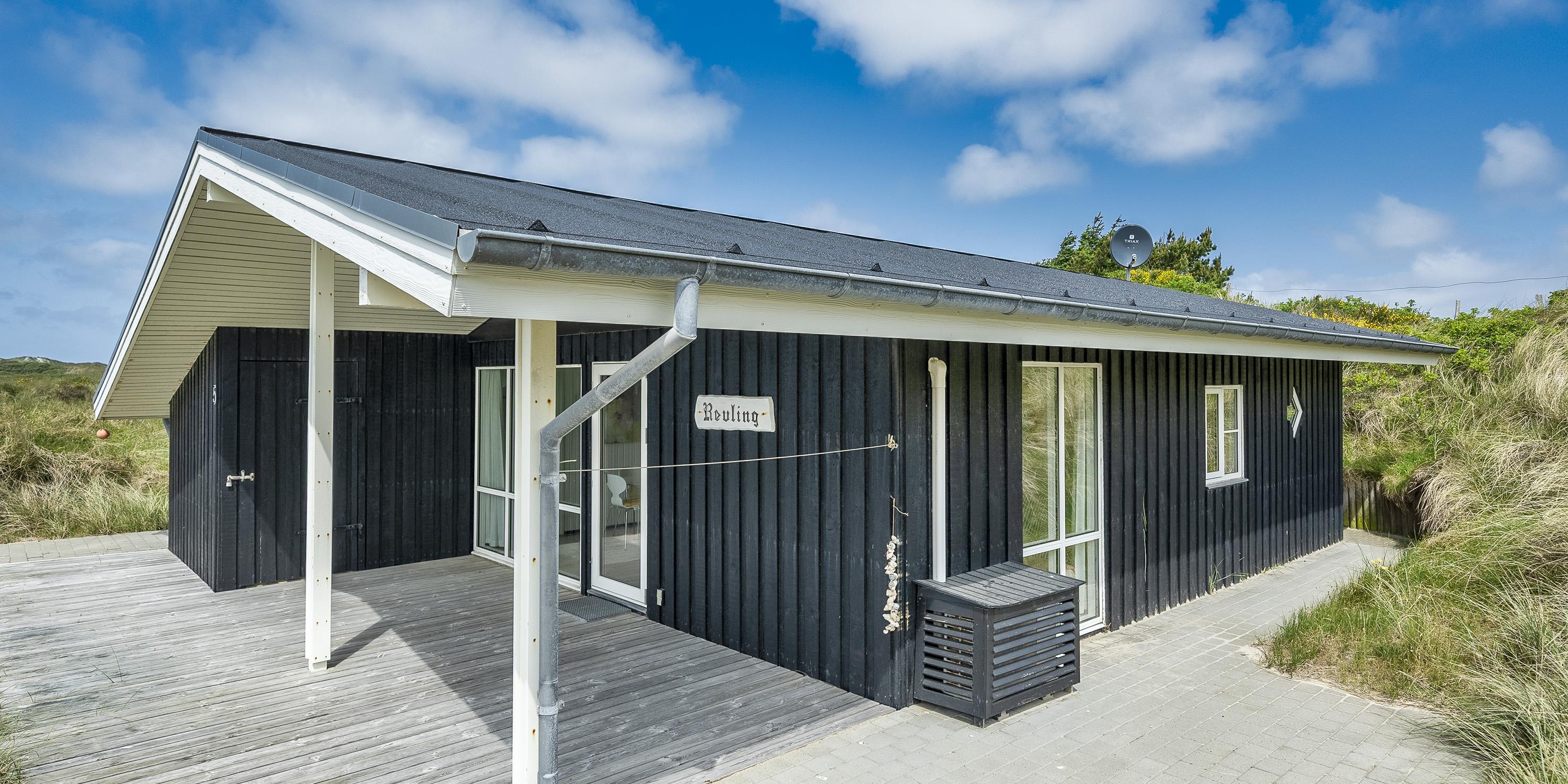 Dieses kleine gemütliche Ferienhaus mit Namen "Revling" liegt in mitten der Dünen und nur 100 Meter vom Strand entfernt. Es ist für 5 Personen ausgestattet und niedlich eingerichtet. In der gemütlichen Wohnecke mit der Sofagarnitur befindet sich eine Warmepumpemit der Sie das Haus beheizen. Mit dieser Warmepumpe haben sie die Möglichkeit die Stromkosten zu senken, denn die Warmepumpe ist energiesparend. Das deutsche Fernsehprogramm ist über eine Parabolantenne zum empfangen und auch einen DVD-Player steht zur Verfügung. Desweiterren haben Sie Smart TV im Wohnbereich und in den Schlafzimmer. Die neue Küche verfügt über einen Herd mit Cerankochfeld, einem Backofen, einer Geschirrspülmaschine und einem Kühlschrank mit einem kleinen Gefrierfach. Es gibt drei Schlafzimmer in dem Haus: DB + 2B + B. Das Badezimmer ist mit einem WC, einem Handwaschbecken und einer Dusche ausgestattet. Das Ferienhaus verfügt über einen Internetanschluss (W-Lan). Fast der gesamte Terrassenbereich ist überdacht. Es sind keine Haustiere erlaubt. Auch das Rauchen im Haus ist nicht erlaubt. Das Ferienhaus wurde 1982 erbaut und in 2015 renoviert.