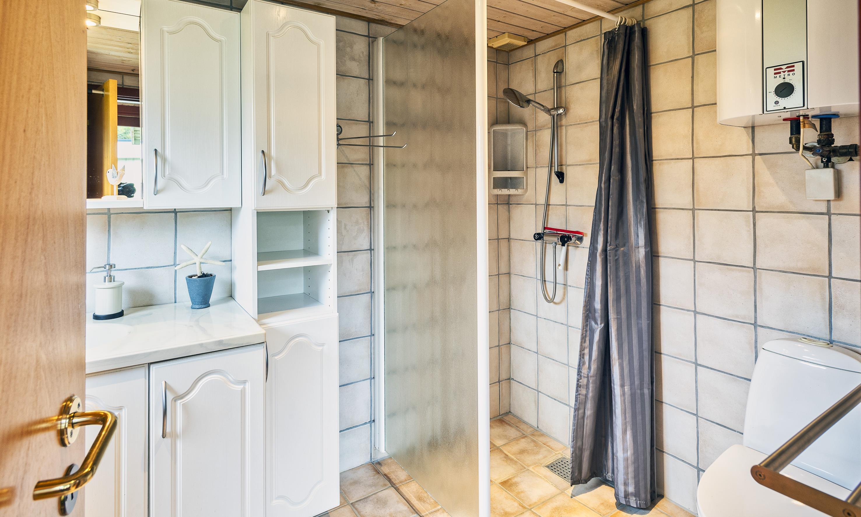 Badezimmer mit Toilette, Dusche und Waschbecken