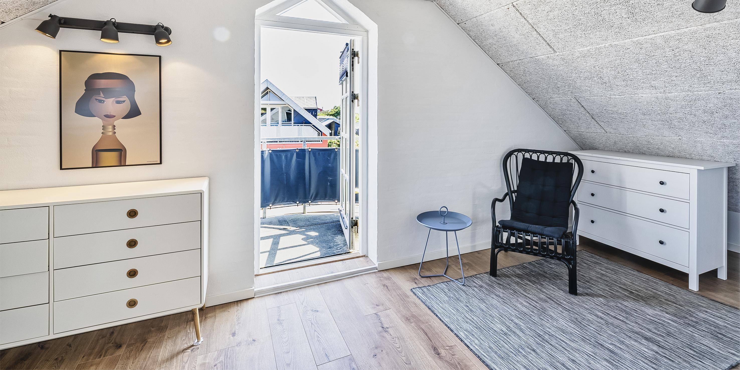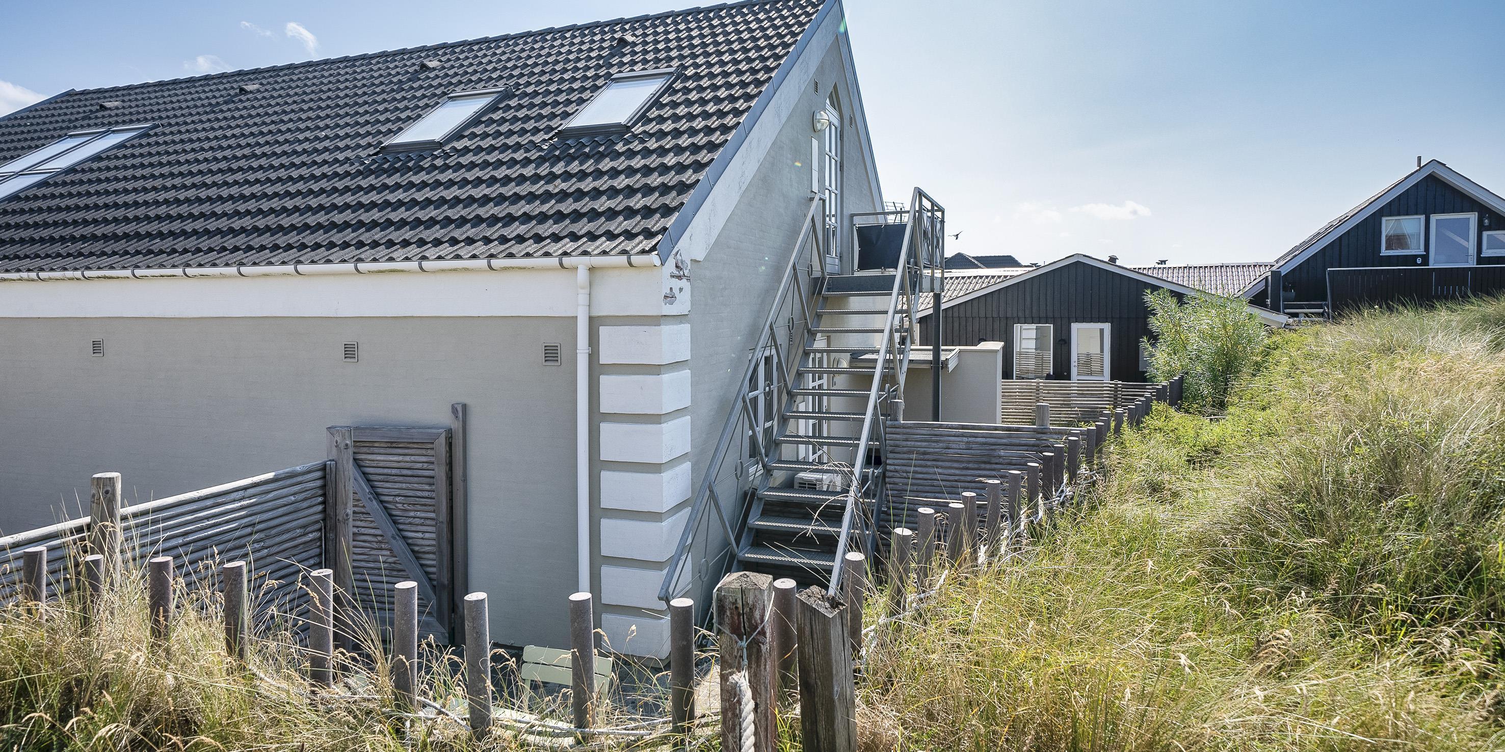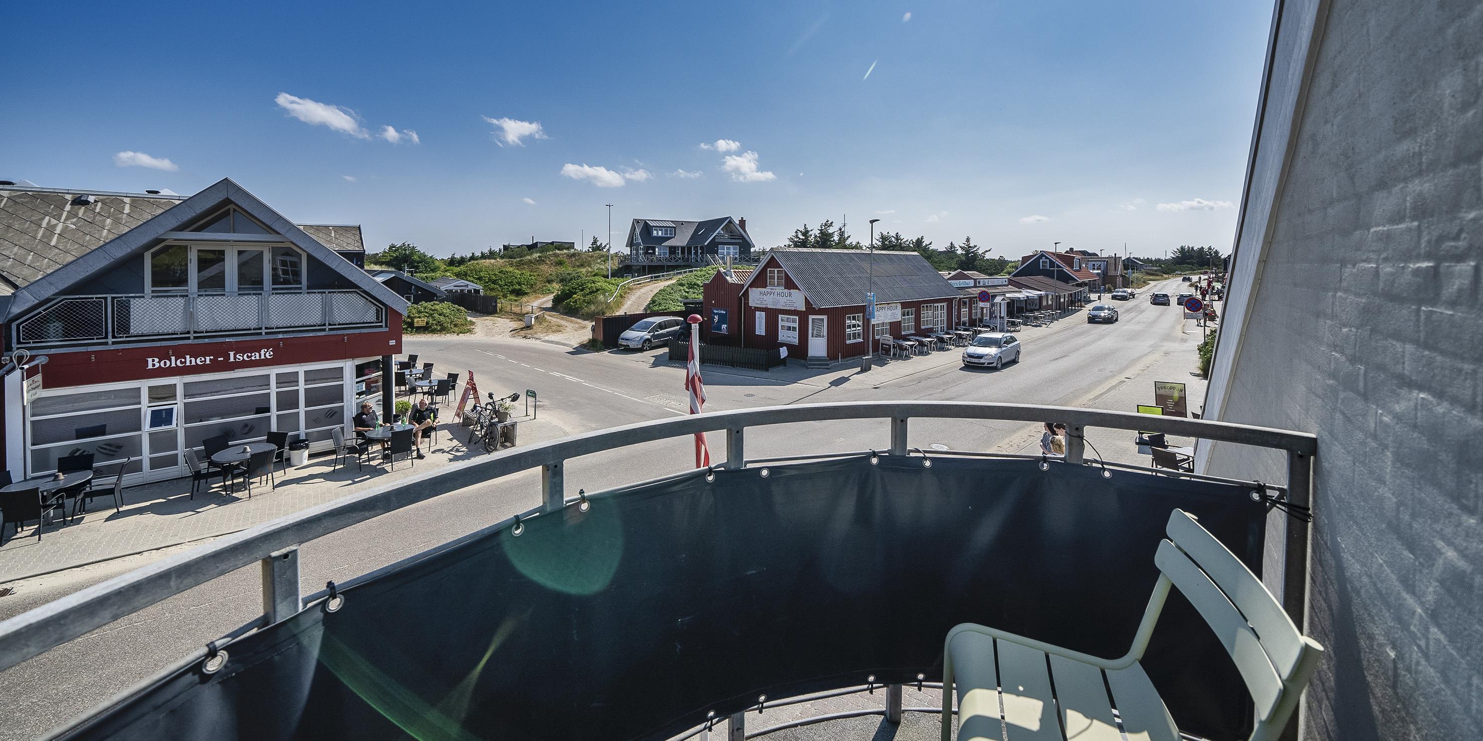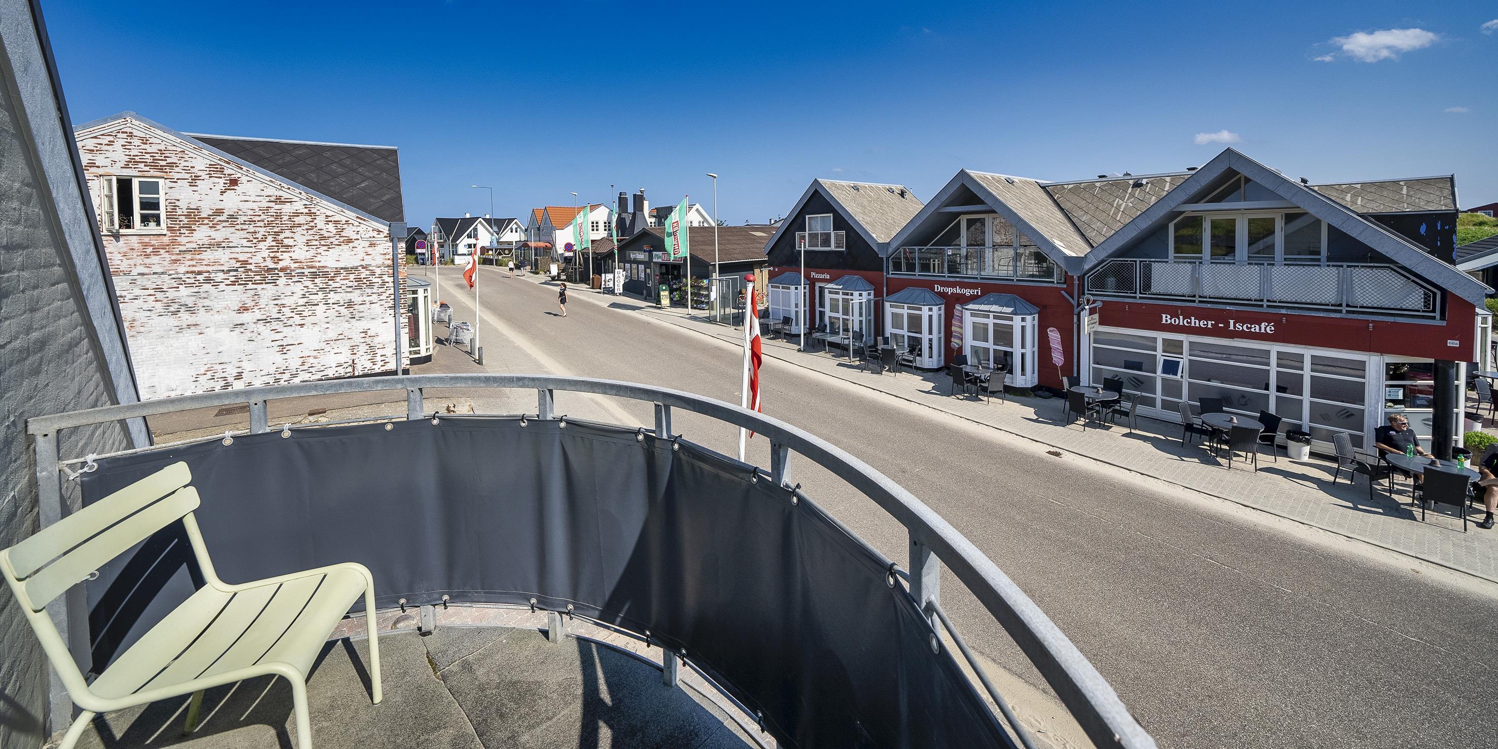 Diese helle und freundliche Ferienwohnung liegt Mitten im Herzen von Vejers Strand über der ehemalige Butik "Vivi". Sie ist geschmackvoll eingerichtet und bietet für 4 Personen genügend Platz. Die Wohnung erreichen Sie über eine Metalltreppe, die sich auf der Rückseite des Gebäudes befindet. Die Treppe ist mit großen Löchern versehen und weniger geeignet beim Aufstieg von Hunden. Die Wohnung befindet sich über dem Spiele-Land, daher kann es tagsüber zu Lärmbelätigung durch spielende Kinder kommen. Vom Balkon, der zum Ortsinneren zeigt, sind Sie hautnah am Geschehen von Vejers Strand dabei. Der Wohn- und Essbereich ist mit Laminat verlegt. Die Sofagarnitur ist sehr gemütlich und hat seinen gewissen Stil. Das deutsche Fernsehprogramm empfangen Sie über Parabol-Antenne. Die Küche ist modern eingerichtet und verfügt über einen Herd mit Cerankochfeld, einer Geschirrspülmaschine und einer Kühl- und Gefrierkombination. Das Badezimmer hat ein WC, eine Dusche und ein Handwaschbecken. Im Eingangsbereich sind die Waschmaschine und der Trockner untergebracht. Es gibt zwei Schlafzimmer in der Wohnung: DB + DB. Desweiteren finden Sie einen kleinen geschlossenen Innenhof, wo dann die Terrassenmöbeln aufgestellt sind. Es sind max. zwei Haustiere erlaubt. Es befindet sich eine Parkmöglichkeit direkt am Haus. Ab 01.07.2017 ist ein Internetanschluss (W-Lan) in der Wohnung vorhanden. Das Rauchen ist nicht gestattet. Die Wohnung ist in 2017 neu ausgebaut und renoviert, nur dass Badezimmer ist von 1997.