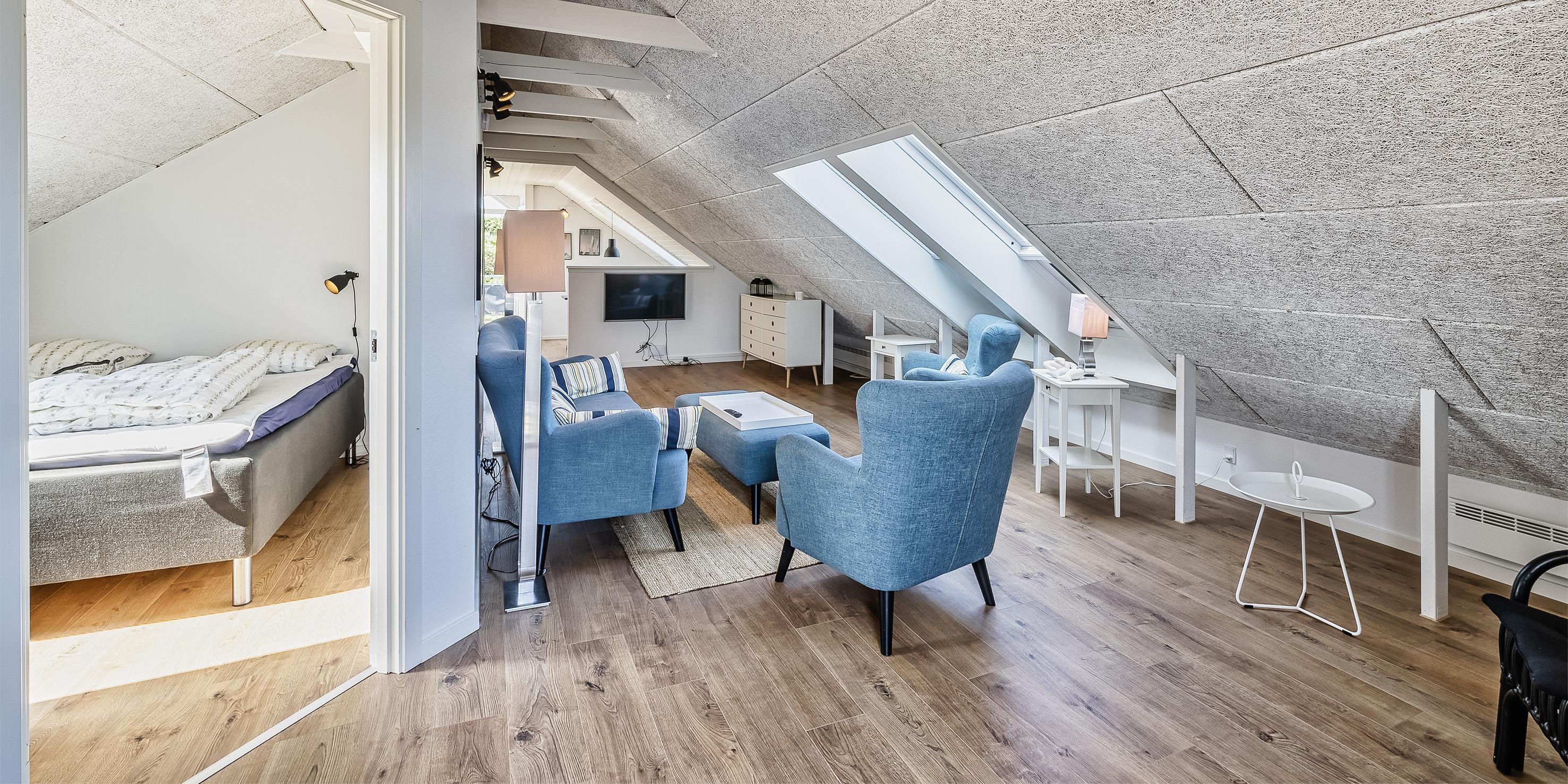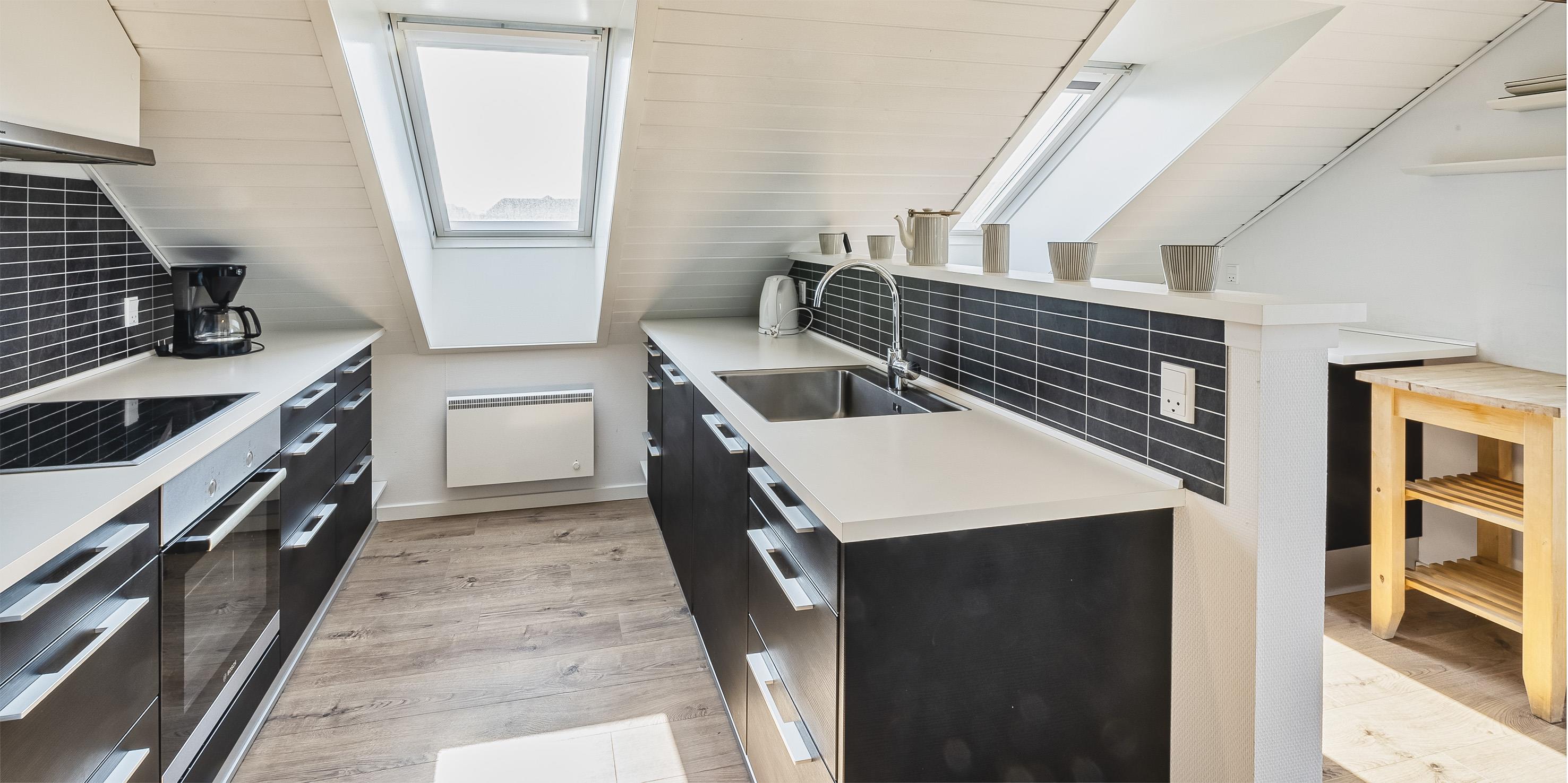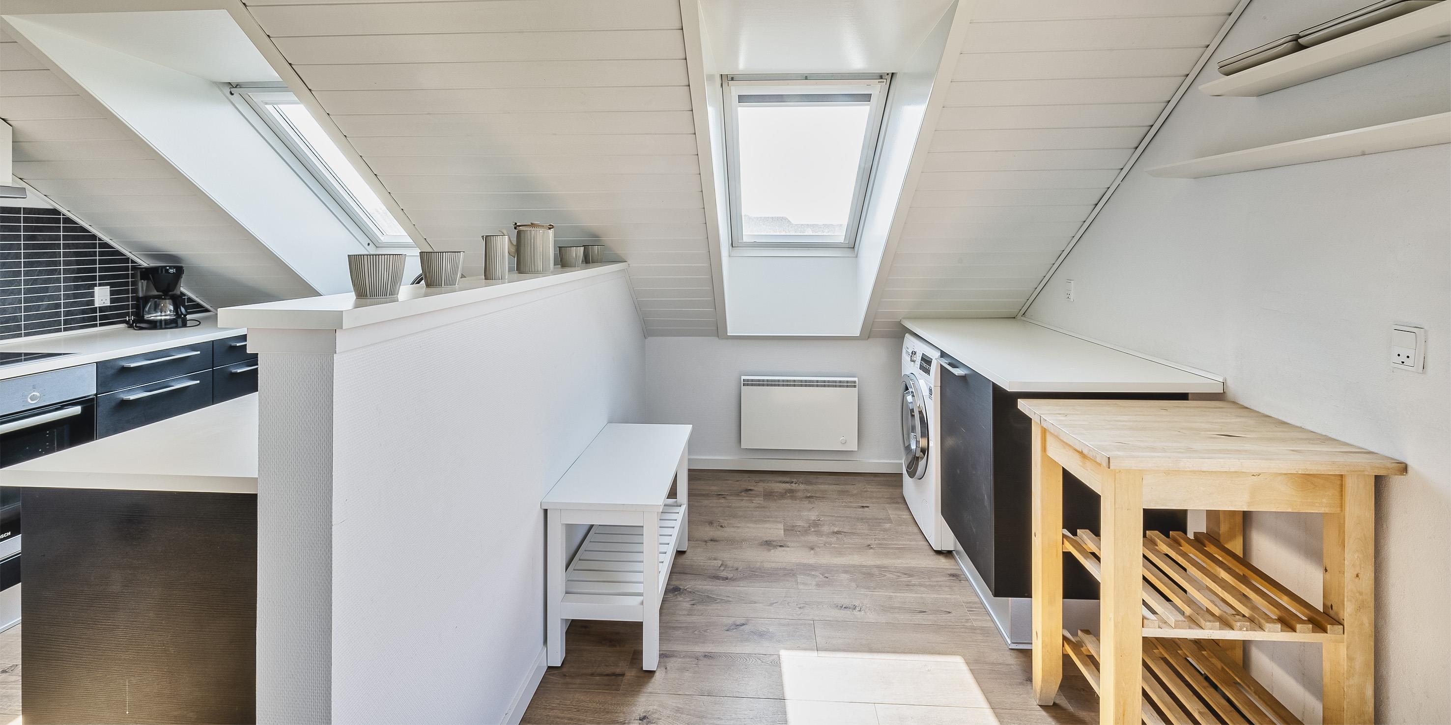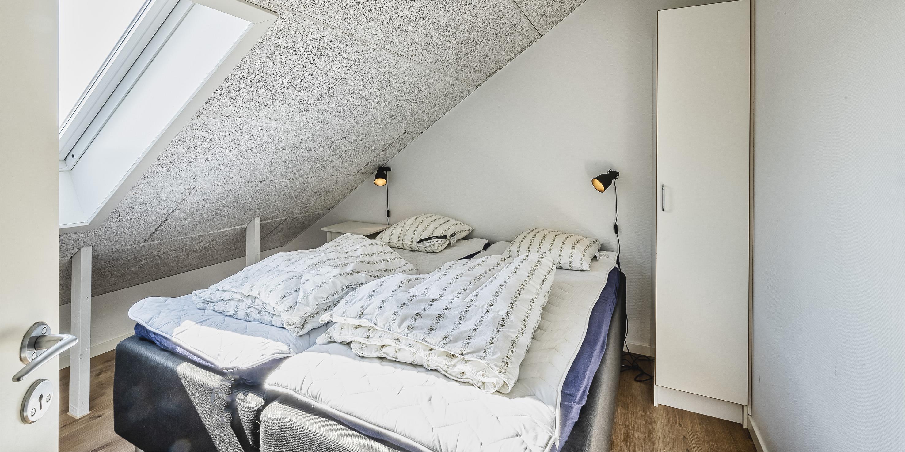 Diese helle und freundliche Ferienwohnung liegt Mitten im Herzen von Vejers Strand über der ehemalige Butik "Vivi". Sie ist geschmackvoll eingerichtet und bietet für 4 Personen genügend Platz. Die Wohnung erreichen Sie über eine Metalltreppe, die sich auf der Rückseite des Gebäudes befindet. Die Treppe ist mit großen Löchern versehen und weniger geeignet beim Aufstieg von Hunden. Die Wohnung befindet sich über dem Spiele-Land, daher kann es tagsüber zu Lärmbelätigung durch spielende Kinder kommen. Vom Balkon, der zum Ortsinneren zeigt, sind Sie hautnah am Geschehen von Vejers Strand dabei. Der Wohn- und Essbereich ist mit Laminat verlegt. Die Sofagarnitur ist sehr gemütlich und hat seinen gewissen Stil. Das deutsche Fernsehprogramm empfangen Sie über Parabol-Antenne. Die Küche ist modern eingerichtet und verfügt über einen Herd mit Cerankochfeld, einer Geschirrspülmaschine und einer Kühl- und Gefrierkombination. Das Badezimmer hat ein WC, eine Dusche und ein Handwaschbecken. Im Eingangsbereich sind die Waschmaschine und der Trockner untergebracht. Es gibt zwei Schlafzimmer in der Wohnung: DB + DB. Desweiteren finden Sie einen kleinen geschlossenen Innenhof, wo dann die Terrassenmöbeln aufgestellt sind. Es sind max. zwei Haustiere erlaubt. Es befindet sich eine Parkmöglichkeit direkt am Haus. Ab 01.07.2017 ist ein Internetanschluss (W-Lan) in der Wohnung vorhanden. Das Rauchen ist nicht gestattet. Die Wohnung ist in 2017 neu ausgebaut und renoviert, nur dass Badezimmer ist von 1997.