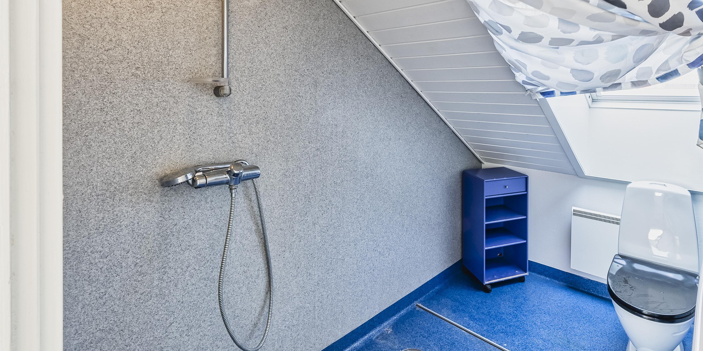 Badezimmer mit Toilette, Dusche und Waschbecken