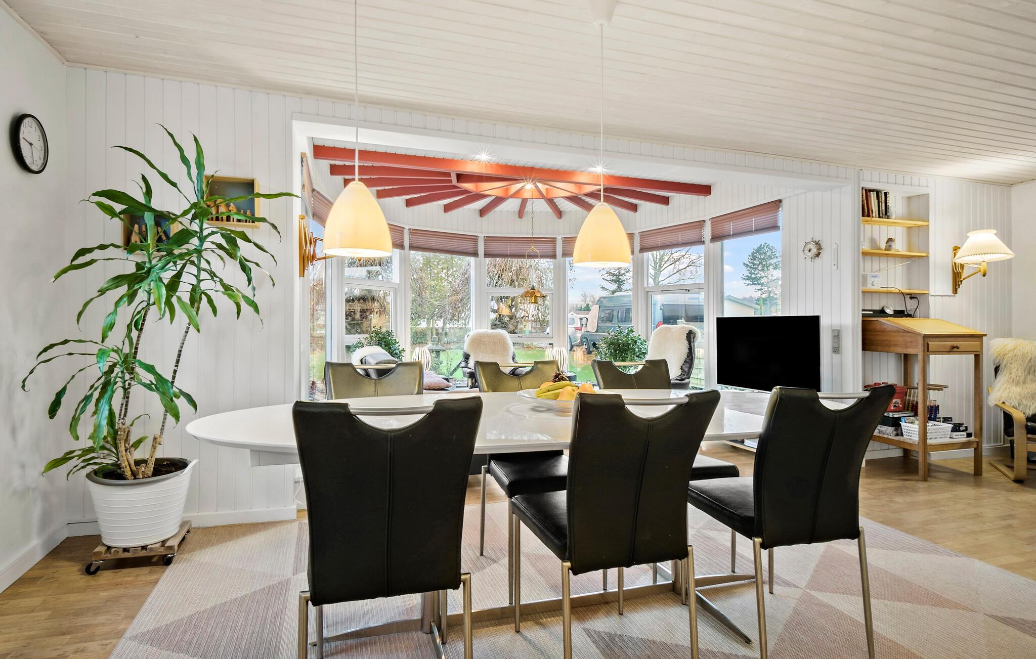 Wenige Gehminuten von der Küste entfernt erwartet Sie und Ihre Familie dieses hell und komfortabel eingerichtete Ferienhaus. Das Herz des Hauses bildet das zur Küche hin offene Wohnzimmer, das sich in einer Art rundem Wintergarten mit großen Fenstern befindet. In dieser heimeligen Atmosphäre können Sie Ihre Auszeit in vollen Zügen genießen und sich in den kühleren Jahreszeiten vorm Kaminofen wärmen, während Sie dem knisternden Feuer lauschen.