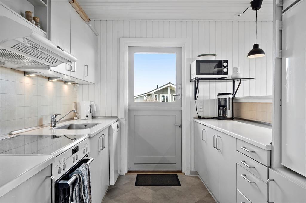 Das Ferienhaus ist von einem großen Naturgrundstück mit gepflegtem Rasen umgeben – ideal für Spiele und Entspannung. Die geschlossene, nach Süden und Osten ausgerichtete Terrasse lädt dazu ein, den ganzen Tag über die Sonne zu genießen – von der morgendlichen Tasse Kaffee bis zum Abendessen unter freiem Himmel. Mit direktem Zugang vom Wohnzimmer und der Küche ist es einfach, die Mahlzeiten nach draußen zu bringen und die langen Sommerabende in vollen Zügen zu genießen.