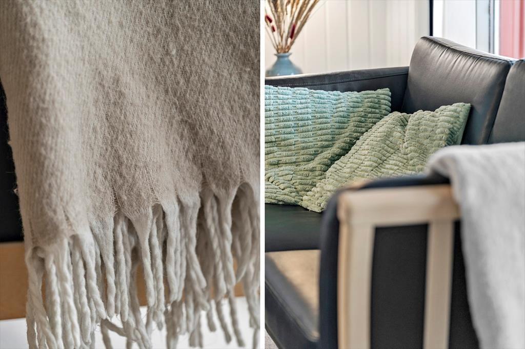 Beim Betreten des Ferienhauses wirst du von einem offenen Wohn- und Küchenbereich empfangen, wo die Küche harmonisch in das gemütliche Wohnzimmer übergeht. Hier kannst du leckere Mahlzeiten zubereiten, während sich die Familie um den Kaminofen versammelt, der an kühlen Abenden Wärme und eine behagliche Stimmung verbreitet. Nach einem Tag am Strand kannst du dich in der hauseigenen Sauna entspannen, die mit wohltuender Wärme für neue Energie sorgt.