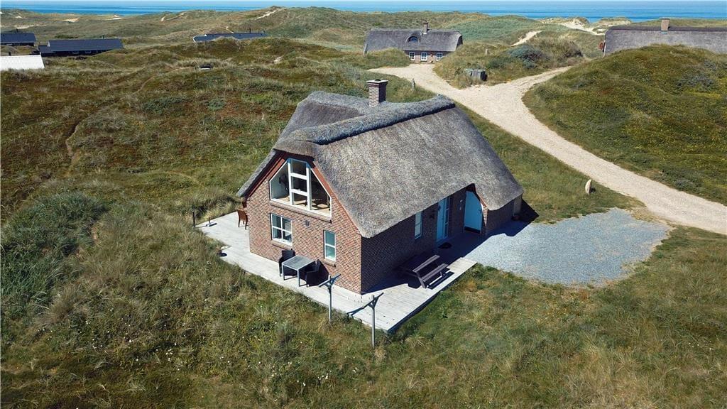 Träumst du von einem Urlaub mitten in der wilden Dünenlandschaft, wo die Schönheit der Natur und Komfort Hand in Hand gehen? Dann ist das Ferienhaus in der Doblervej 83 in Vejlby Klit genau die richtige Wahl. Hier erwartet dich ein geschmackvoll eingerichtetes Ferienhaus mit Reetdach und Blick auf die Dünen – gelegen auf einem großen Naturgrundstück in erster Dünenreihe. Ein Innen-Whirlpool, eine Sauna und ein gemütlicher Aktivitätsbereich im Obergeschoss machen dieses Haus das ganze Jahr über zum idealen Ort für Erholung und gemeinsame Zeit.