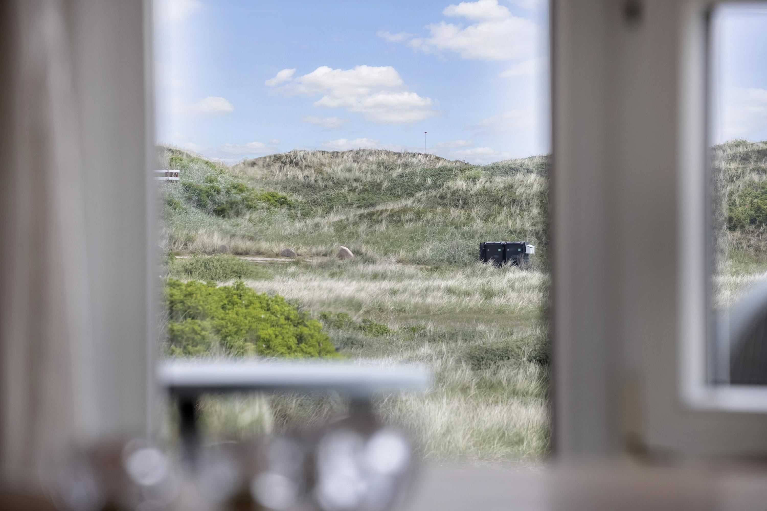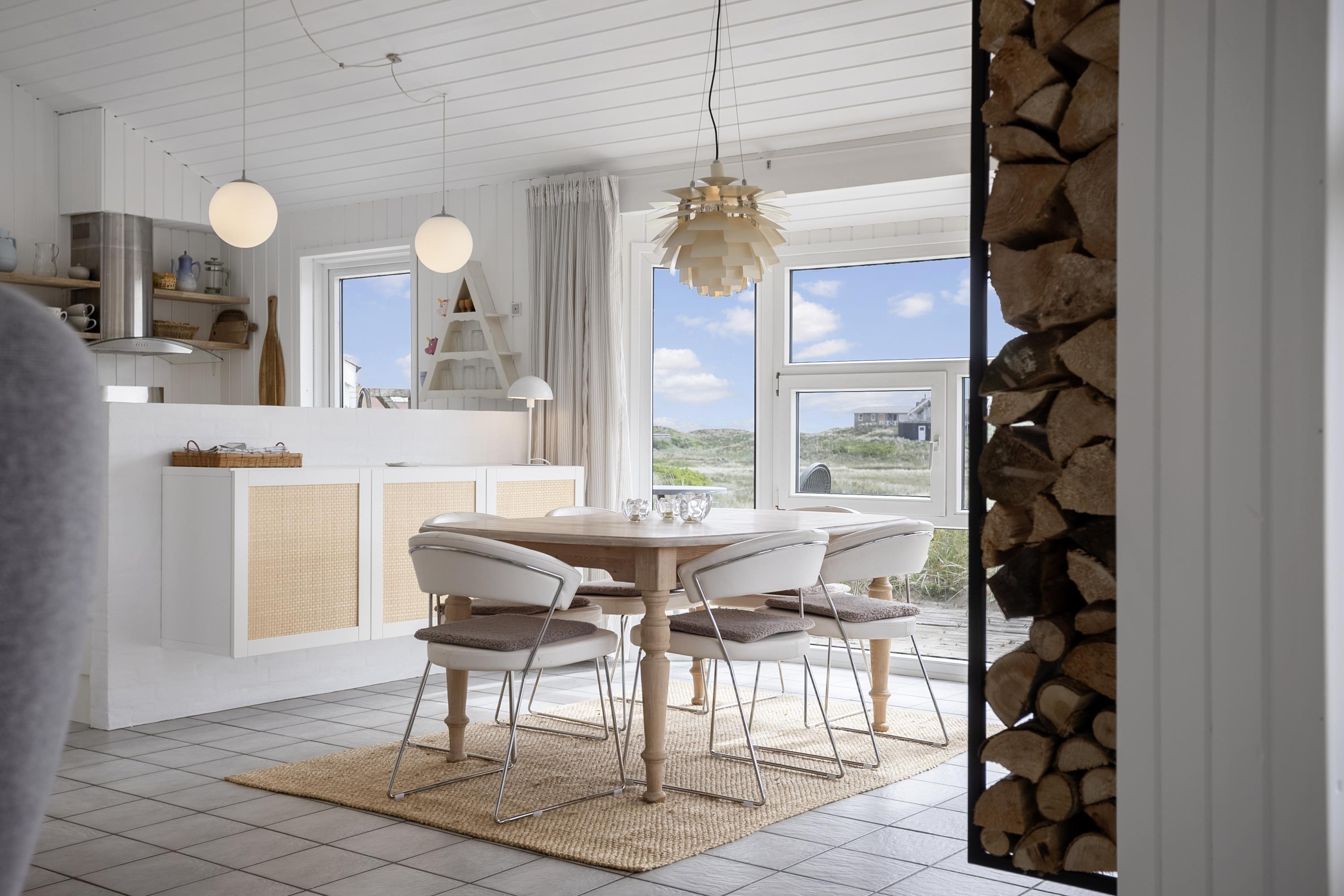 Das Wohnzimmer ist das Herz des Hauses. Große Fenster lassen die Natur herein, sodass Sie fast das Gefühl haben, mitten in den Dünen zu sitzen. An warmen Tagen öffnet sich der Raum zur Terrasse, und an kühleren Abenden können Sie den Kamin anmachen, sich in den komfortablen Möbeln zurücklehnen und das Knistern der Flammen eine ganz besondere Stimmung erzeugen lassen. Ob Sie einen Film anschauen, am Esstisch Karten spielen oder einfach in Ruhe sitzen und dem fernen Rauschen des Meeres lauschen – das Wohnzimmer lädt zu Nähe und Gemütlichkeit ein.