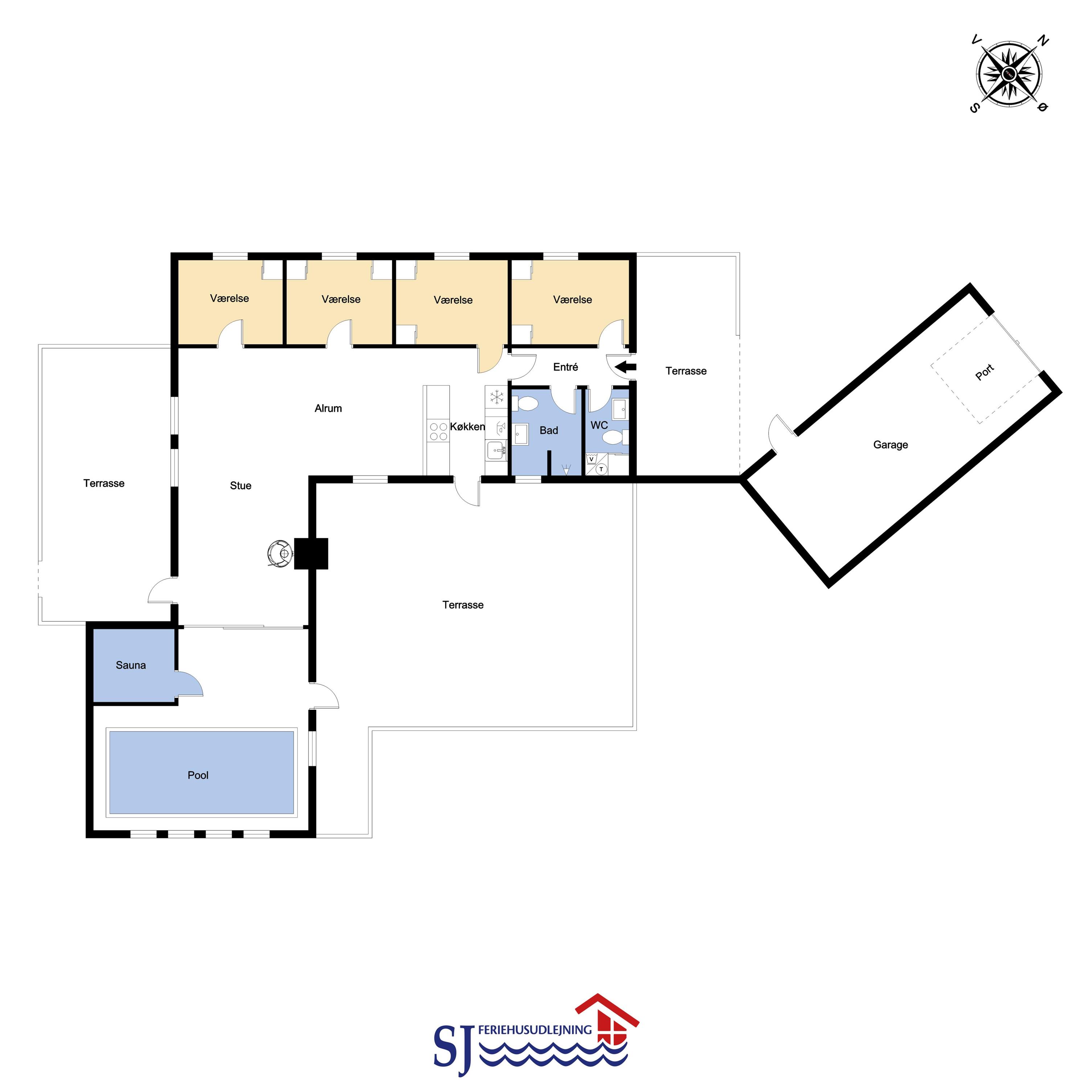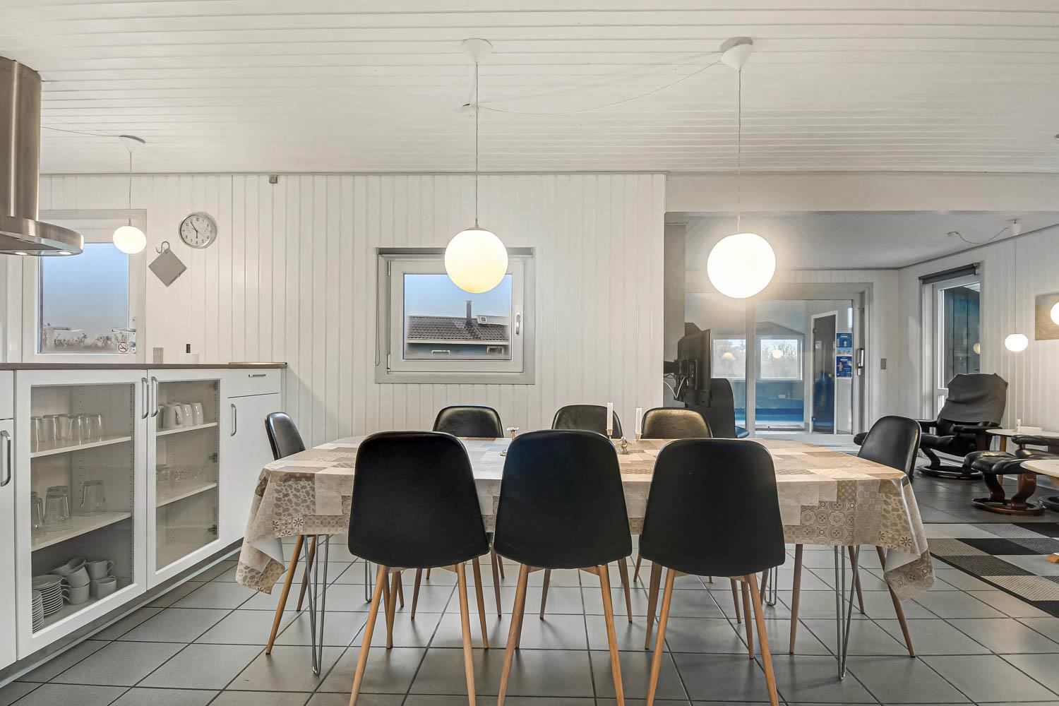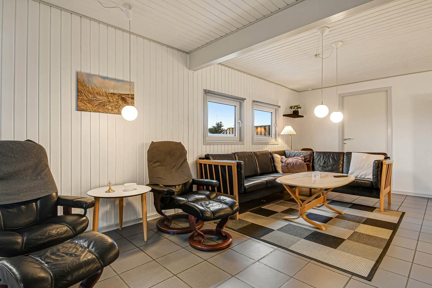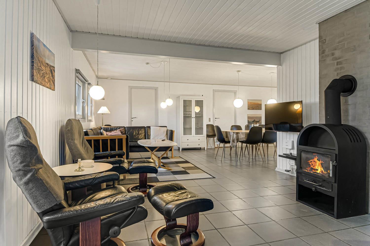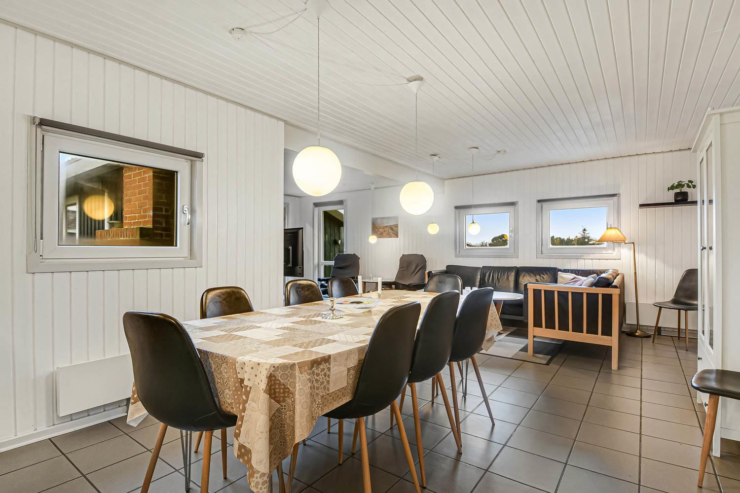 Neue, Offene Küche mit Wohn- und Essbereich, gut ausgestattet mit Geschirrspüler, Mikrowelle und 50-Liter-Gefrierschrank. Das Wohnzimmer ist eingerichtet mit Flachbildschirm-TV mit dänischem (DR1, TV2) und deutschem Programm (Satellitenempfang), Stereoanlage mit CD-Player, DVD-Player. Die großen Glastüren bieten einen offenen Blick in den Poolbereich. 4 Schlafzimmer: 1 DB + 1 DB + 2B + 2B. Es gibt 1 Badezimmer mit Dusche, Waschbecken, Toilette, Fußbodenheizung, Waschmaschine und Trockner. Eine Gästetoilette mit Waschbecken. Vom Poolraum haben Sie direkten Zugang zur Sauna, wo Sie sich nach dem Schwimmen aufwärmen können. Wenn Sie ein Elektroauto oder einen Plug-in-Hybrid haben, verfügt das Haus über eine Ladebox. 2 Hunde sind erlaubt. Nichtraucherhaus. Kaution Wintersaison EUR 600 und Sommersaison EUR 300.