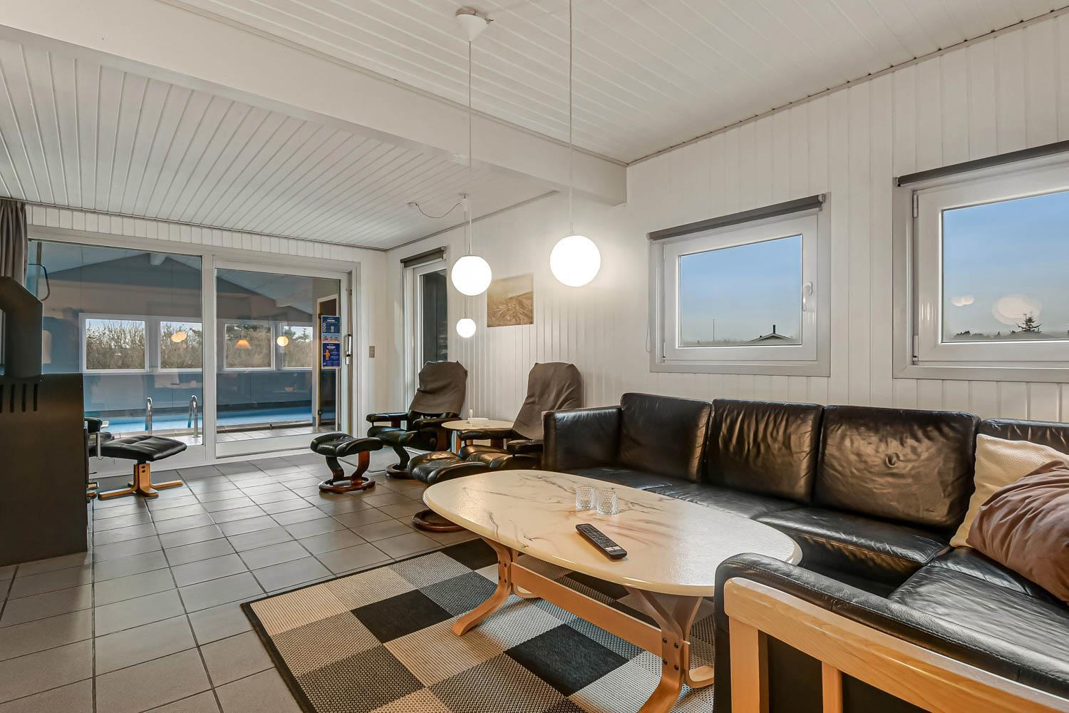 Nur 300 m von der Nordsee und 700 m vom Ferring See entfernt, liegt dieses geräumige Poolhaus auf einem Naturgrundstück mitten in Vejlby Klit. Ein Ferienhaus für jede Jahreszeit. Kostenfreies WLAN.