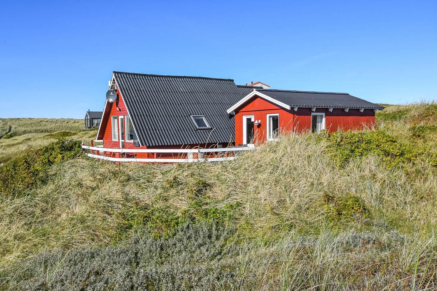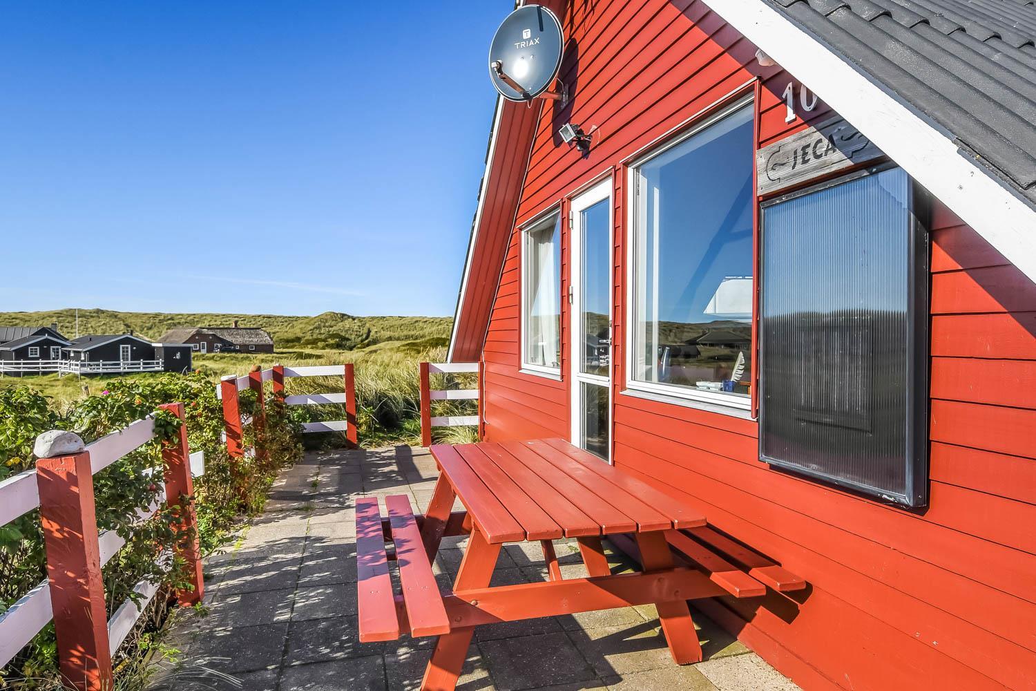 Auf einem hoch gelegenen Grundstück liegt dieses gepflegte Holzhaus. Das Haus ist schön eingerichtet, mit WLAN und Blick zu den Dünen und bloss etwa 200 m von der Nordsee entfernt.