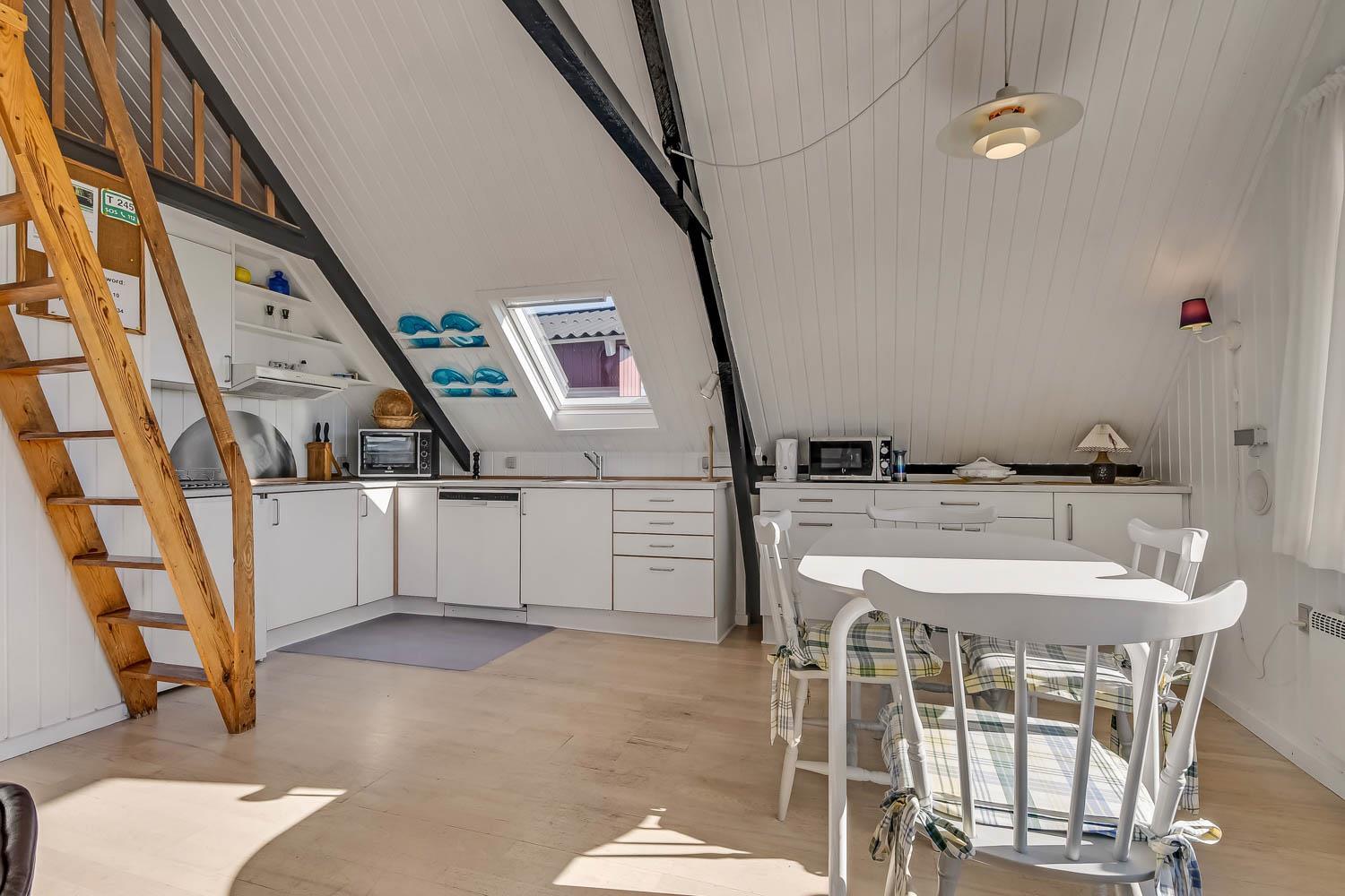 Von dem kombinierten Wohnraum/Küchenecke gibt es einen Ausgang zur schönen eingezäunten Terrasse mit Gartenmöbeln, Sonnenliegen und schönem Blick über die Dünen an der Nordsee. Dieses Ferienhaus hat eine einmalige Lage in schöner Umgebung und sobald Sie die Treppe zum Haus hochgelaufen sind, kann der Urlaub beginnen.