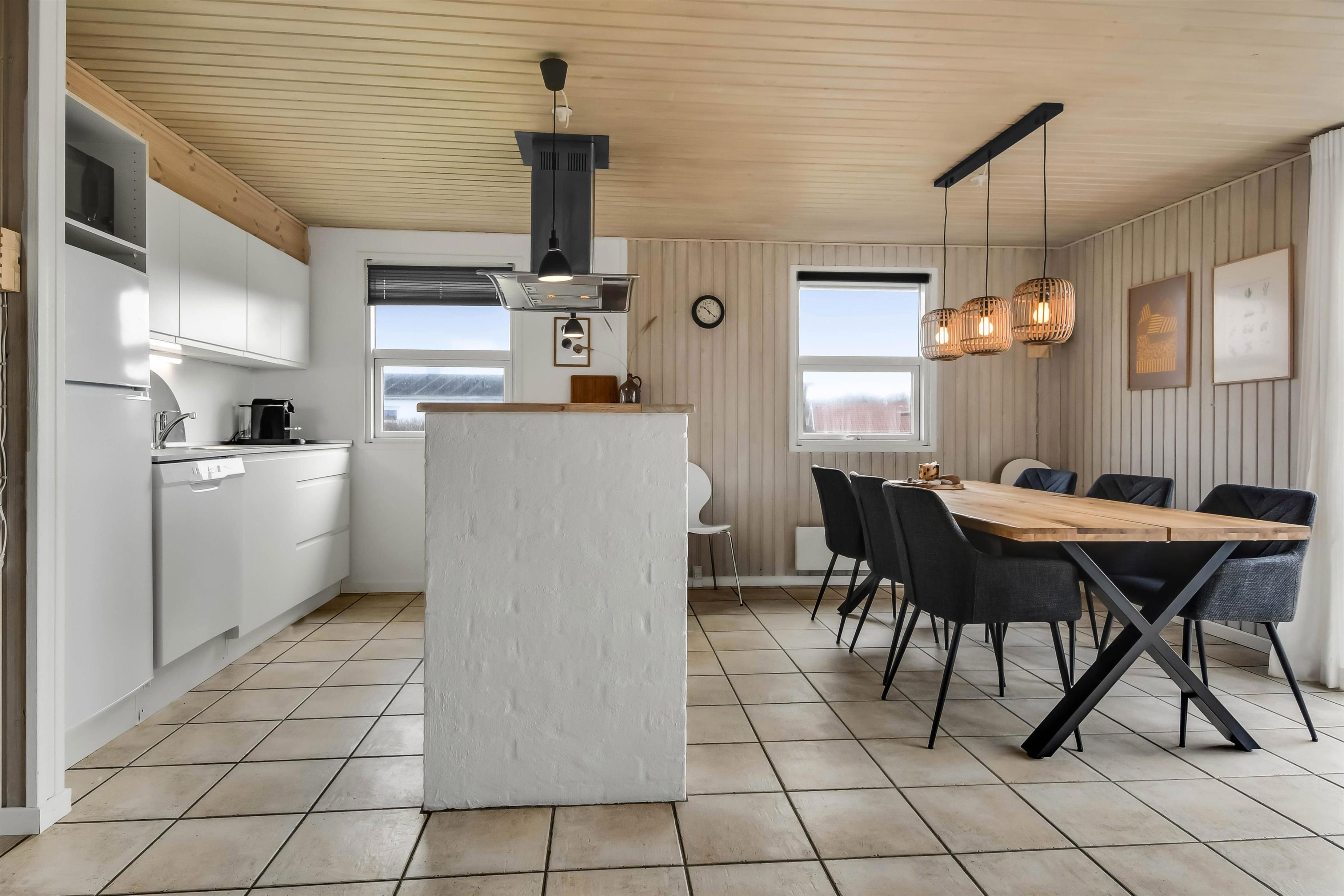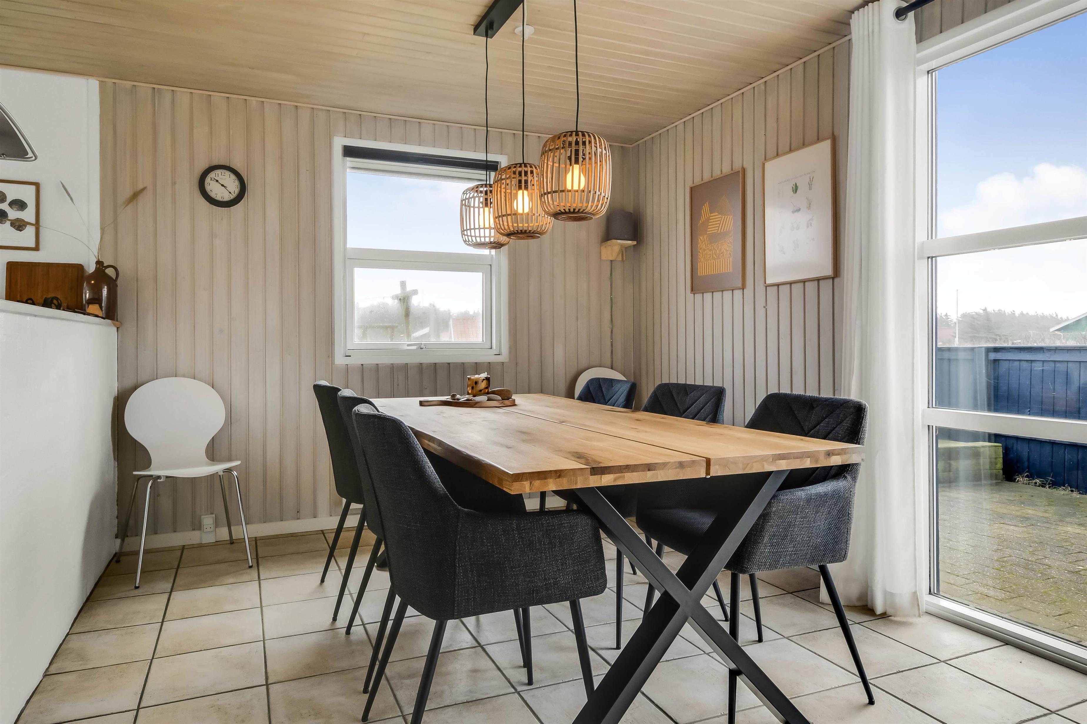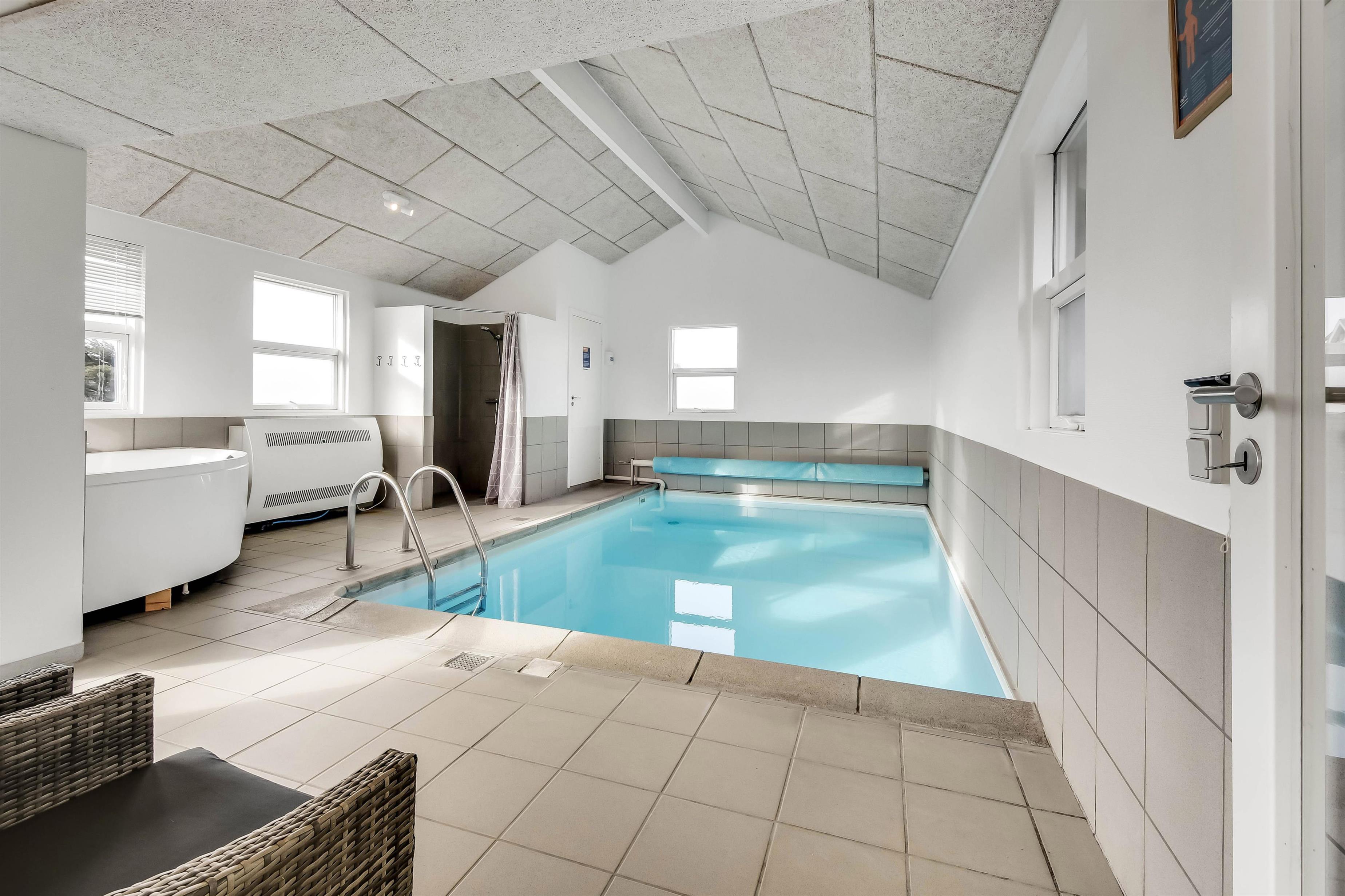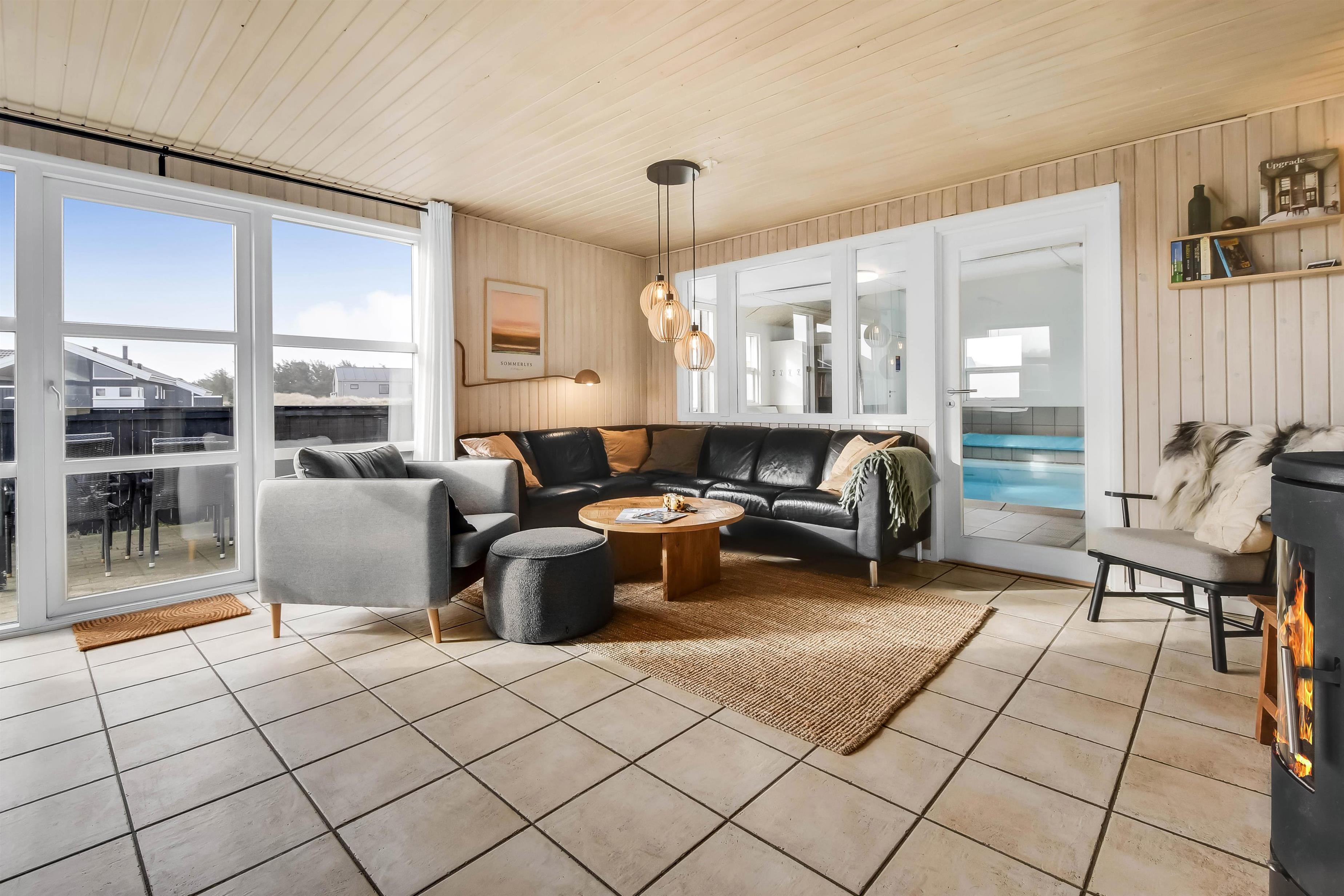 Das Haus liegt in der Dünenlandschaft bloß 200 m von der Nordsee entfernt auf einem ruhigen Weg. Es gibt eine schöne Terrasse mit Fliesen, Sonnenliegen, Grill und Gartenmöbeln. Der Lage des Hauses, bloß 200 m von der Nordsee entfernt, macht es einfach an den Strand zu kommen. Die Nordsee und der Strand bieten viele Aktivitäten, hier können Sie Drachen steigen lassen, in der Saison baden, angeln, wandern und vieles mehr. Etwa 600 m vom Haus entfernt liegt der Kaufmann, der in der Saison geöffnet hat. Hier können Sie Ihre Lebensmittel und Brötchen kaufen. Auf der anderen Seite liegt ein kleines Cafe, das auch in der Saison geöffnet hat. Die Gegend in und um Vejlby Klit ist sehr gut geeignet für Wanderungen und Fahrradtouren. Möchten Sie ein bisschen mehr, dann liegen Thyborøn und Lemvig eine kleine Autofahrt vom Haus entfernt. Hier finden Sie mehrere Geschäfte, Restaurants, Aktivitäten und Sehenswürdigkeiten. Ein sehr schönes, neu renoviertes Poolhaus mit gutem Platz für die Familie oder mehrere Paare, die zusammen den Urlaub verbringen möchten.