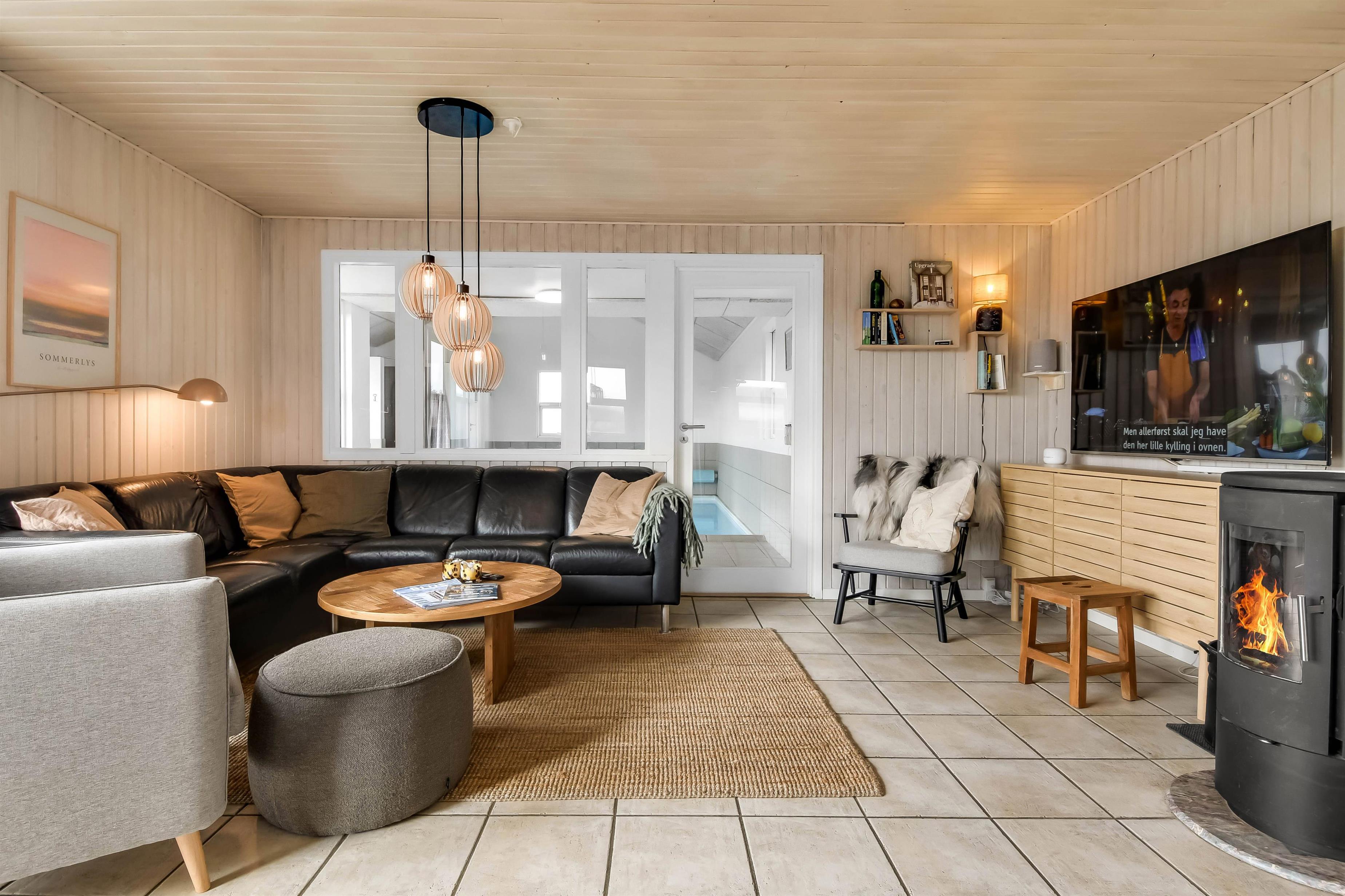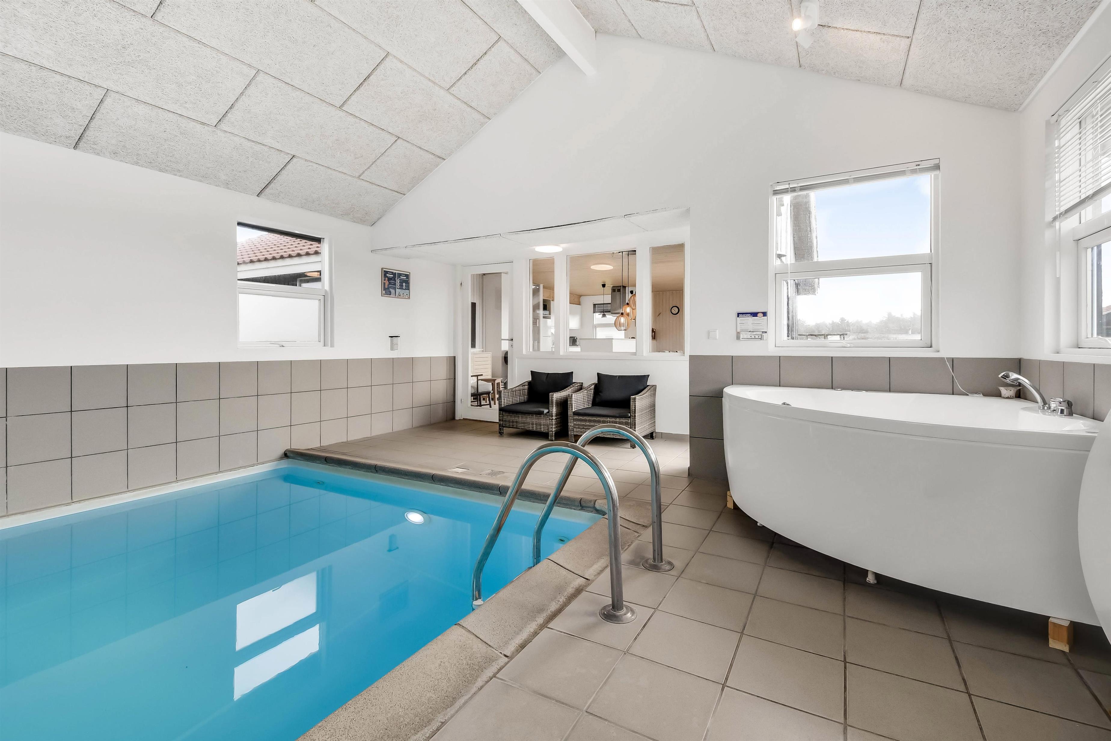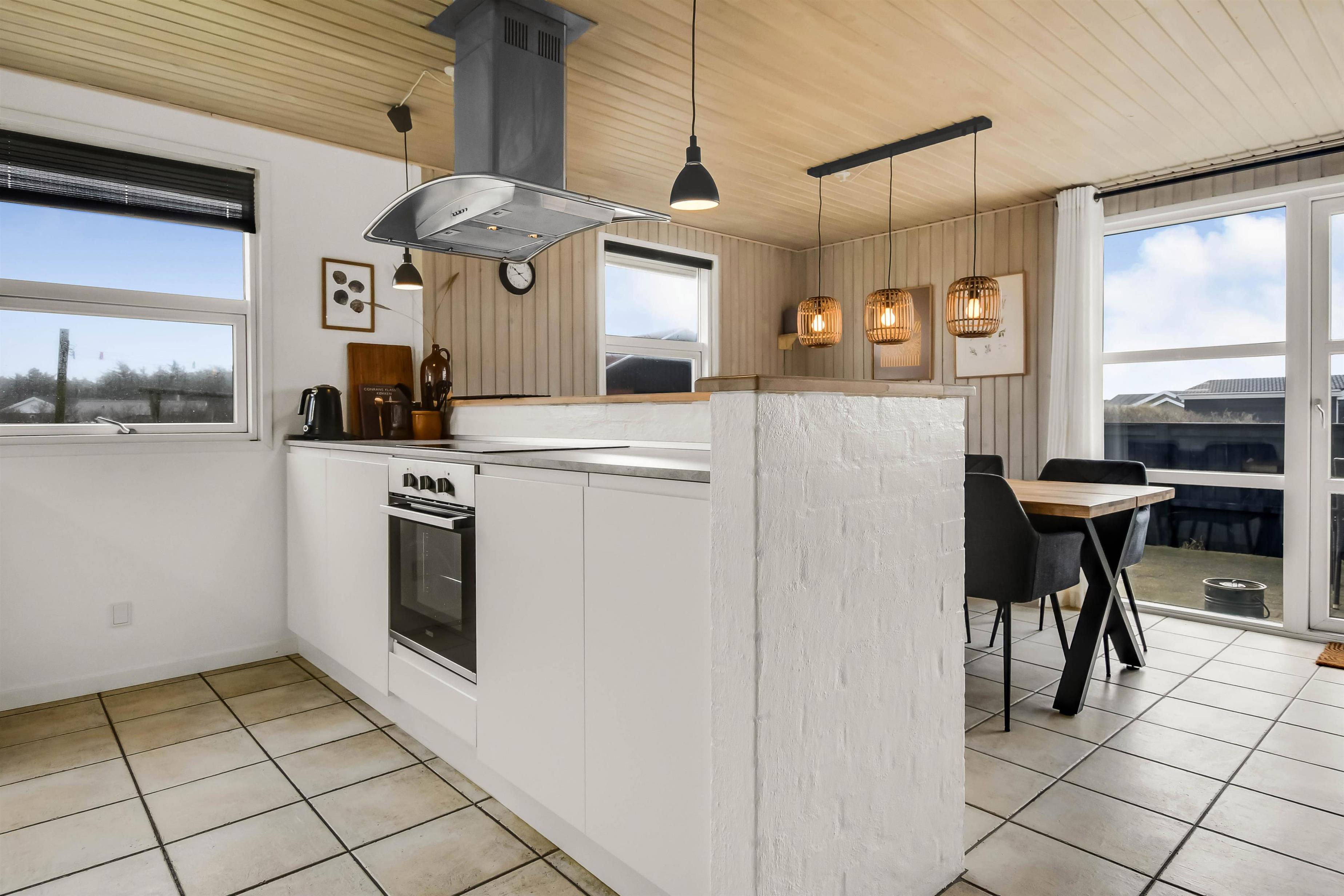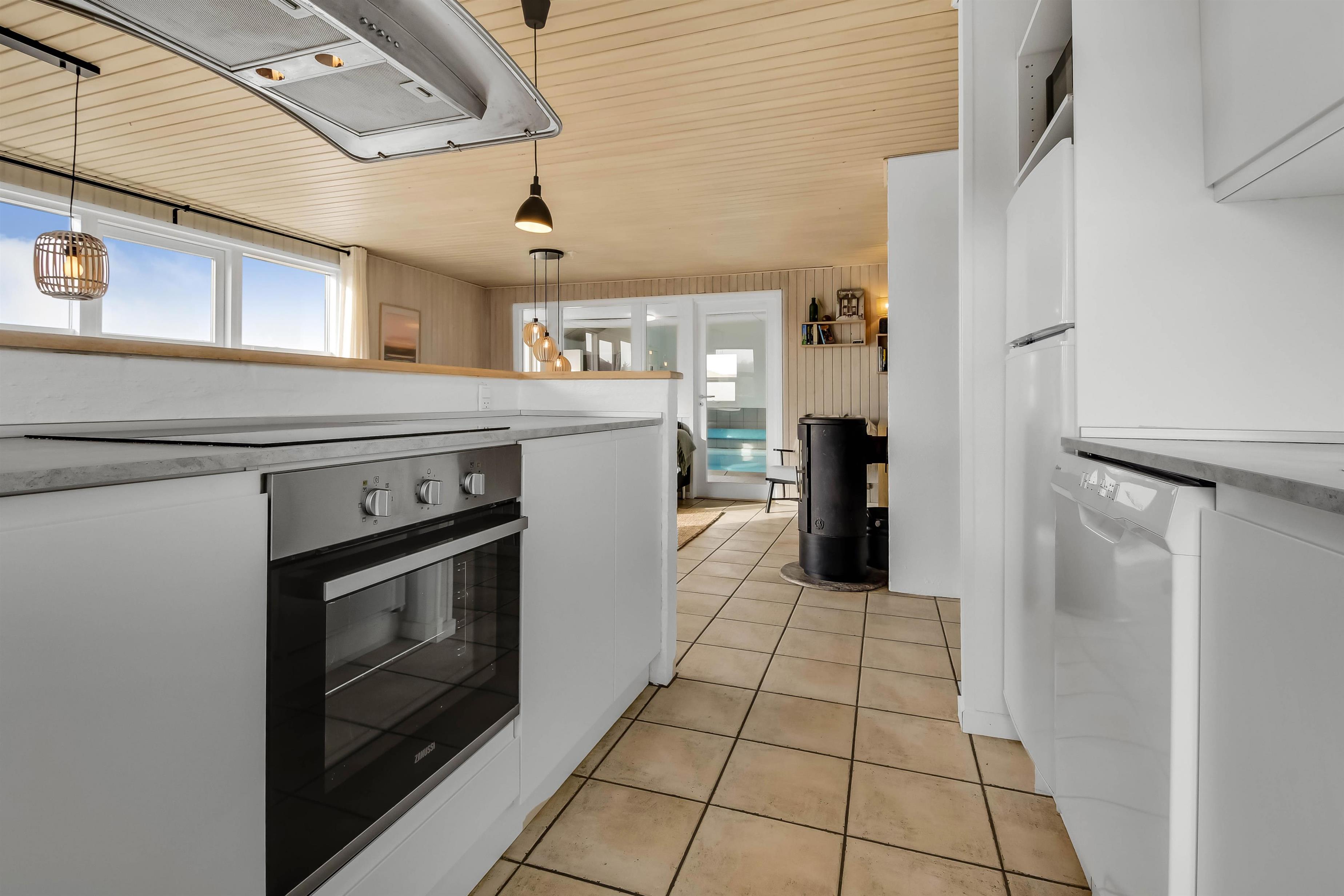 Dieses schönes Poolhaus ist hell und freundlich nach einer totalen Renovierung. Es gibt eine ganz neue Küche, die mit dem Wohnraum kombiniert ist; von hier haben Sie direkten Ausgang zu der schönen Südterrasse. Sie können dann direkt von der Küche Ihr Essen, u.a. auch für evtl. Gäste, auf der Terrasse servieren. Die Küche ist ganz neu und sehr gut ausgestattet mit Mikrowelle, Geschirrspüler, Kühl-/Gefrierschrank, separatem Gefrierschrank mit 50 l und einem Ceranfeld-Kochherd. Im Wohnraum gibt es einen großen Smart-TV wo Sie dänische und deutsche Programmen sehen können. Es gibt auch die Möglichkeit Radio / TV / Apps zu streamen, wofür Sie selber ein Abonnement haben. Im Wohnraum gibt es auch ein gemütliche Couchgruppe von der Sie einen Blick zum Poolraum haben. Ausserdem gibt es einen schönen Kaminofen, der für eine schöne Wärme auch an kalten Tagen sorgt. Der Pool ist 5,00 x 3,20 x 1,35 Meter und im gleichem Raum gibt es auch einen Whirlpool und eine Dusche. Auch vom Poolraum haben Sie einen Zugang zur Terrasse. Auf dem anderen Ende vom Haus gibt es ein schönes neu renoviertes Badezimmer mit Dusche, Toilette, Sauna und Waschbecken. Hier gibt es auch Waschmaschine und Trockner. Es gibt 4 Schlafräume: 1DB + 1DB 0 1DB + 1DB. Für die kleinsten Gästen gibt es Kinderstuhl. 2 Hunde sind erlaubt. Nichtraucher-Haus. Kaution in der Wintersaison DKK 4.500 und in der Sommersaison DKK 2.200.
