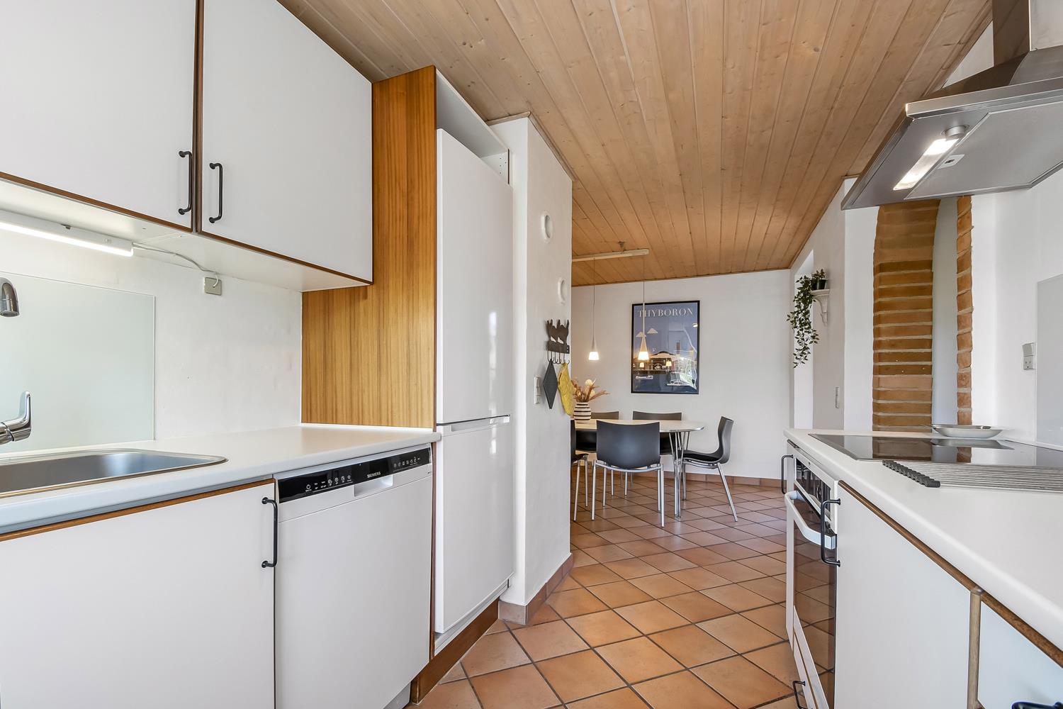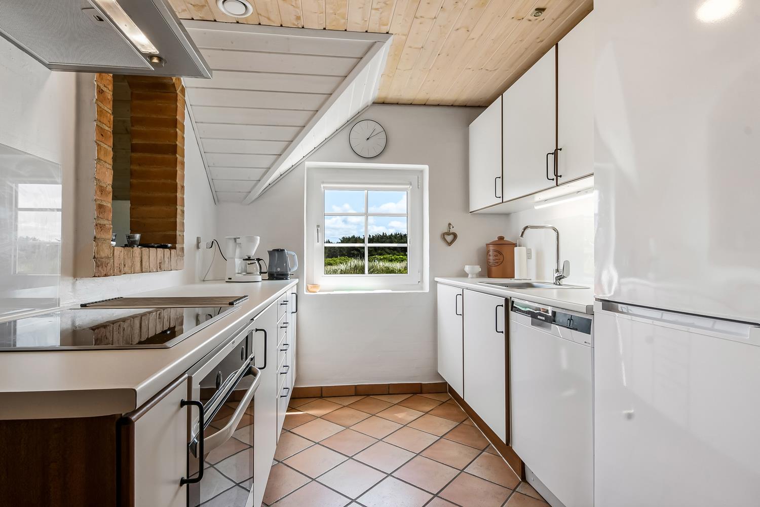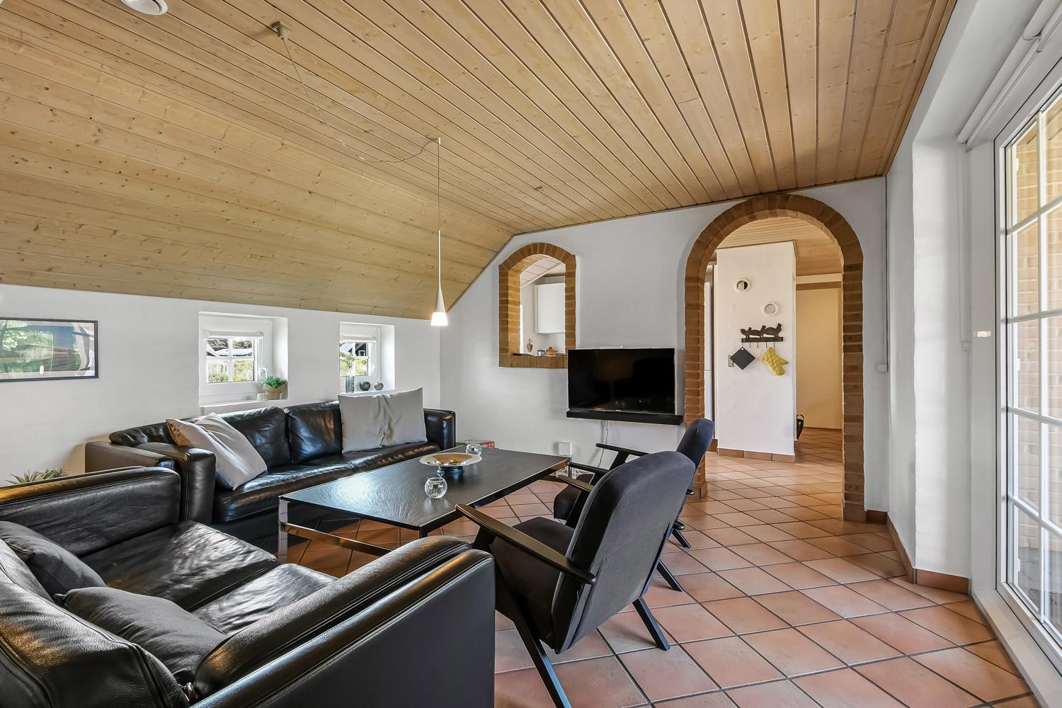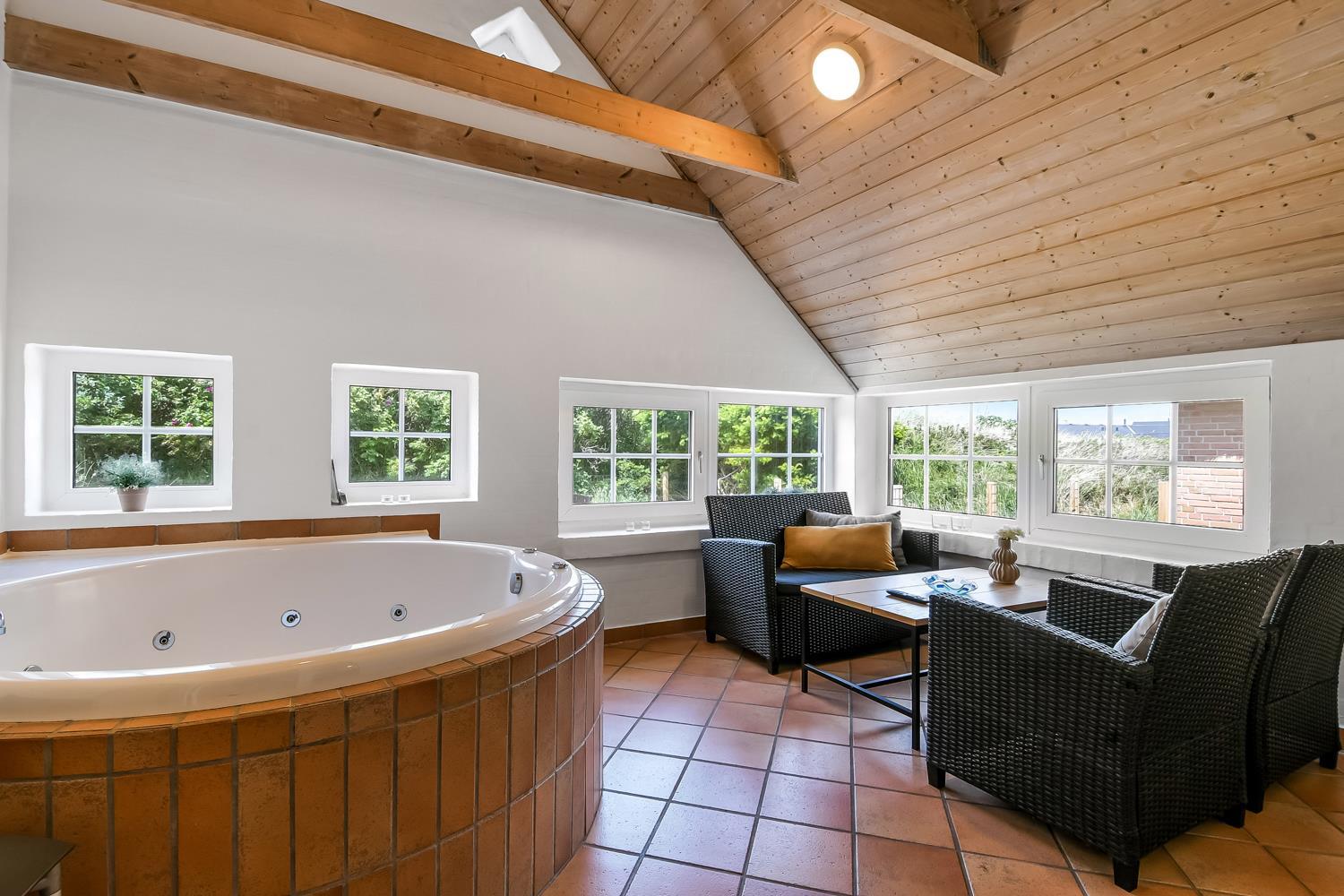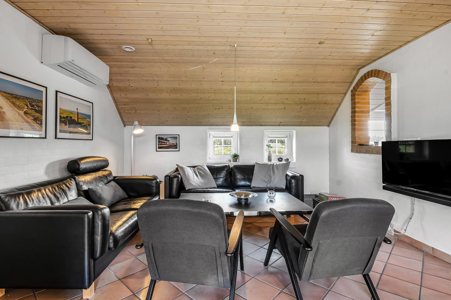 Wenn Sie mit dem Auto den Kiesweg erreichen, werden Sie sehen, dass das Haus und seine Lage etwas ganz Besonderes sind. Nach dem Einbiegen auf das Grundstück parkt das Auto auf dem schön angelegten Hofplatz und der Urlaub beginnt. Ein ansprechender Eingangsbereich mit Waschbecken, Waschmaschine und Trockner heißt Sie willkommen und führt direkt in die neue und moderne Küche. Diese hat alles an Geschirr und Küchengeräten. Die schicke Küche ist zudem mit Mikrowelle, Einbauherd mit Cerankochfeld, Dunstabzugshaube, Kühlschrank mit Gefrierfach und Geschirrspüler ausgestattet. Über eine Durchreiche in einer gemauerten Wand hält man stets Kontakt zum Wohnzimmer. Neben der Küche befindet sich der Esstisch für 8 Personen mit ausreichend Platz für die ganze, hungrige Familie. Das Wohnzimmer hat schöne Ledrmöbeln und einen wandmontierten Flachbildschirm-TV mit dänischem und deutschem Programm. Ein schöner Kaminofen und eine stromsparende Wärmepumpe sorgen dafür, dass Sie das Haus aufwärmen können und die Wärme an kalten Tagen halten können; die moderne Genvexanlage sorgt im Haus für einen Luftaustausch bis zu 92%, schafft ein fantastisches Raumklima und hilft , bei der Stromrechnung zu sparen. Vier große Schlafzimmer mit Doppelbetten (1 DB, 1 DB, 1 DB, 1 DB). Das Badezimmer verfügt über eine Dusche, Toilette, Waschbecken und Fliesenboden mit Fußbodenheizung. Schöner und geräumiger Spa-Bereich mit großem Whirlpool und Zugang zu einem extra Badezimmer mit Dusche, Toilette, Waschbecken und Zugang zur Sauna. Im Wellnessbereich gibt es bequeme Sitzmöglichkeiten sowie einen zusätzlichen Fernseher. Das gesamte Haus hat Fliesenböden mit Fußbodenheizung gegen kalte Füße und ist somit leicht zu reinigen. Nichtraucherhaus. 2 Haustiere erlaubt.