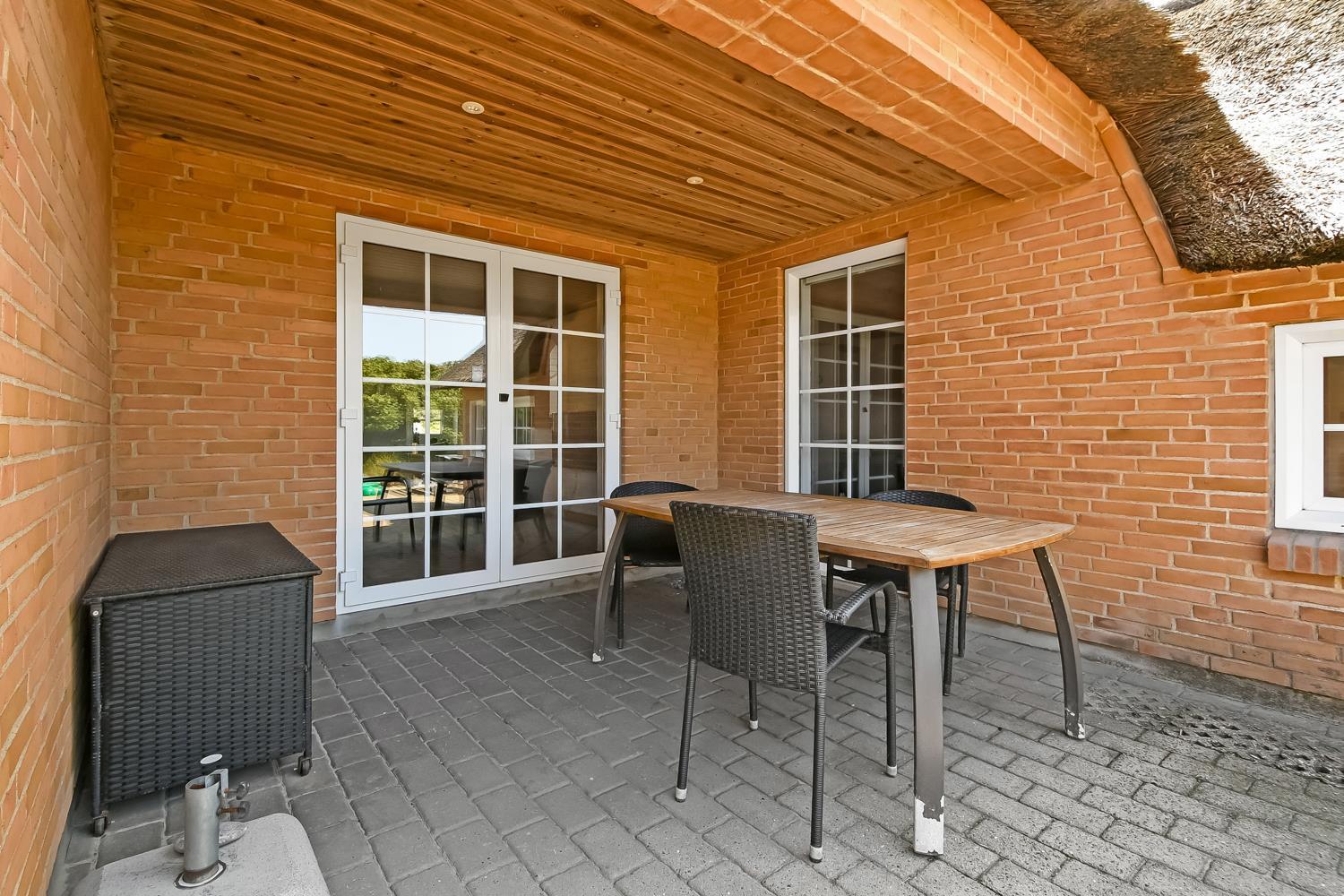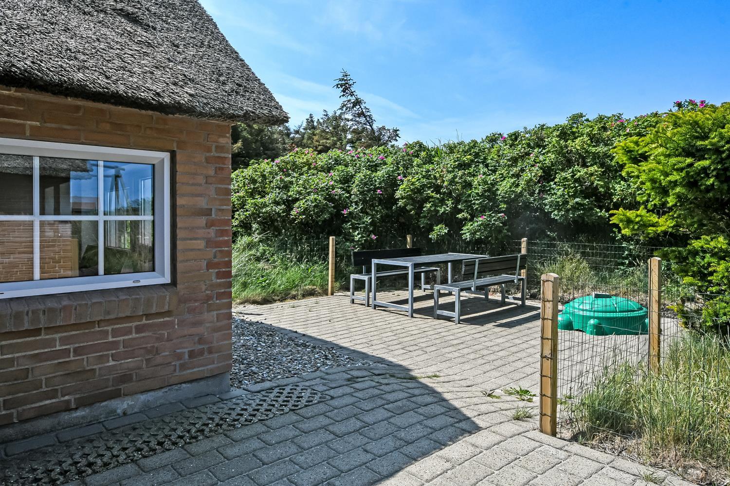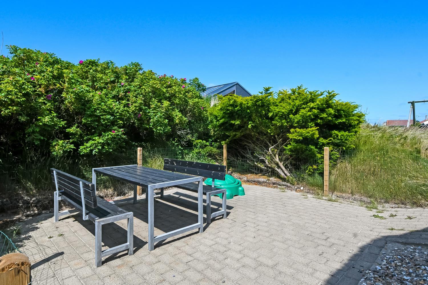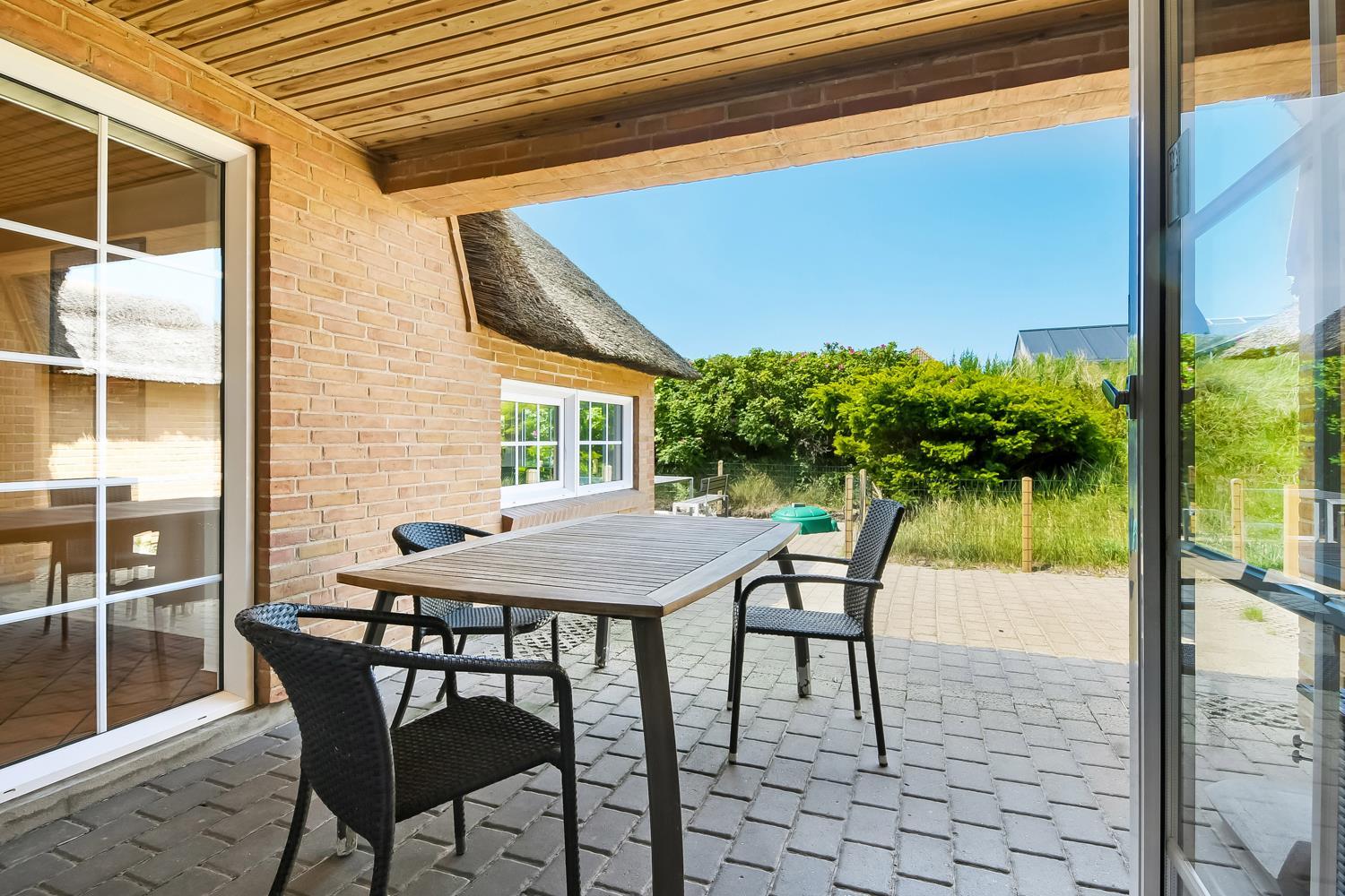 Das Ferienhaus befindet sich auf einem schönen, circa 1.200 m² großen Grundstück. Vom Wohnzimmer gelangt man auf eine fantastische, teilweise überdachte Terrasse mit Gartenmöbeln, Sonnenliegen, Kissen, Sonnenschirm und Grill. Die Terrassenanlage schützt auch an windigen Tagen. Genießen Sie einen Grillabend bei jedem Wetter oder die Sonne und die Lage. Das Haus hat auch eine schöne Morgenterrasse, wo Sie Ihren Morgenkaffee trinken können. Das offenes Naturgrundstück, nur 200 m von der Nordsee entfernt, eröffnet viele Möglichkeiten. Halten Sie sich fit und erkunden Sie die Umgebung. Dieses ganz besondere und sehr charmante Ferienhaus bietet zu jeder Jahreszeit ein einzigartiges Urlaubserlebnis der Sonderklasse.