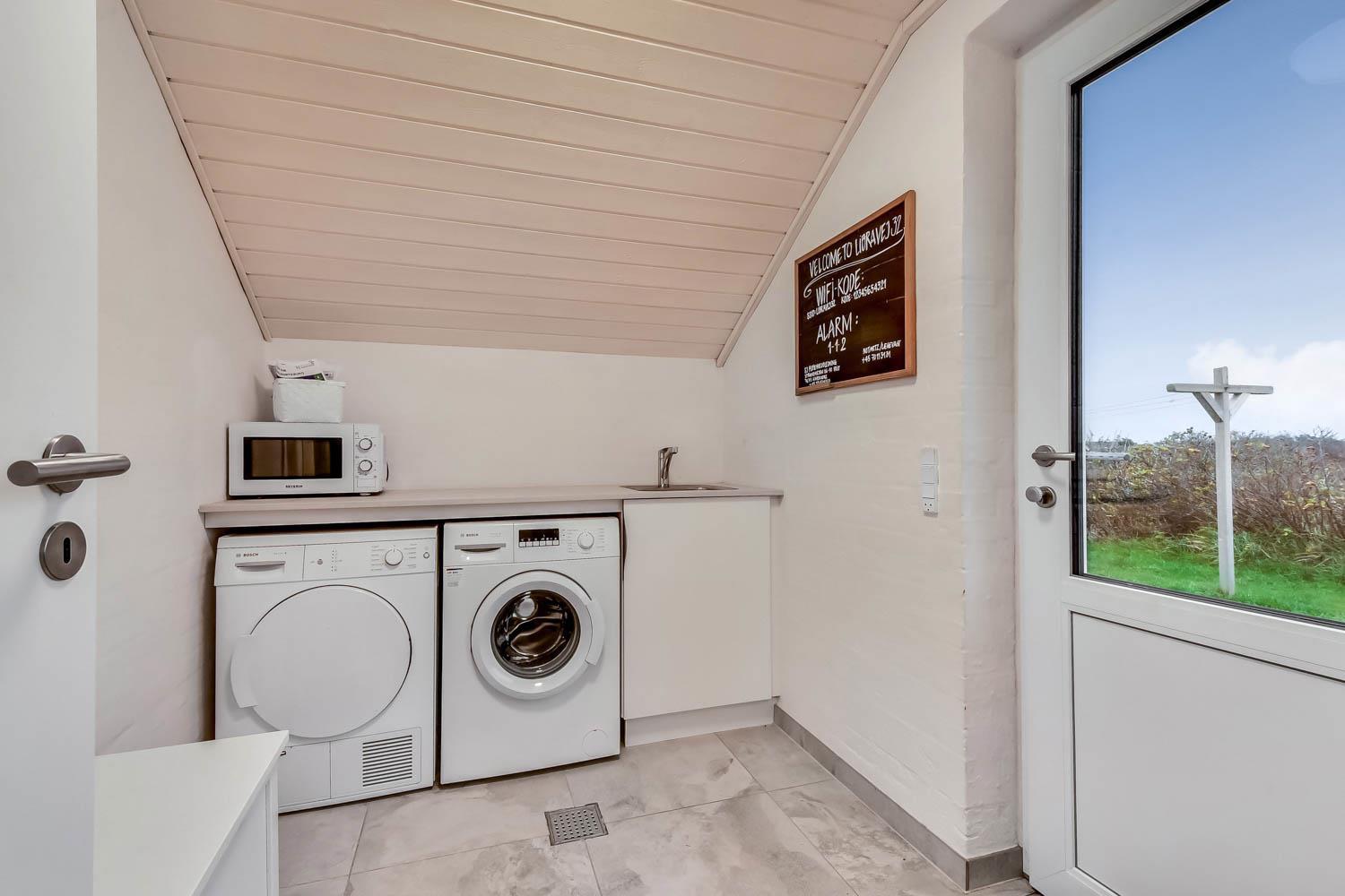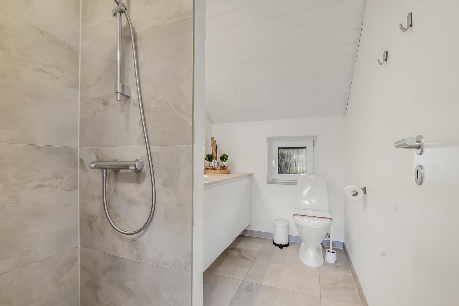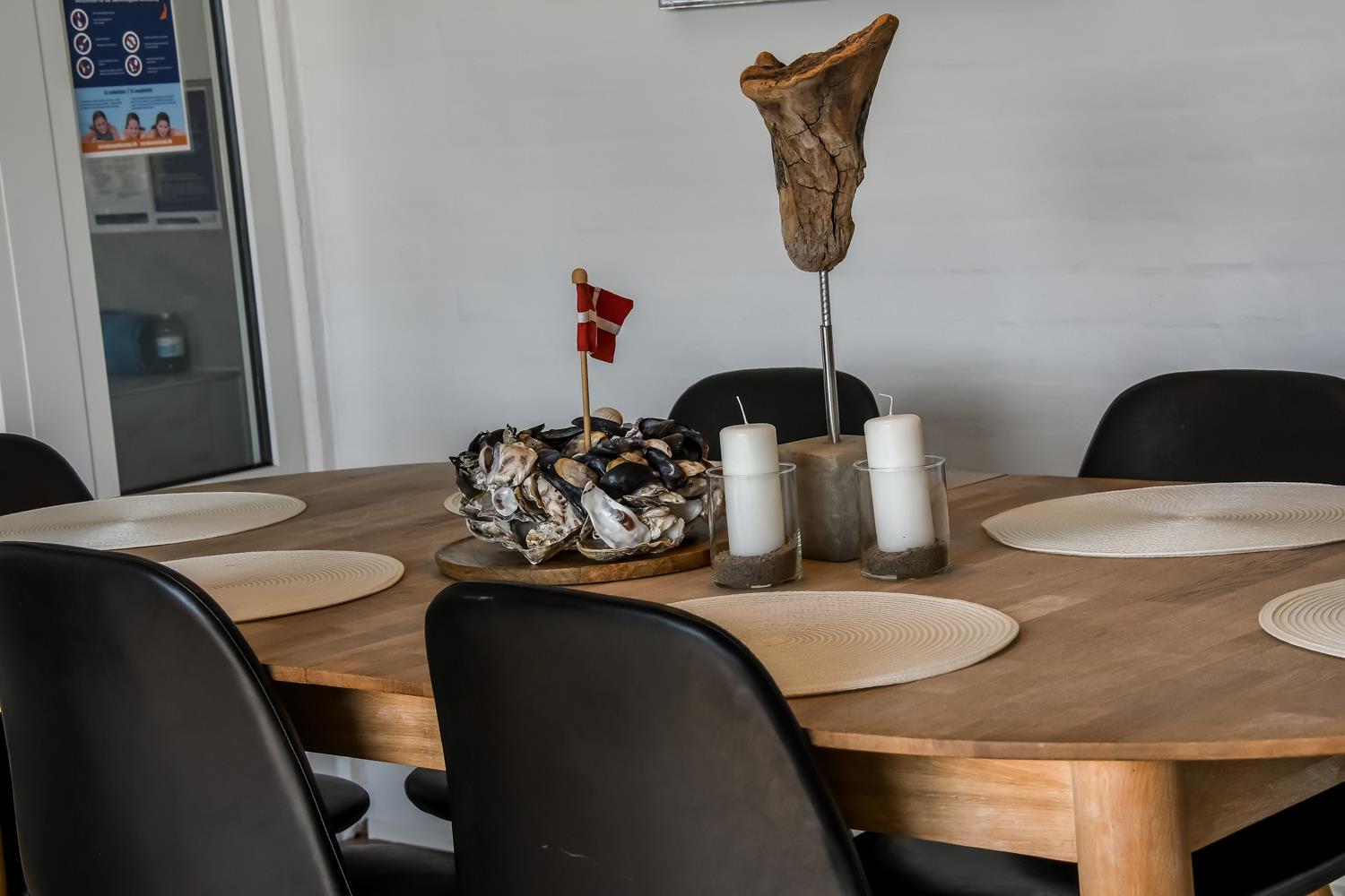 Das ca. 140 m² große Haus überzeugt mit einem modernen, hellen Einrichtungsstil und durchdachten Details. Der großzügige Eingangsbereich ist mit Waschmaschine, Trockner und Hauswirtschaftsraum ausgestattet. Das Herzstück ist der offene Wohnbereich mit hochwertigen Ledermöbeln, Essplatz und Smart-TV mit dänischen und deutschen Sendern sowie Streamingmöglichkeiten.