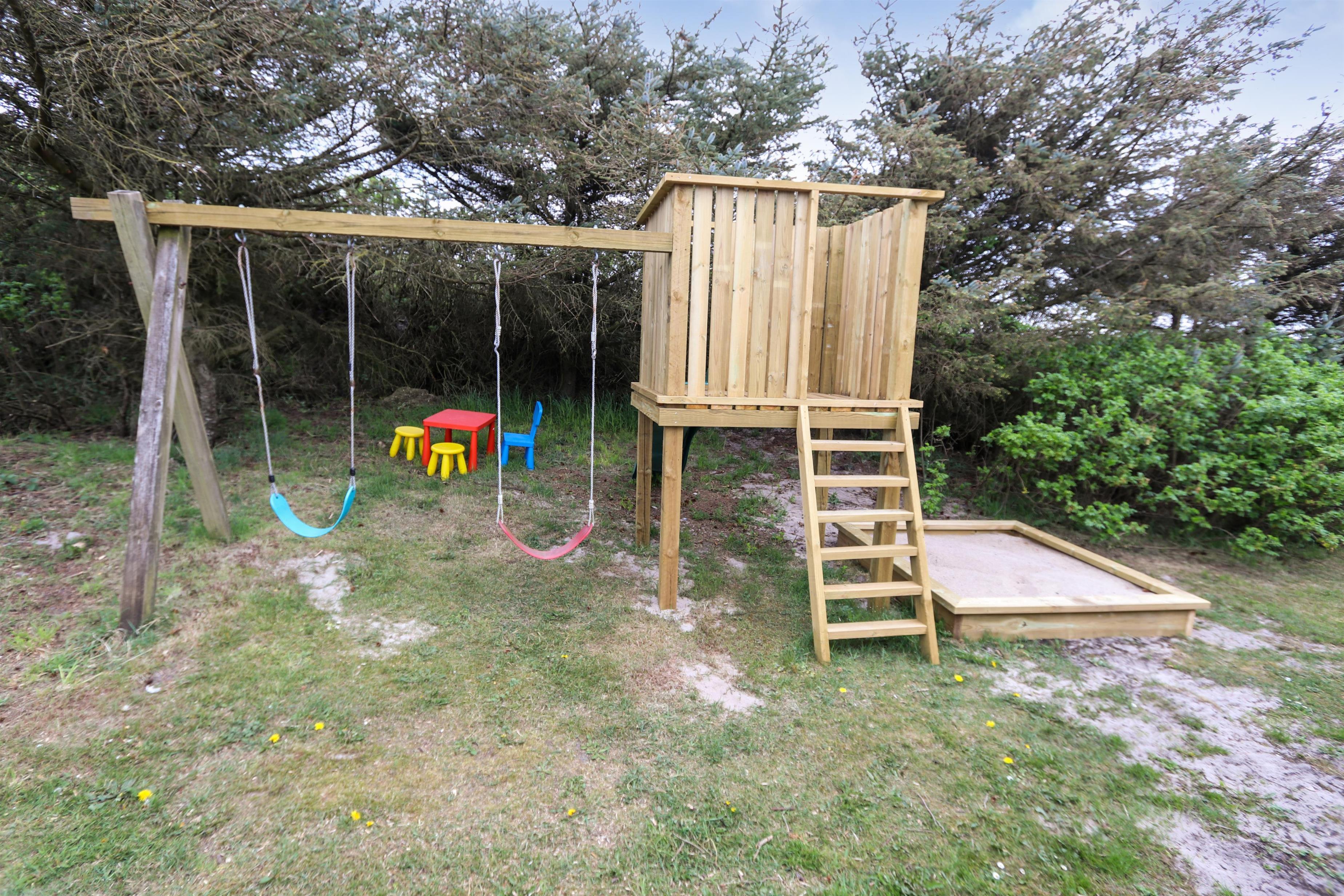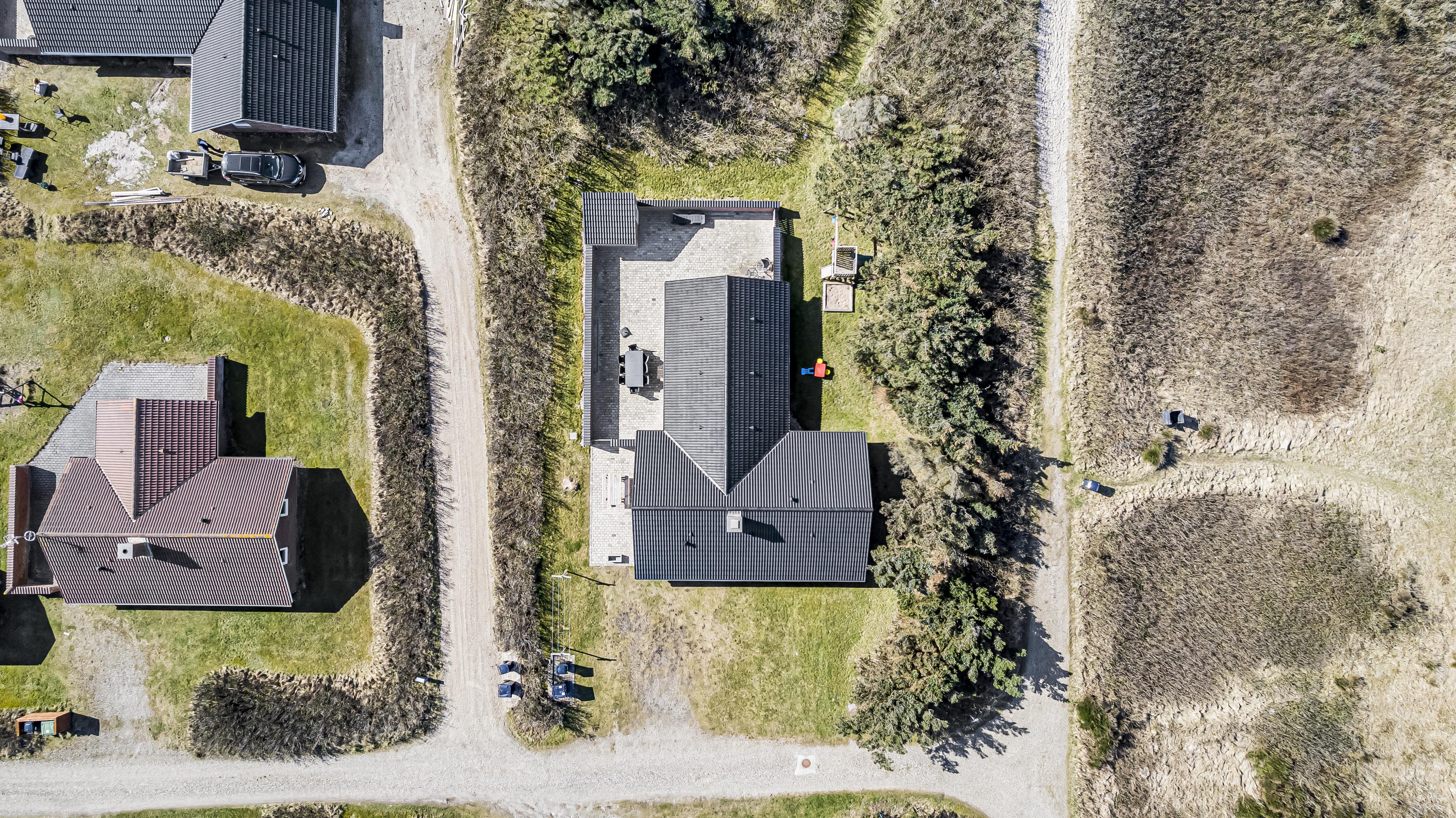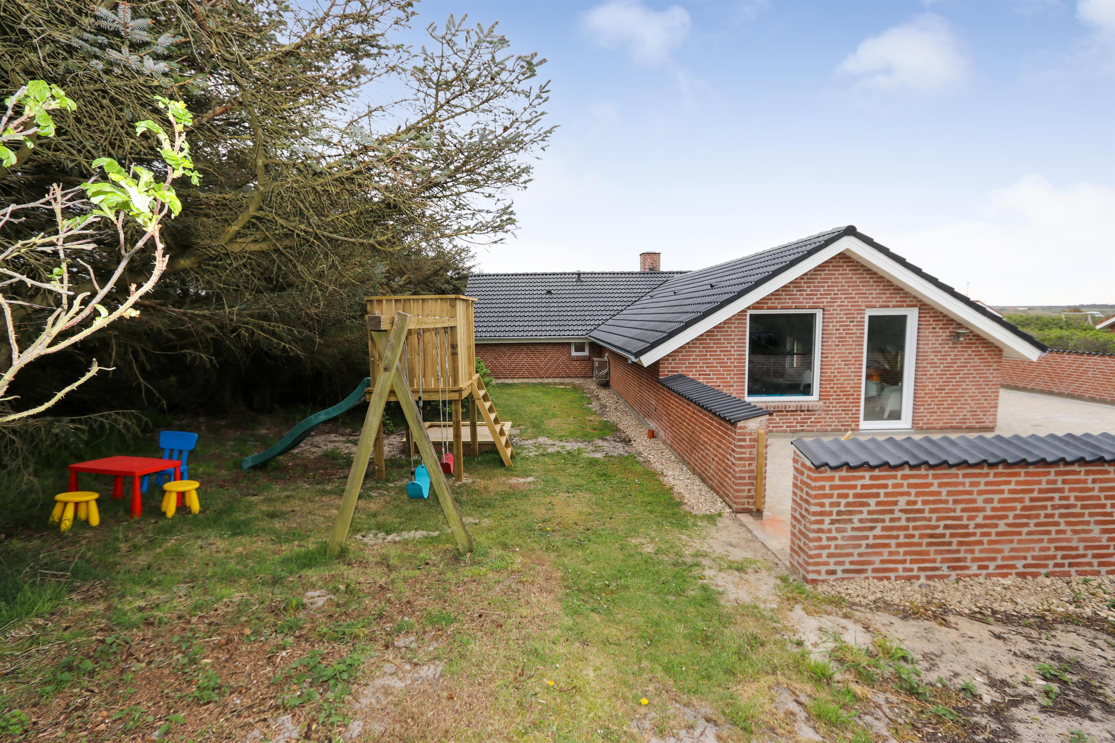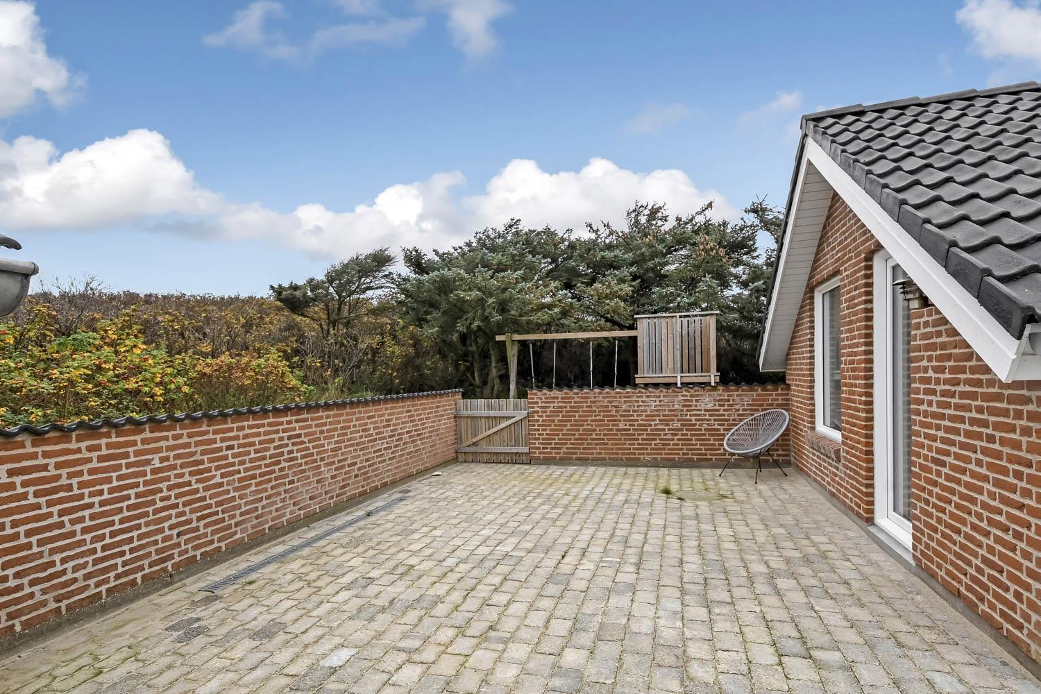Das Haus befindet sich auf einem 1.407 m² großen Naturgrundstück am Ende einer Sackgasse – direkt an den Dünen. Vom Garten aus führt ein privater Pfad zum Strand. Eine große, eingezäunte Terrasse mit modernen Gartenmöbeln, Liegestühlen und Gasgrill lädt zum Entspannen ein – perfekt für Familien mit Kindern oder Hund. Für die Kleinen gibt es Schaukeln, Sandkasten und Klettergerüst.