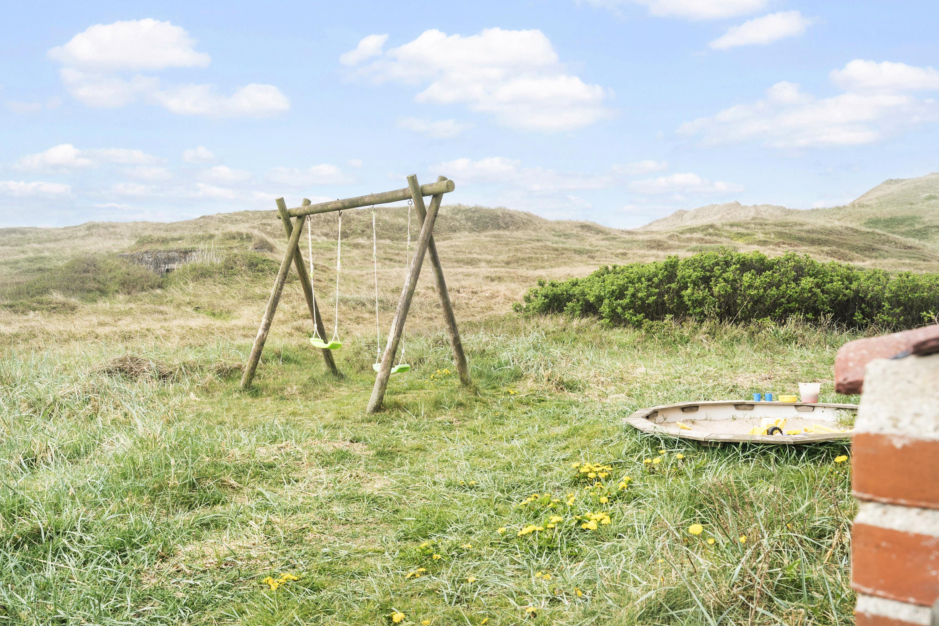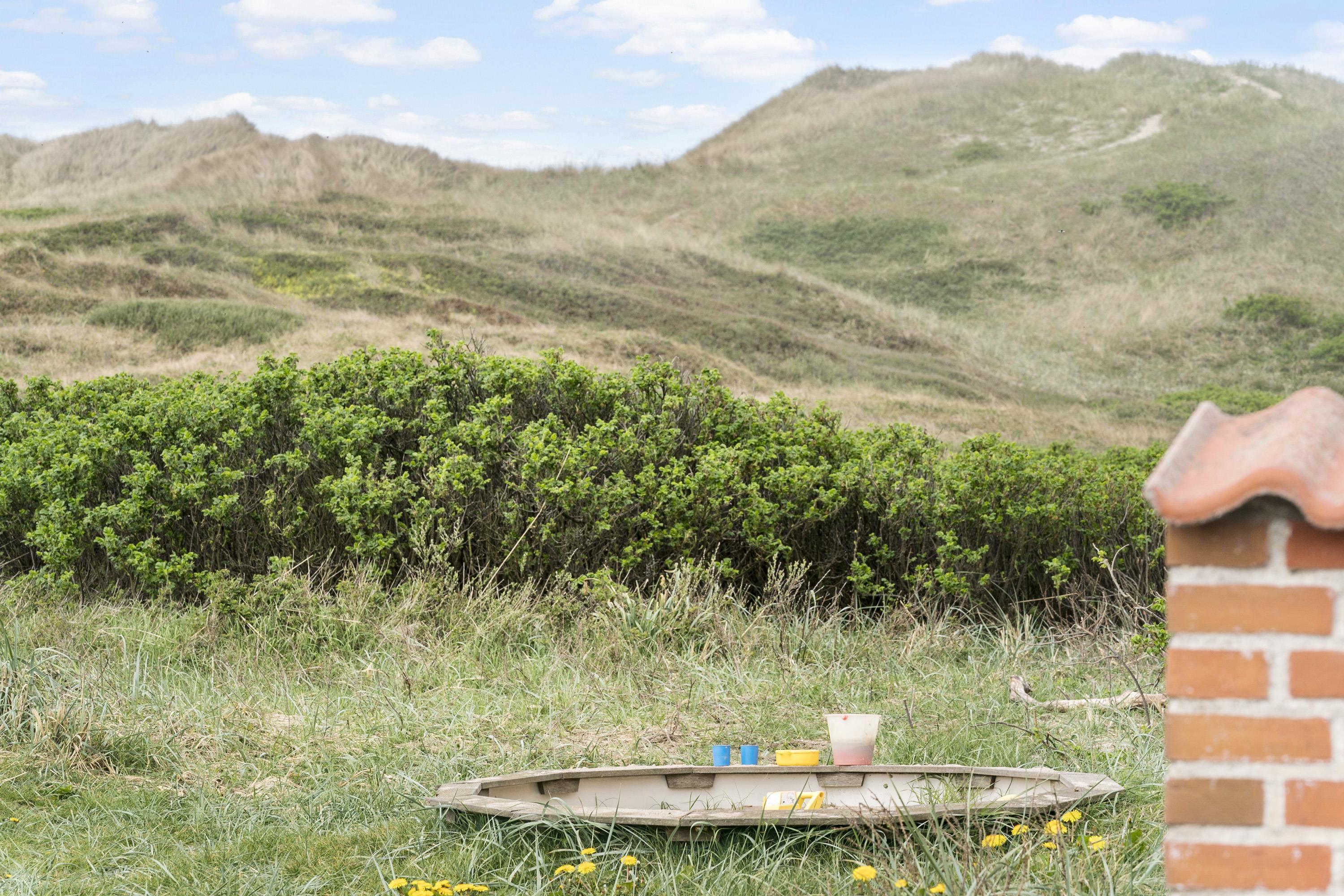 Vom Haus hat man Zugang zu einer großen, geschlossenen und sonnigen Terrasse mit Gartenmöbeln und Sonnenliegen. Es gibt einen Grill für gemeinsame Sommerabende im Freien. Vom Haus und von der Terrasse hat man einen tollen Blick auf die Landschaft und die Dünen. Für Kinder stehen Sandkasten und Schaukeln zur Verfügung. Das Haus liegt nur 130 m von der Nordsee und 400 m von den Einkaufsmöglichkeiten und einem Restaurant entfernt.
