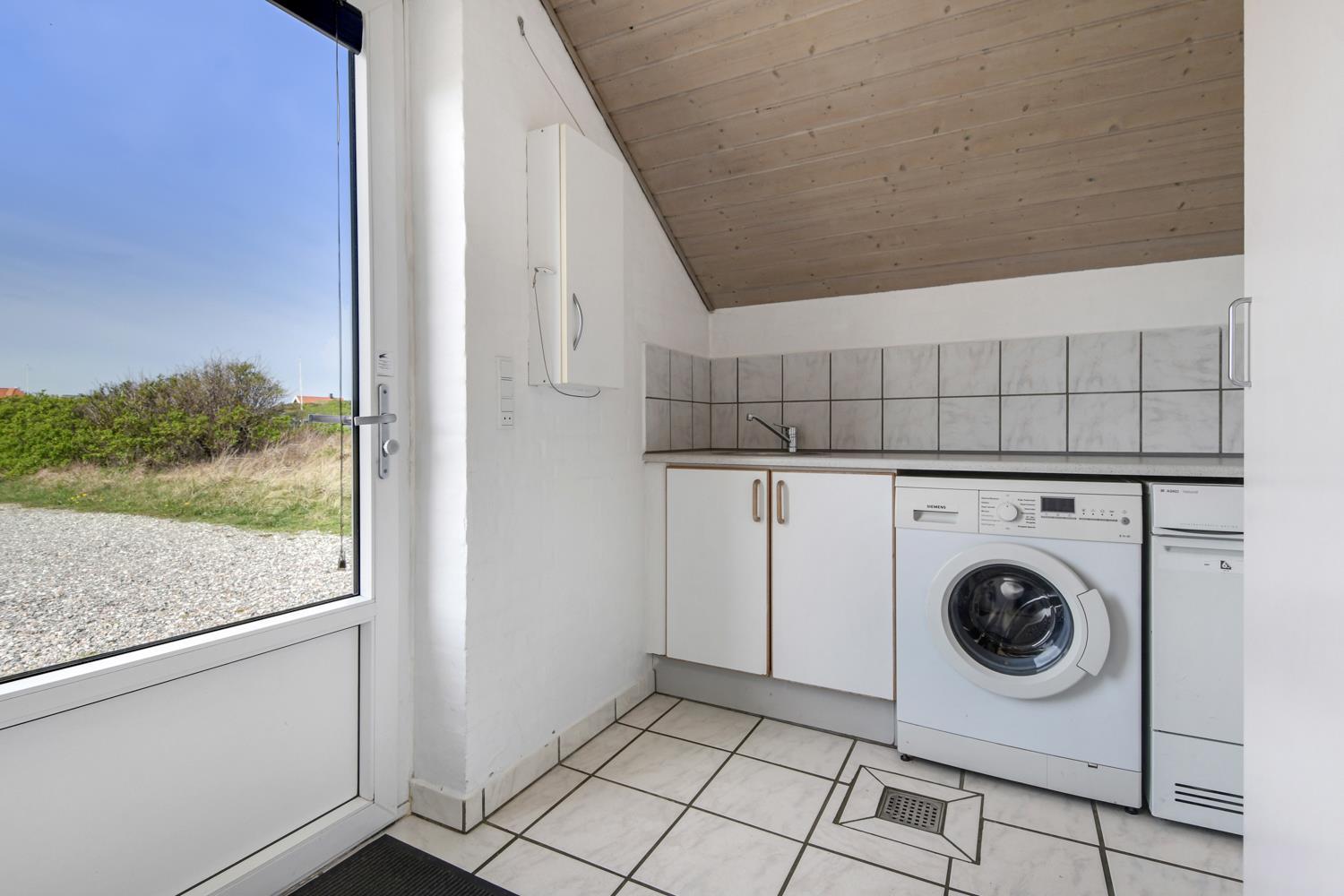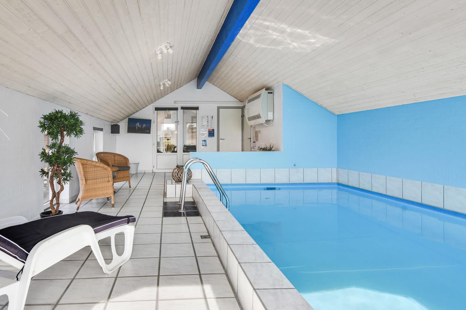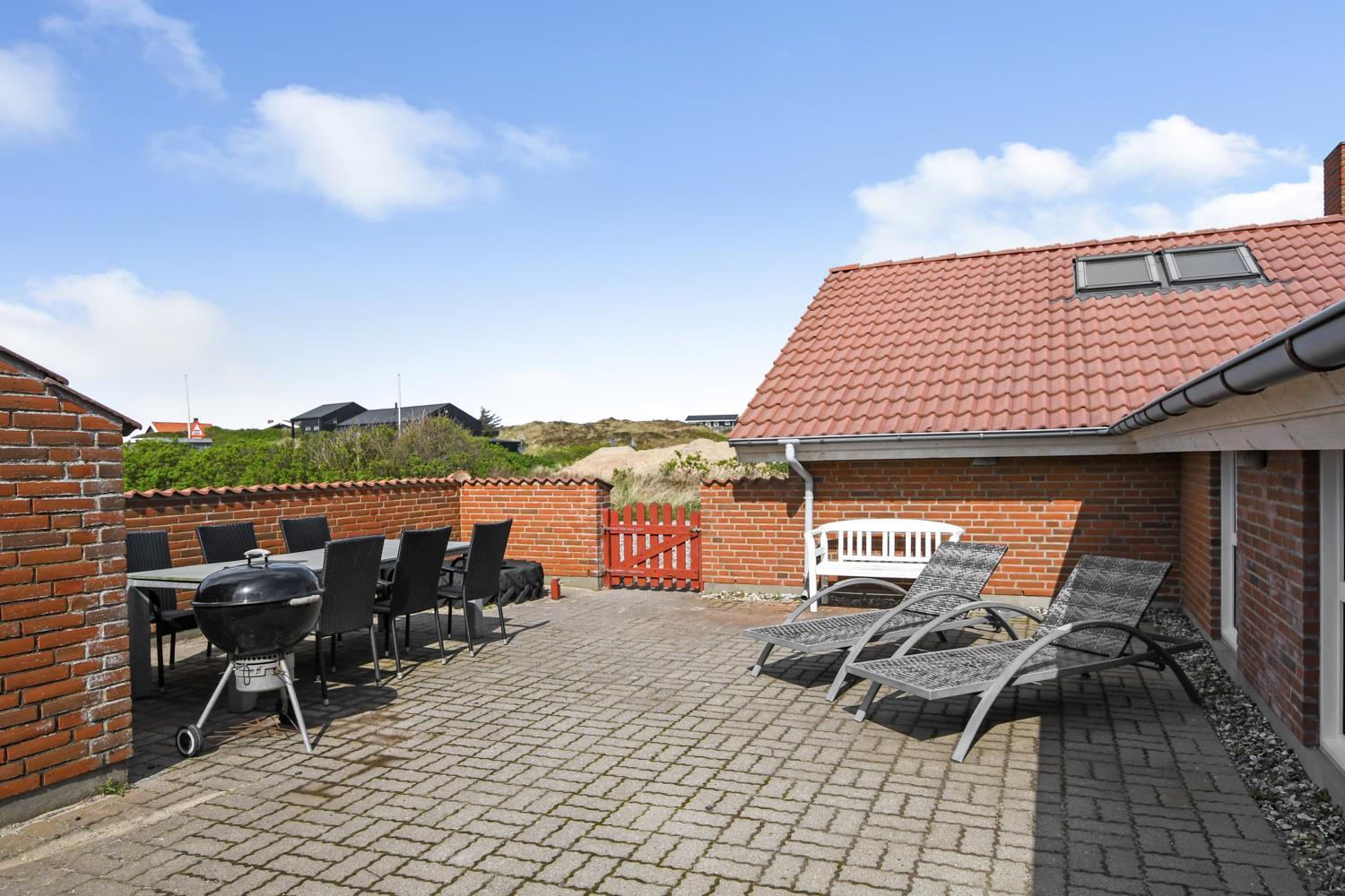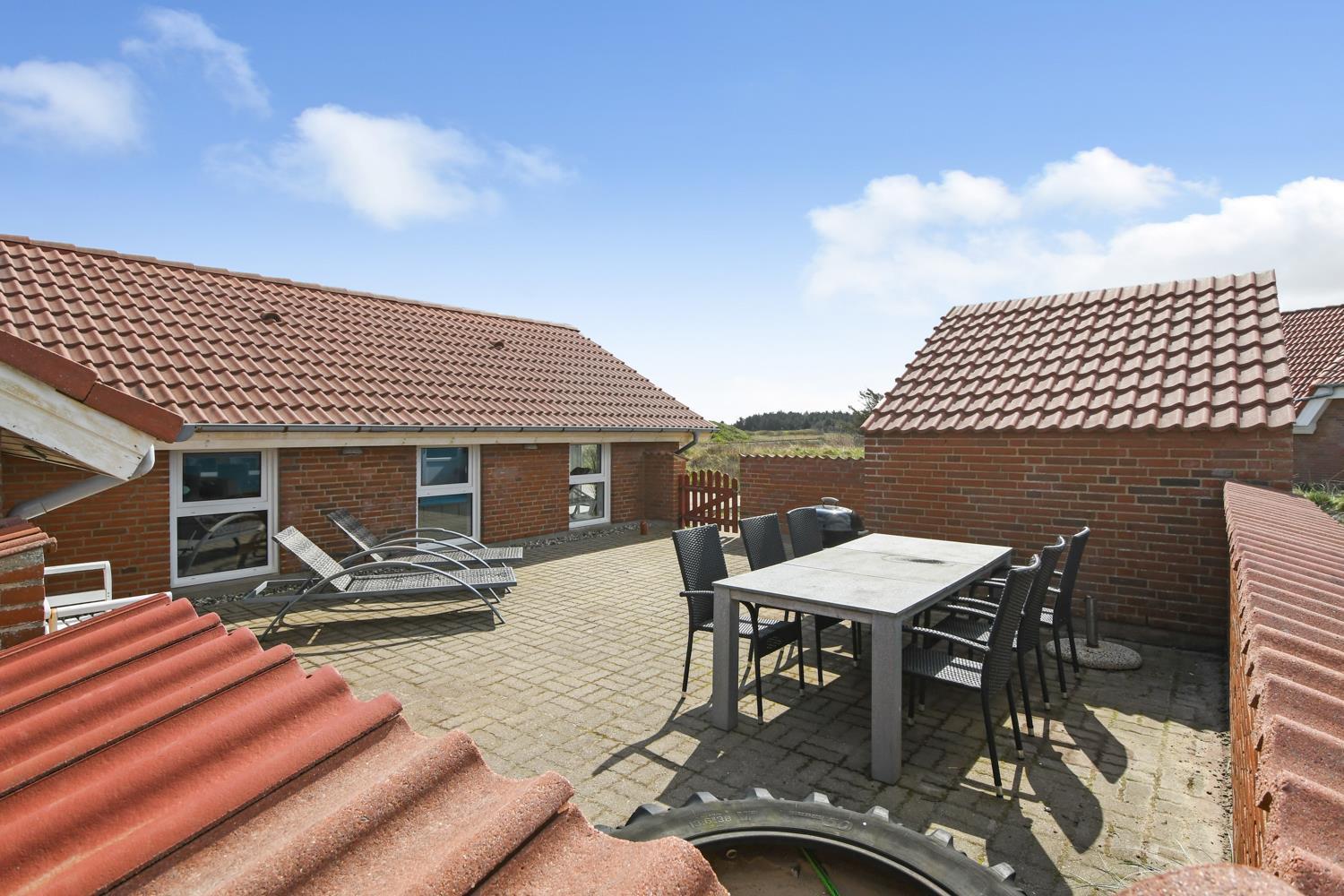 Das Poolhaus liegt auf einem Naturgrundstück dicht an der Nordsee. Es gibt eine 16 m² Westterrasse und eine eingezäunte 45 m² Terrasse ausgestattet mit Gartenmöbeln, Sonnenliegen und Grill. Für die Kinder stehen Sandkasten und Schaukeln zur Verfügung. Für einen Ausflug empfiehlt sich eine Fahrt in die Städte Lemvig oder Thyborøn, beide mit guten Einkaufsmöglichkeiten. In Lemvig gibt es außerdem einige Museen, in Thyborøn das Küstencenter, das Jütland Aquarium und das Schneckenhaus, die alle einen Besuch wert sind.