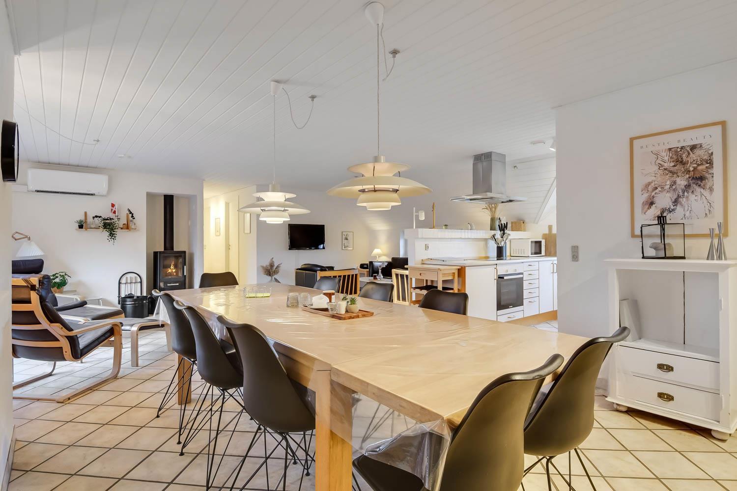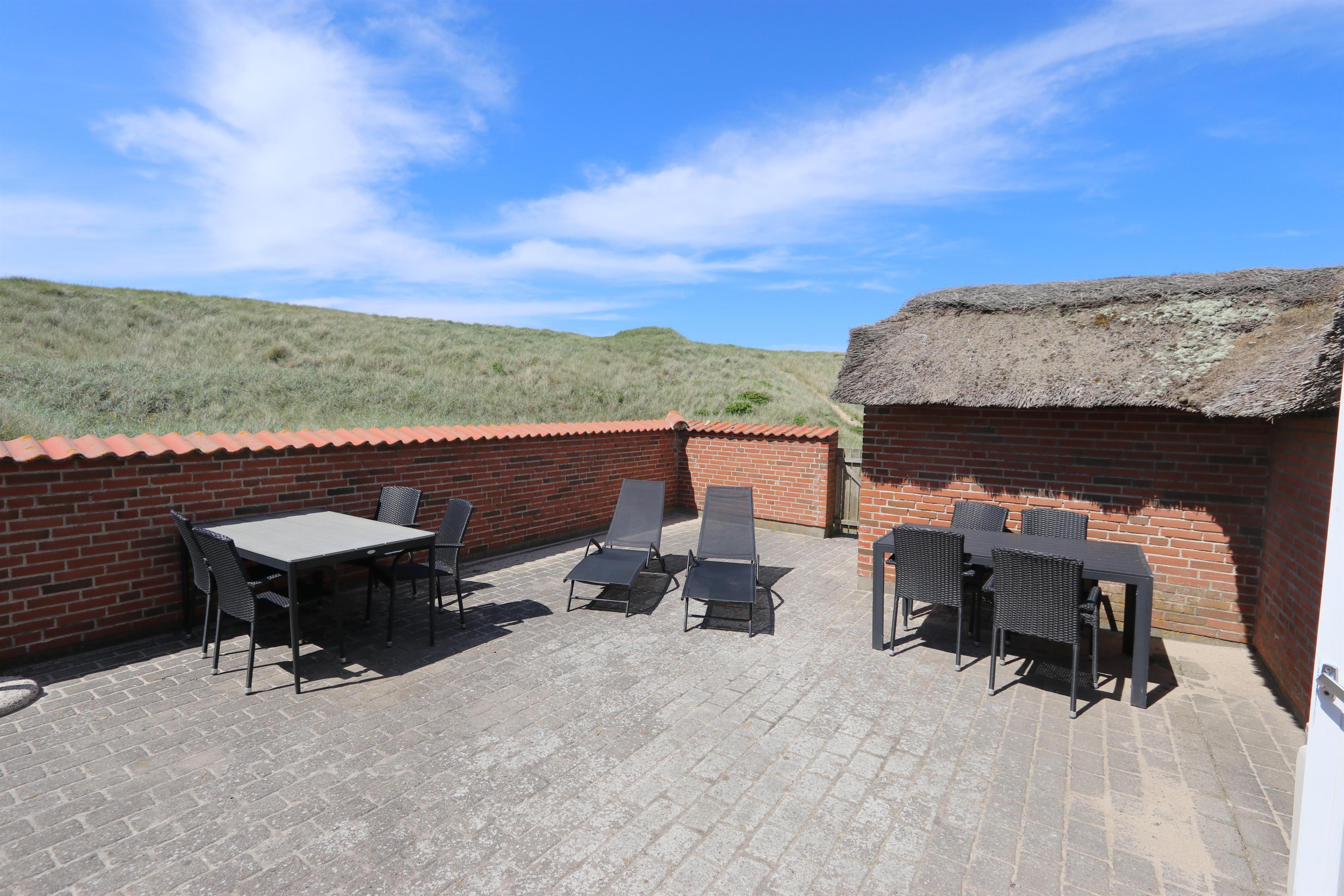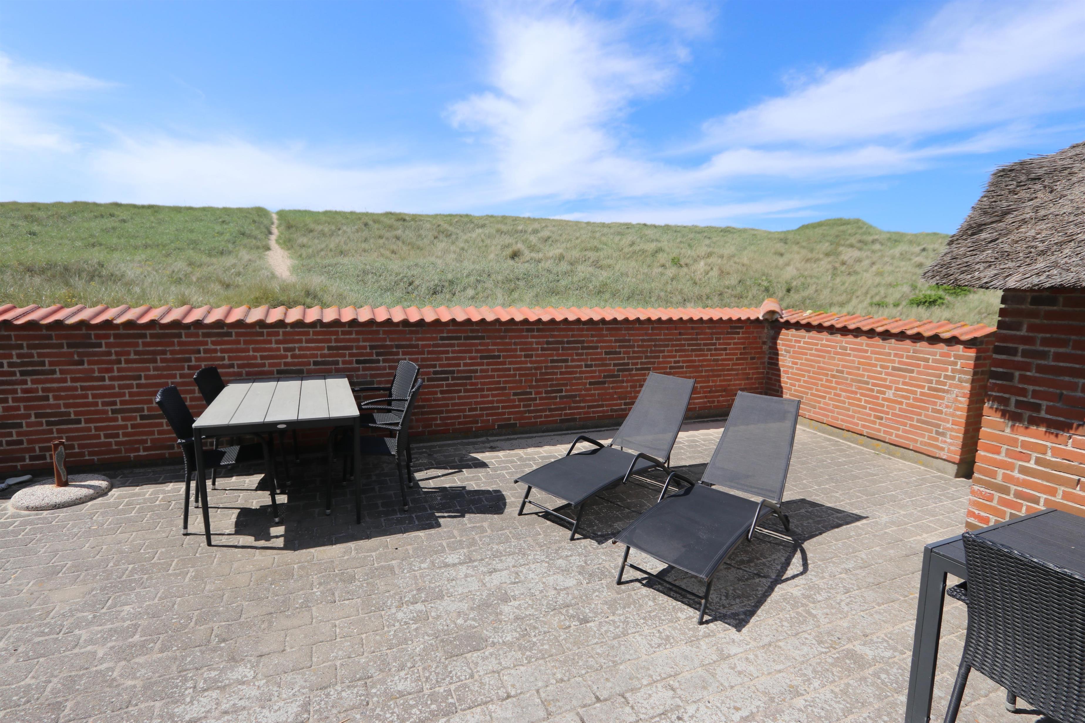 Vom Wohnzimmer aus haben Sie einen Zugang zu einer schönen großen, umzäunten Terrasse, die selbstverständlich mit Gartenmöbeln, Grill und Sonnenliegen ausgestattet ist. Die eingezäunte Terrasse ist ideal für Kinder und Haustiere. Hier können Sie die Sonne genießen oder vor dem Grill entspannen und abends den Sonnenuntergang über der Nordsee beobachten. Vom Haus und Grundstück haben Sie einen direkten Zugang zu den Dünen und dem wunderschönen weißen Sandstrand, der nur wenige Meter vom Haus entfernt ist. Genießen Sie einen fantastischen Spaziergang oder laufen Sie am Strand entlang. Erleben Sie hautnah, dass die Nordsee jeden Tag eine neue Geschichte erzählt. Besuchen Sie die vielen Attraktionen und Erlebnisse, die in maximal 30 Minuten zu erreichen sind, oder besuchen Sie das Fischerdorf Thyborøn oder die schöne Handelsstadt Lemvig mit vielen Fachgeschäften. Das geräumige Haus ist perfekt für bis zu 8 Personen, eignet sich aber auch für ein Paar oder die kleine Familie zu jeder Jahreszeit.