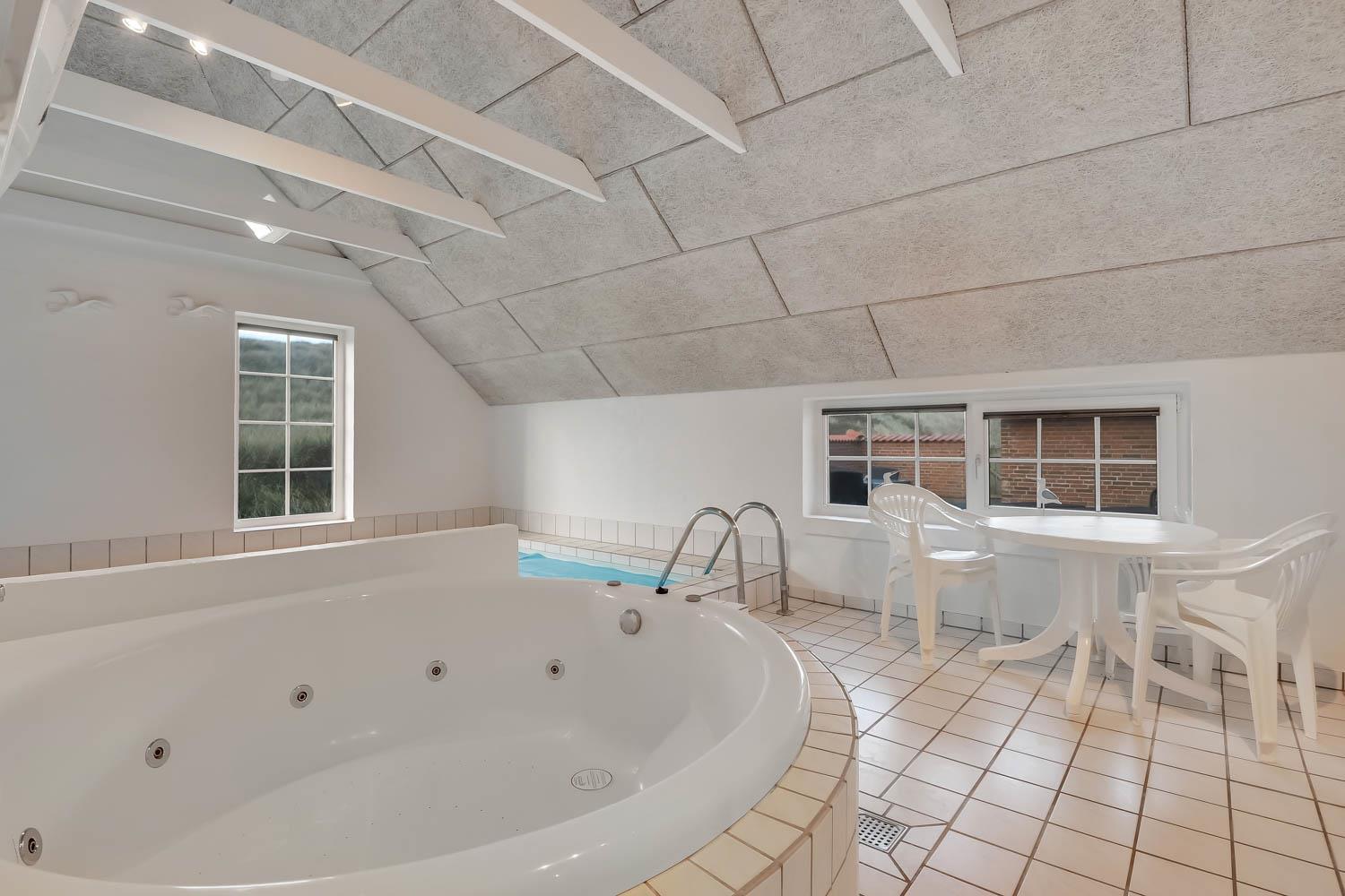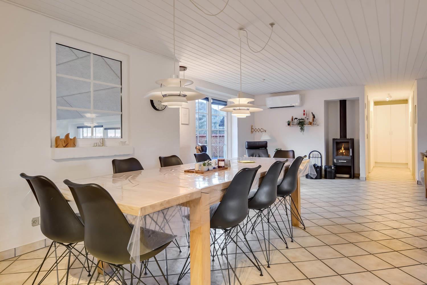 Von weitem können Sie die einzigartige Lage des Hauses sehen und mit Ihren Augen der Straße bis zur gepflasterten Haltestelle folgen. Das Haus ist über einen kleinen Flur mit Garderobe und einem extra Waschbecken zugänglich. 4 Schlafzimmer (1DB, 1DB, 1DB, 2B). Ein zusätzlicher Raum ist als Büro mit einem Schreibtisch, einer zusätzlichen Gefriertruhe und einem Liegeplatz eingerichtet. Das perfekte Zimmer, wenn im Urlaub Aufgaben am Computer erledigt werden müssen oder das perfekte Zimmer, um mitgebrachte Sachen, Koffer und Taschen aufzubewahren. Das Wohnzimmer ist in hellen und freundlichen Farben gehalten und mit Fliesenboden sehr praktisch. Außerdem gibt es schöne und bequeme Ledermöbel, Bluetooth Lautsprecher, Fernseher mit deutschen und dänischen Programmen. Es gibt einen Chromecast für das Fernsehen im Wohnraum. Wenn Sie also ein Mobiltelefon oder ein anderes Gerät dabeihaben, können Sie z. B. DR oder das streamen, was Sie gerade abonniert haben.Eine Wärmepumpe und ein Kaminofen sorgen für zusätzlichen Komfort und minimieren die Stromkosten. Gut ausgestattete Küchenecke mit z.B. allem an Kochgeschirr, Herd mit Cerankochfeld, Abzugshaube, Geschirrspüler, Mikrowelle und Kühlschrank mit Gefrierfach. Gleich neben der Küche befindet sich der Esstisch mit Sitzgelegenheiten für alle. Der Aktivitätsraum des Hauses - der große Poolraum - ist mit einem Swimmingpool mit Gegenstromanlage ausgestattet und es gibt auch einen schönen Whirlpool, hier gibt es auch ein Bluetooth Lautsprecher. Das Haus verfügt über 2 Badezimmer mit Dusche und WC. Eines bietet einen direkten Zugang zur Sauna des Hauses sowie zur Waschmaschine und zum Trockner. Ein wirklich schönes Haus, das sowohl draußen als auch drinnen viele gute Aktivitäten ermöglicht. Es gibt nichts schöneres als ein entspanntes Bad zu nehmen und nachher vor den knisternden Ofen zu sitzen und im Hintergrund die rauschende Nordsee zu hören. Kinderbett und Hochstuhl für die Kleinsten. Das Haus ist ein Nichtraucher-Haus. Maximal 1 Haustier ist erlaubt. Kaution Wintersaison EUR 600 und Sommersaison EUR 300.