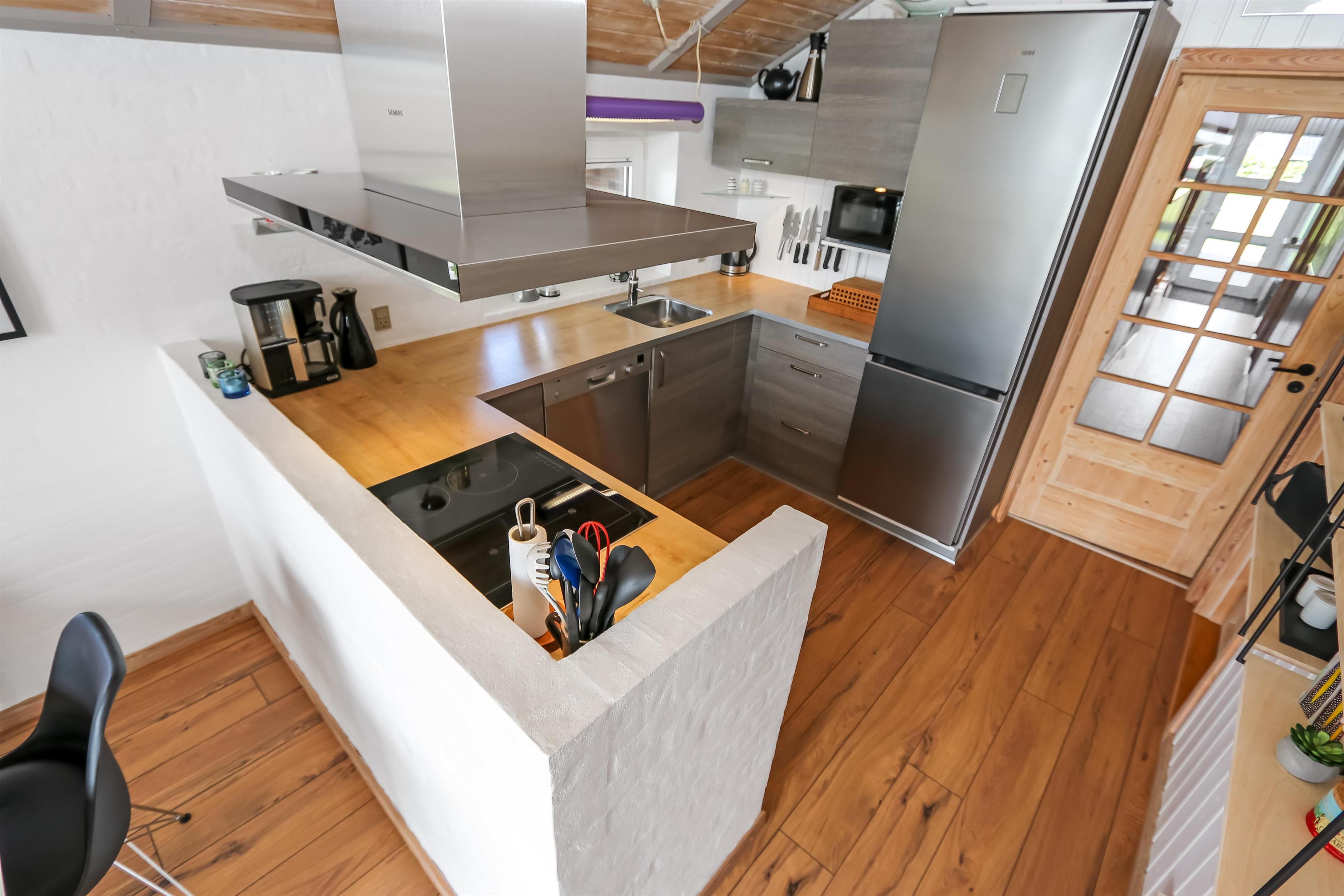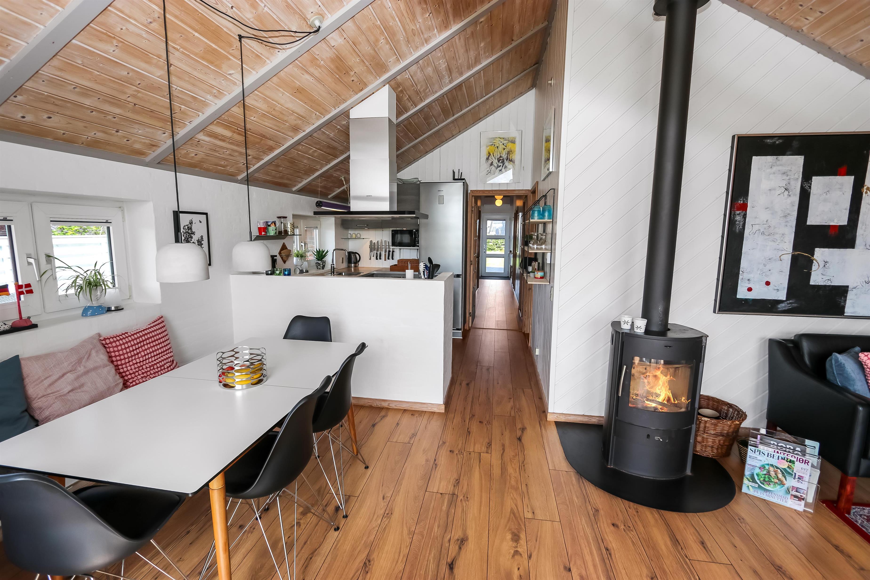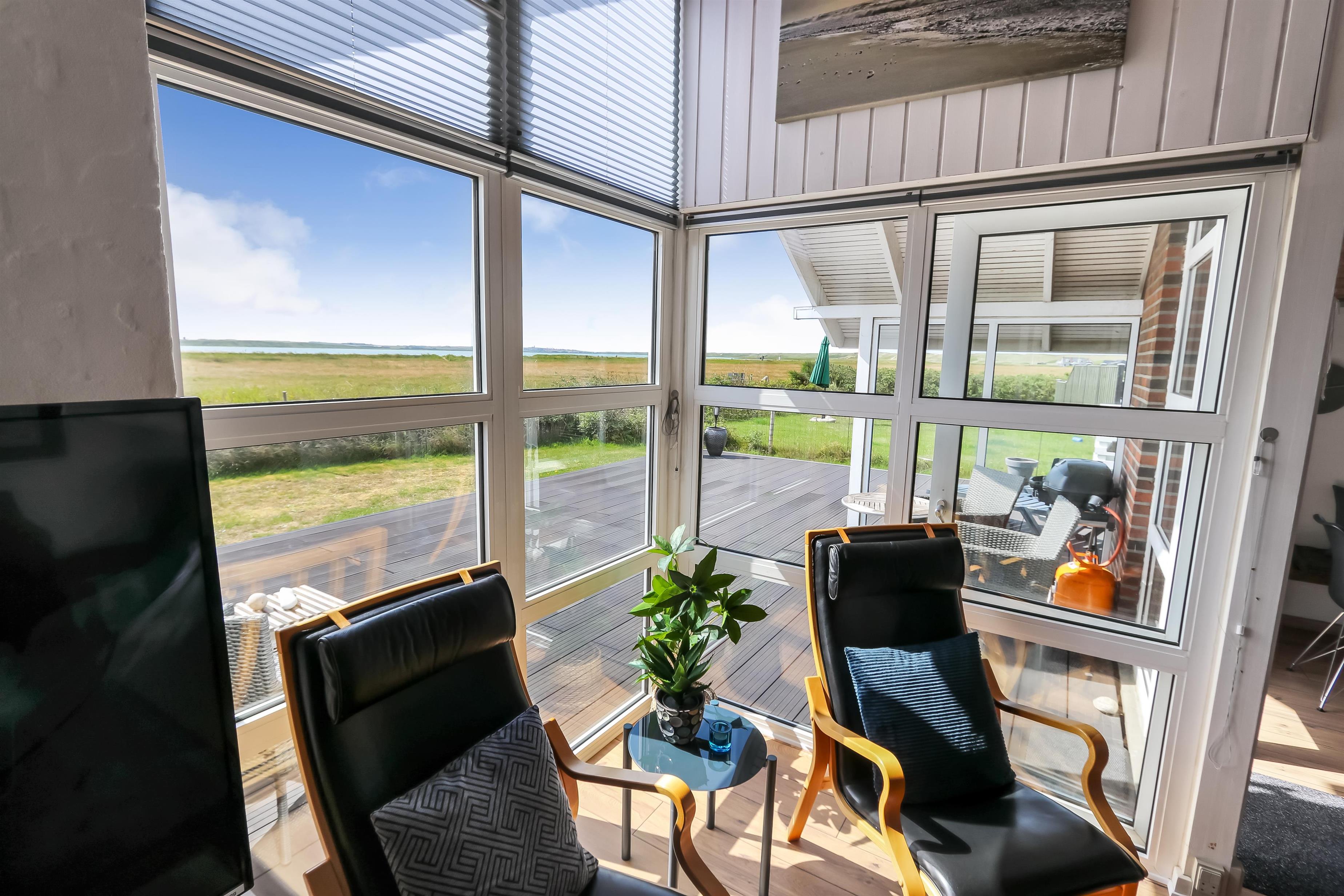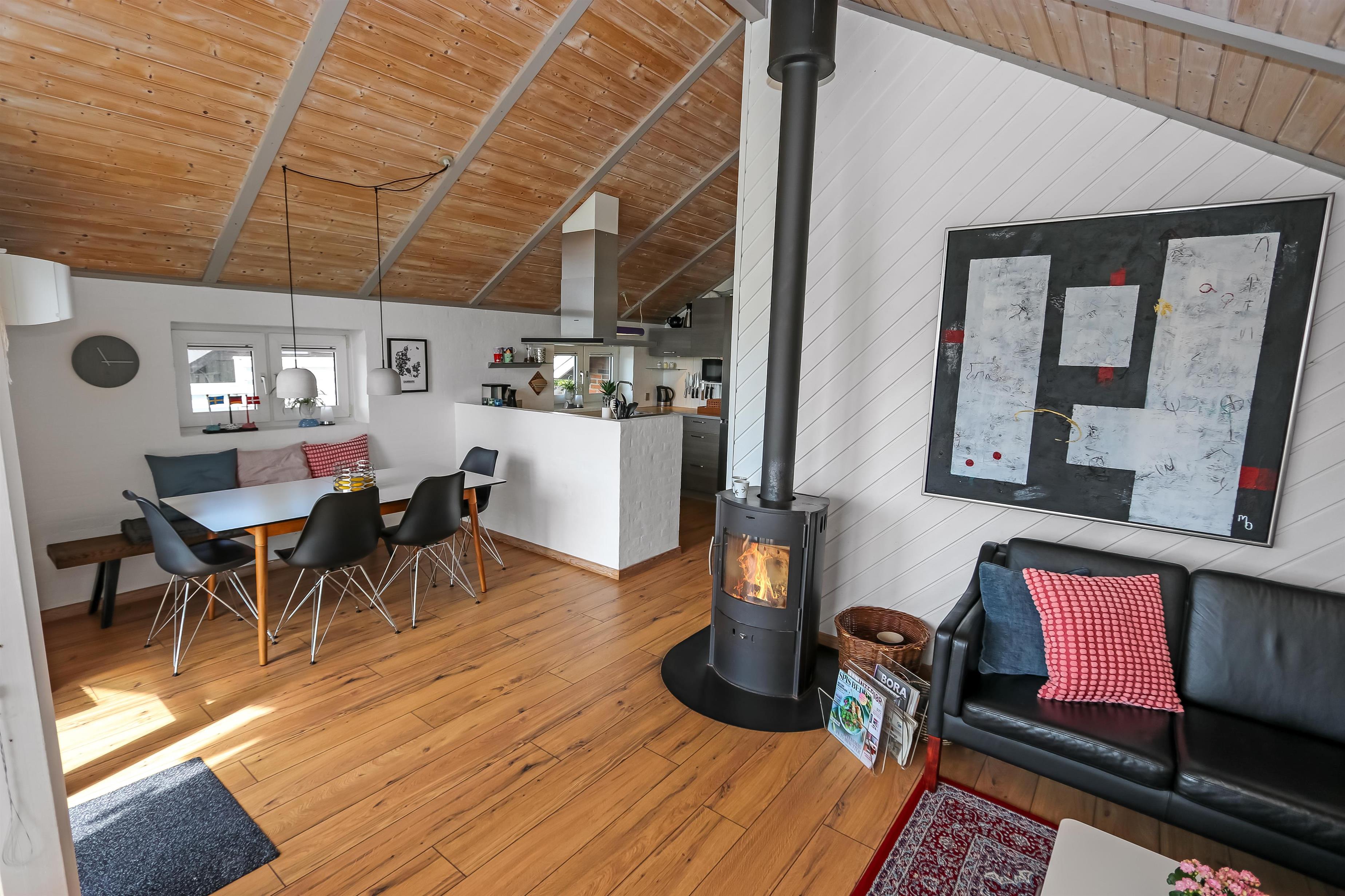 Dieses gut gelegene Ferienhaus hat 4 Schlafräume: 1DB + 1DB + 2B + 2B. Heller und offener Aufenthaltsraum, der bis zur Decke geöffnet ist. Er ist gemütlich eingerichtet mit Ledermöbeln, Essplatz, großem Smart-TV mit deutschen und dänischen Programmen und ein Chromecast für Streaming, wenn Sie selber dafür ein Gerät und ein Abonnement haben. Das Haus ist 110 qm groß und im Jahr 1994 erbaut. Schöner, gemütlicher Kaminofen und eine ökonomische Wärmepumpe sorgen für eine gemütliche Wärme im Haus, egal zu welcher Jahreszeit. Außerdem gibt es auf dem Dach Solarzellen und eine Batterie die bis 5 kw aufladen kann. Das Haus besitzt deshalb grüne Energie und der Verbrauch von Strom ist deswegen weiniger als bei anderen Häusern. Die schöne Küche ist gut ausgestattet es gibt z.B. Kaffeemaschine, Mikrowelle, Heißluft-Ofen, und Induktions-Herdplatte, Abzugshaube, Geschirrspüler und Kühlschrank mit Gefrierfach. Es gibt 2 schöne Badezimmer im Haus. Beide mit Toilette, Dusche, Waschbecken, Fliesenboden und eine mit Fußbodenheizung. Von der Terrasse und dem Wohnraum haben Sie eine tollen Panoramablick zum Ferring See und den Blick zu den hohen Dünen an der Nordsee. Nichtraucher-Haus. Max. 1 Haustier ist erlaubt.