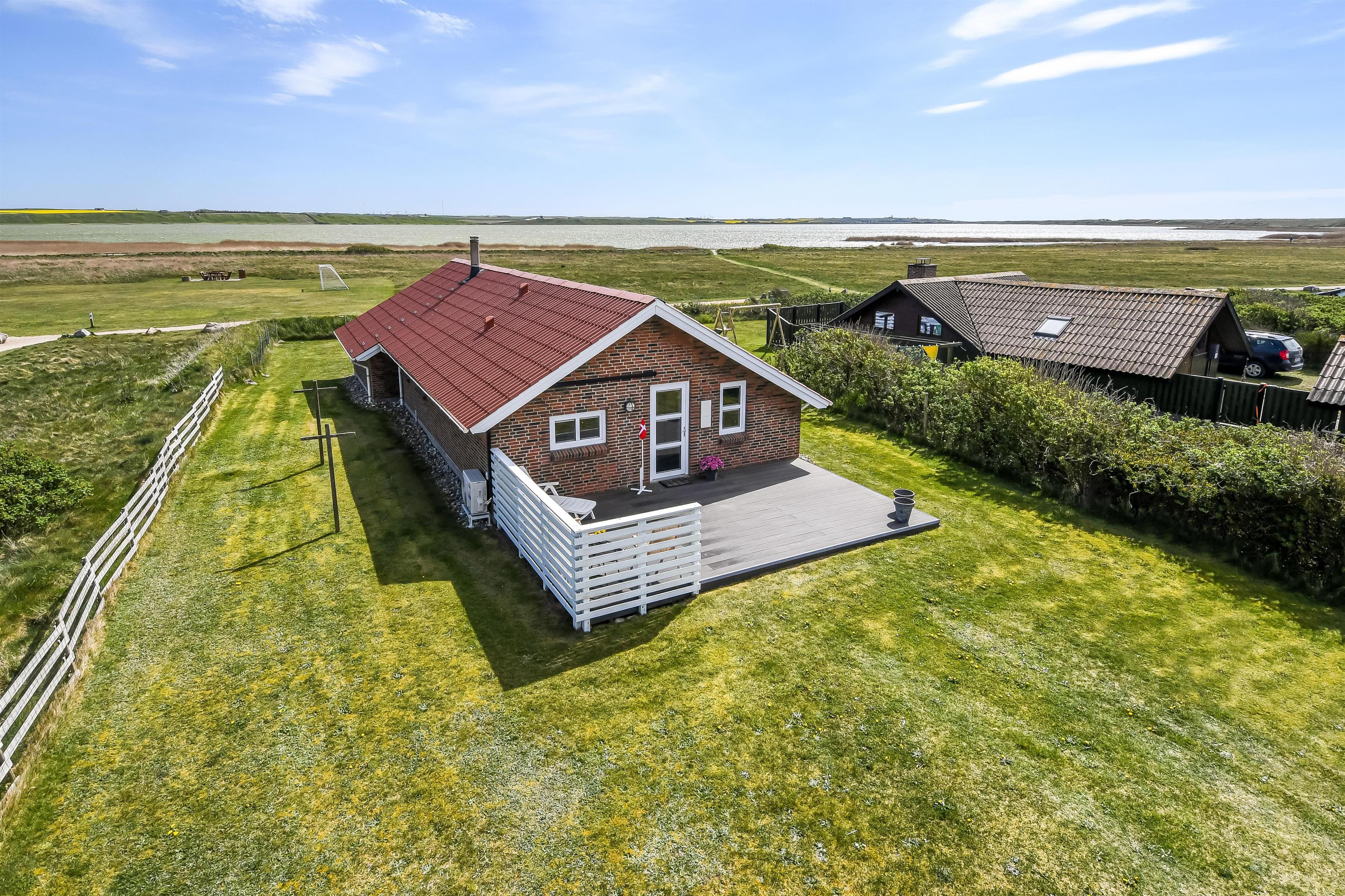 Das Haus liegt auf einem von den absolut besten Grundstücken im Gebiet – direkt zur Erhaltungslinie. Schöne, teilweise überdachte Terrassenanlage in Richtung Süd mit Gartenmöbeln, Grill und Sonnenliegen. Von hier aus können Sie ungestört der schönen Blick über den Ferring See und das Gebiet genießen. Das Grundstück ist eingezäunt, sehr ideal wenn Sie Kinder oder Hunde mitbringen. Der Abstand zum Ferring See ist 70 m und die Nordsee Wasserkante liegt bloß 300 m vom Haus entfernt. Vejlby Klit Torv ist auch bloß 300 m entfernt vom Haus, wo es in der Saison einen geöffneten Kaufladen und das Cafe John Wayne gibt. Vejlby Klit ist auf beiden Seiten von Wasser umgeben, mit die Nordsee in Richtung West, die immer einen Besuch wert ist. Hier kann man Baden, Sandburgen bauen, Angeln, Drachen steigen lassen oder eine lange Wanderung unternehmen, oder nur die Einsamkeit genießen und dem Rauschen des Meeres zu lauschen. Das gleiche gilt auch für die dichte Lage zum Ferring See, wo es eine Wanderroute um den See gibt. Möchten Sie einen Ausflug machen, können Sie frei den lokalen VLTJ Zug der von Vemb nach Thyborøn fährt benutzen, es gibt Ihnen die Möglichkeit den Hafenort Thyborøn und die Handelsstadt Lemvig ohne Auto zu besuchen. Innerhalb von 25-30 Minuten Zugfahrt können Sie mehrere Aktivitäten, Einkaufsmöglichkeiten und Restaurants erreichen. Egal ob Sie einen aktiven oder entspannten Urlaub möchten, dieses Haus bietet den perfekten Rahmen für ein guten Urlaub mit seiner Ausstattung, Lage und Umgebung.